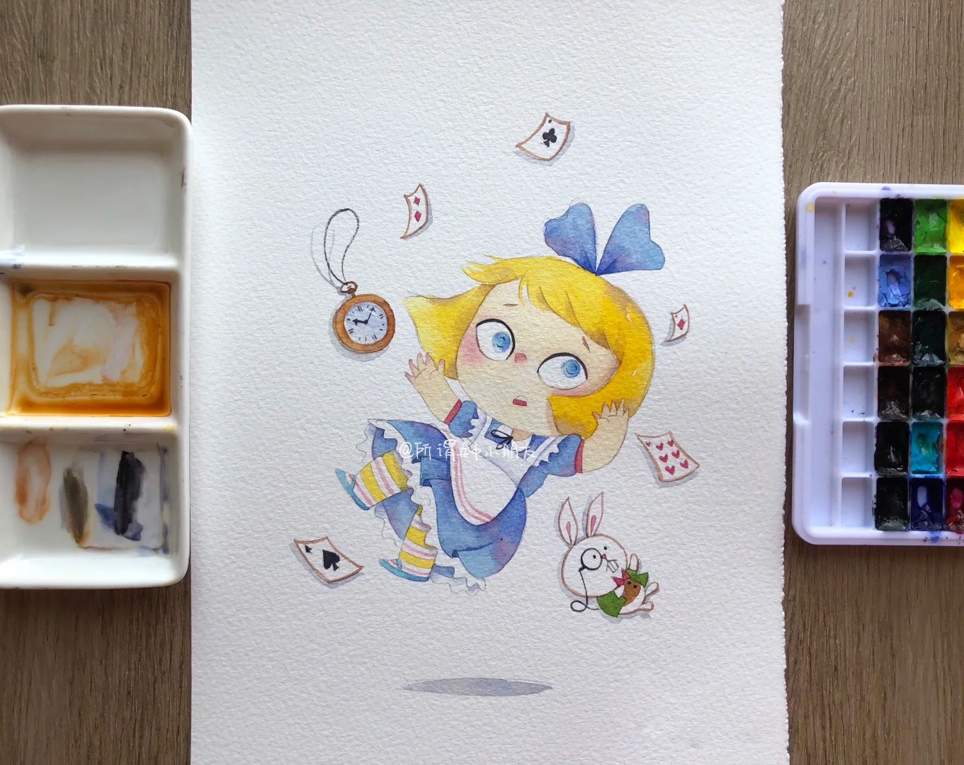 爱丽丝梦游仙境 | 手绘水彩教程 | 插画