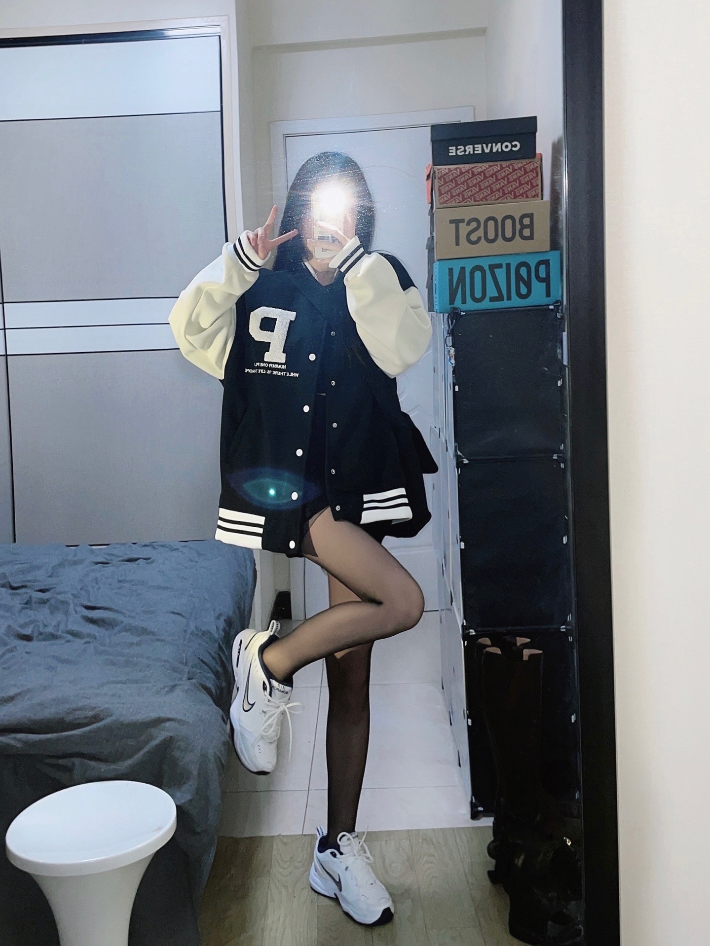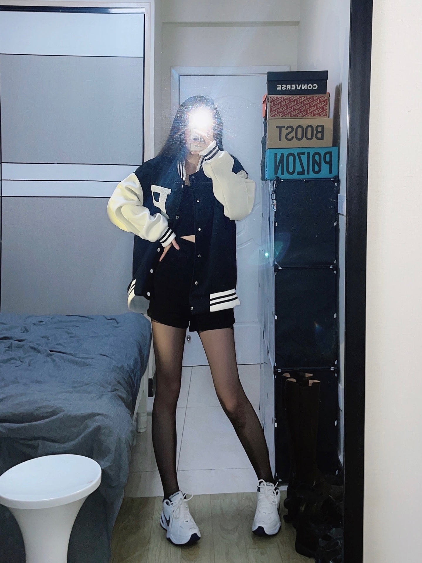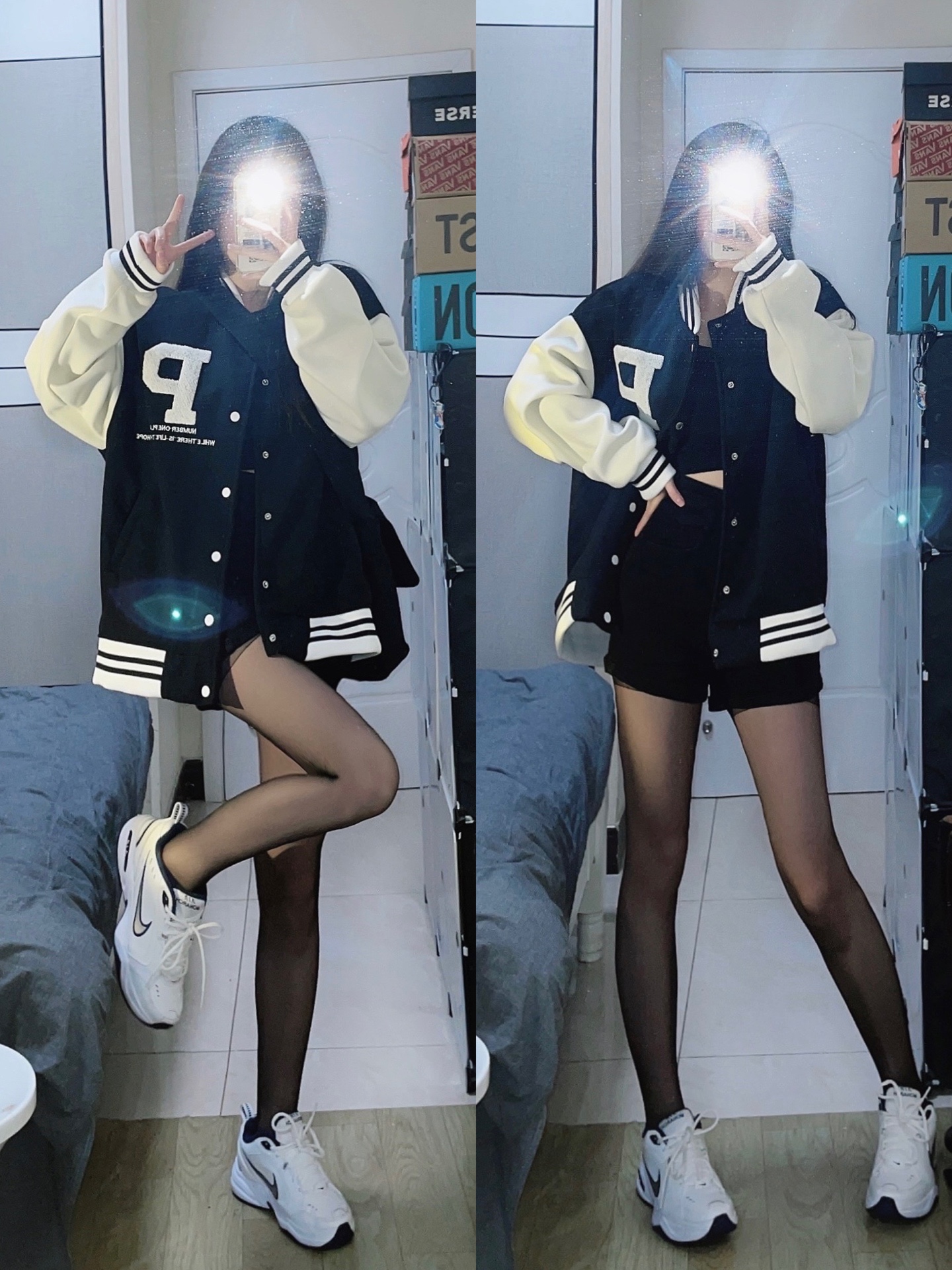 ▪️棒球服+短裤/短裙+黑丝 这么穿不就是辣妹本辣~男友看了都移不开眼😎