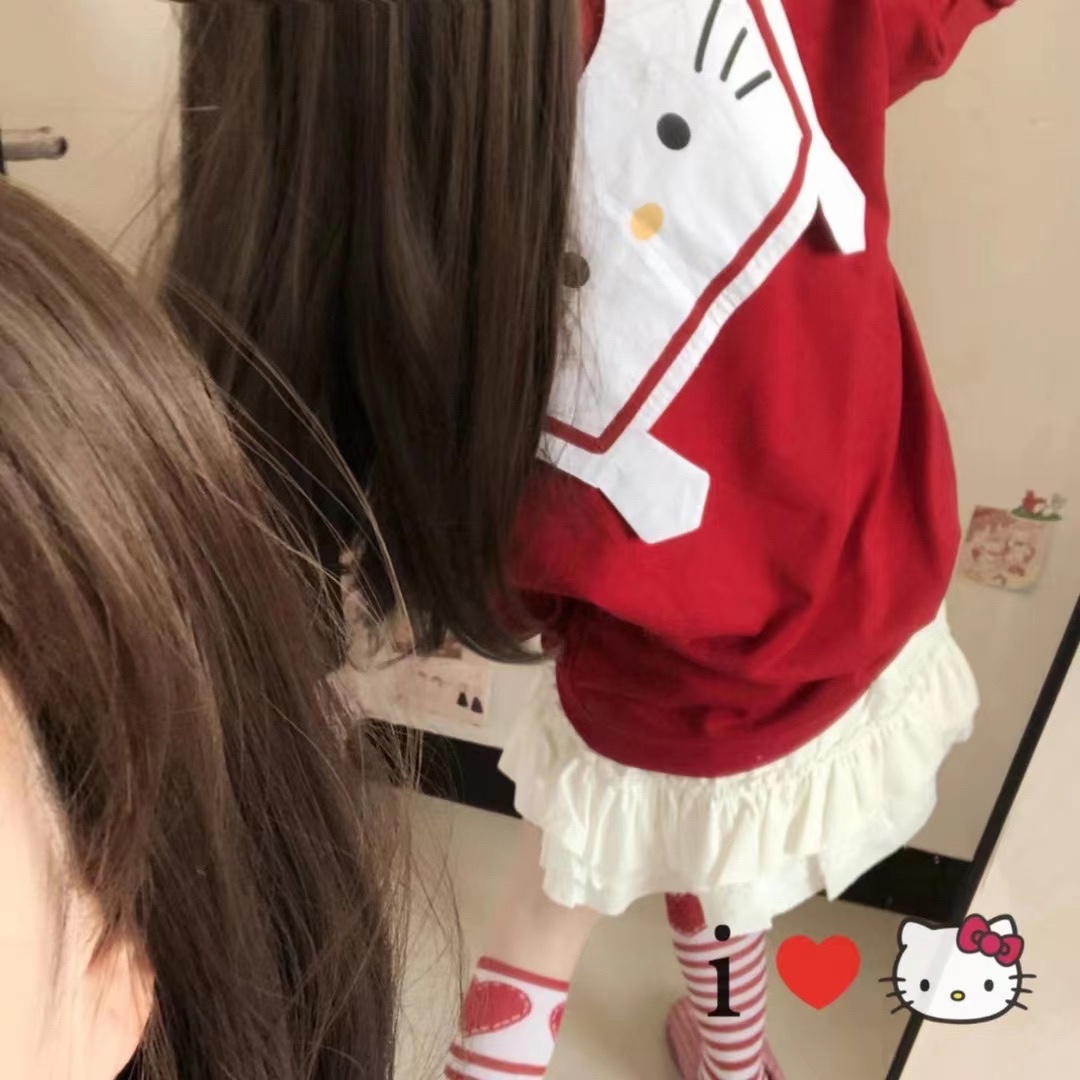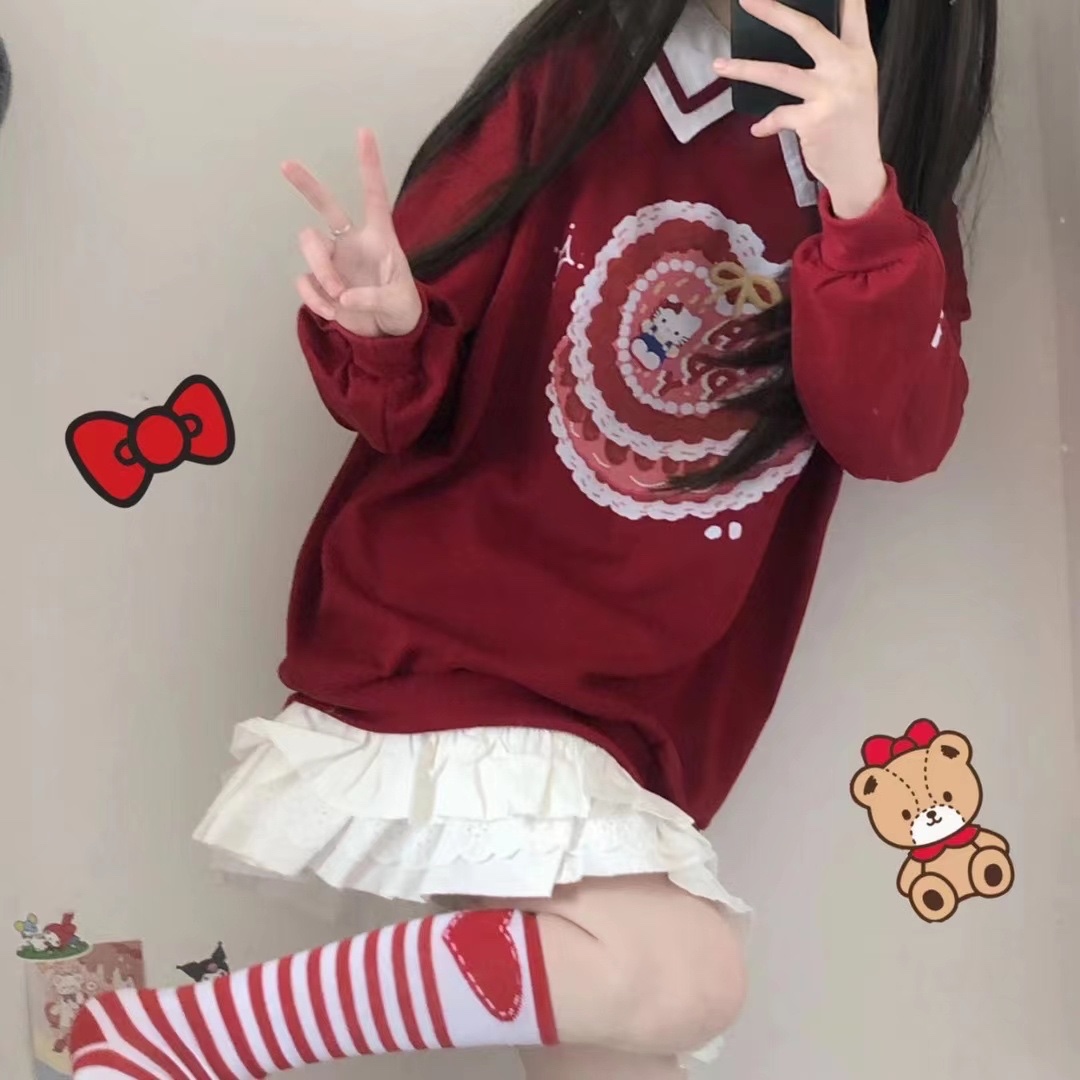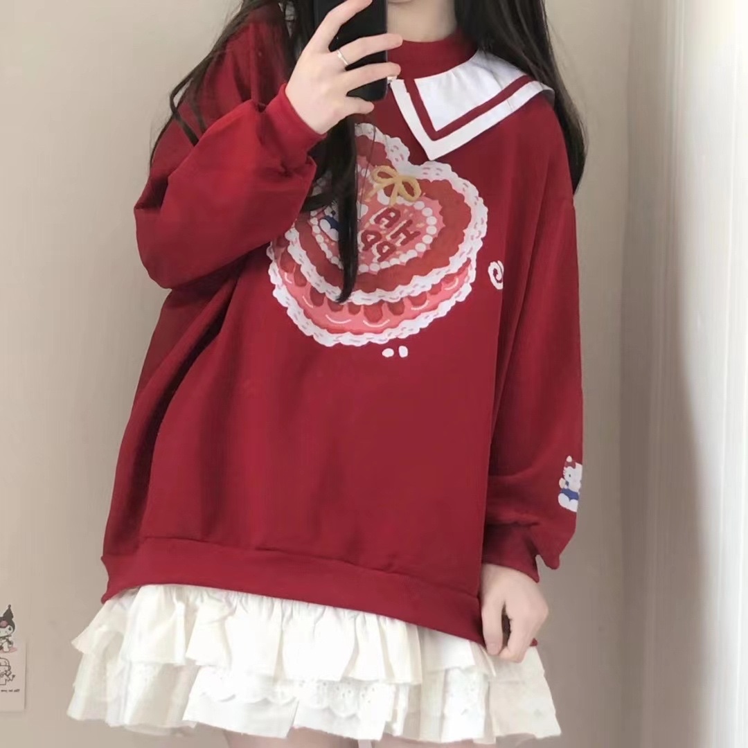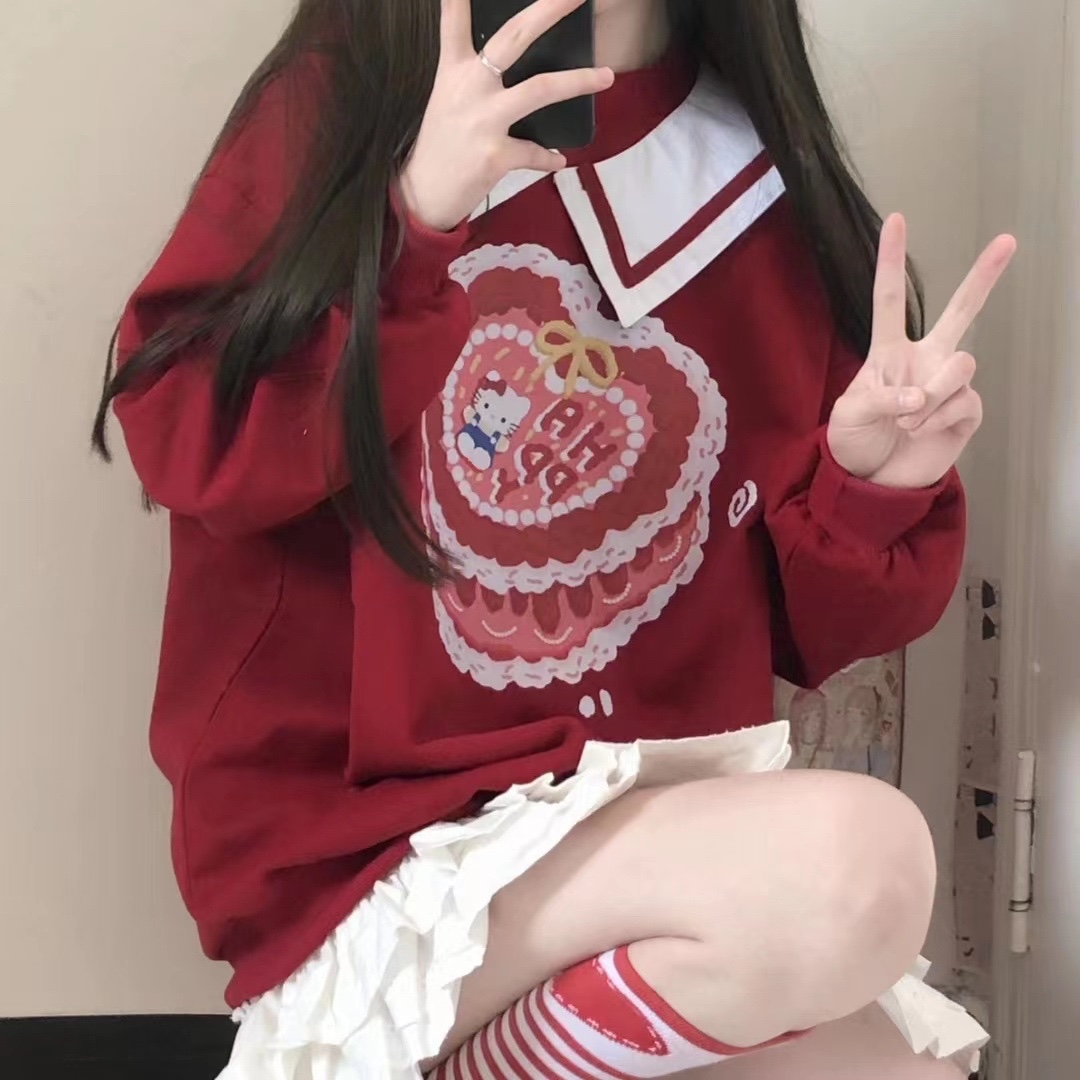 带假领的酒红色显白卫衣 超级可爱
