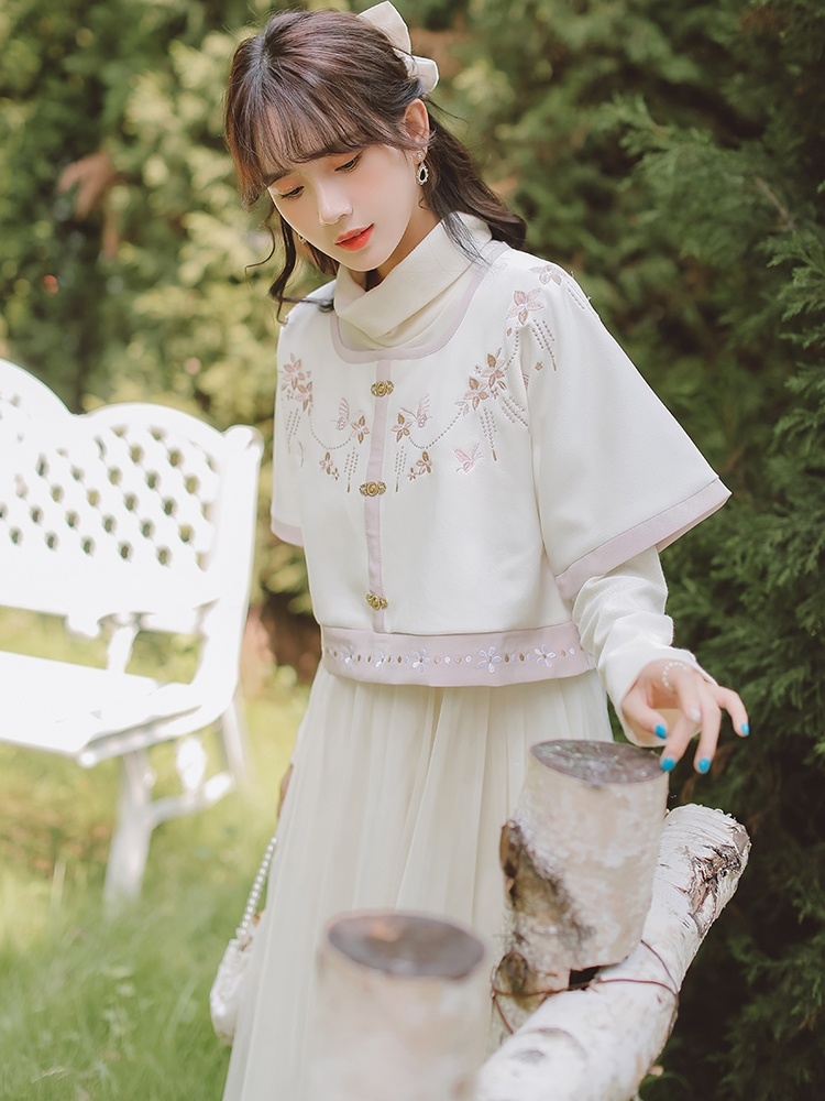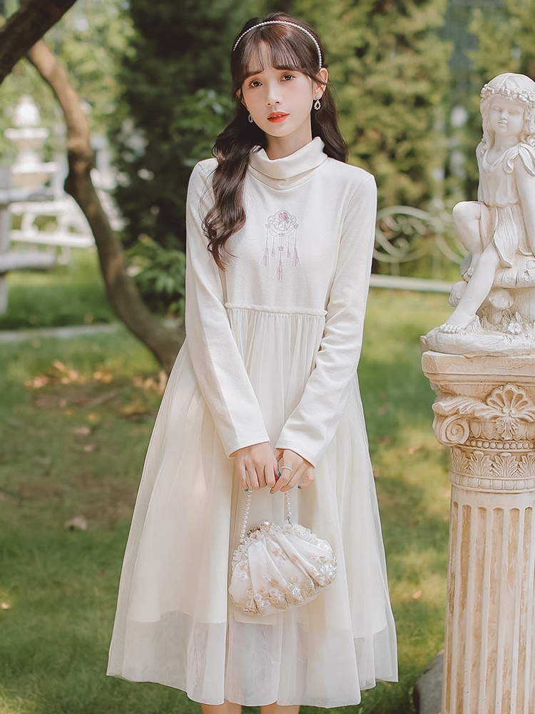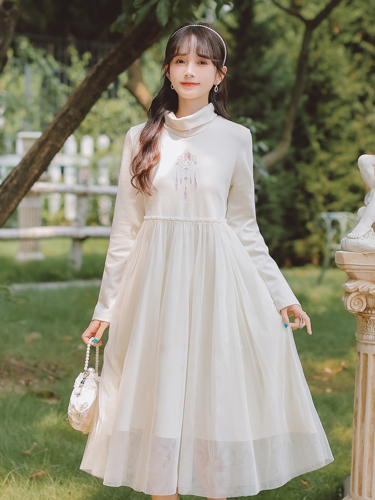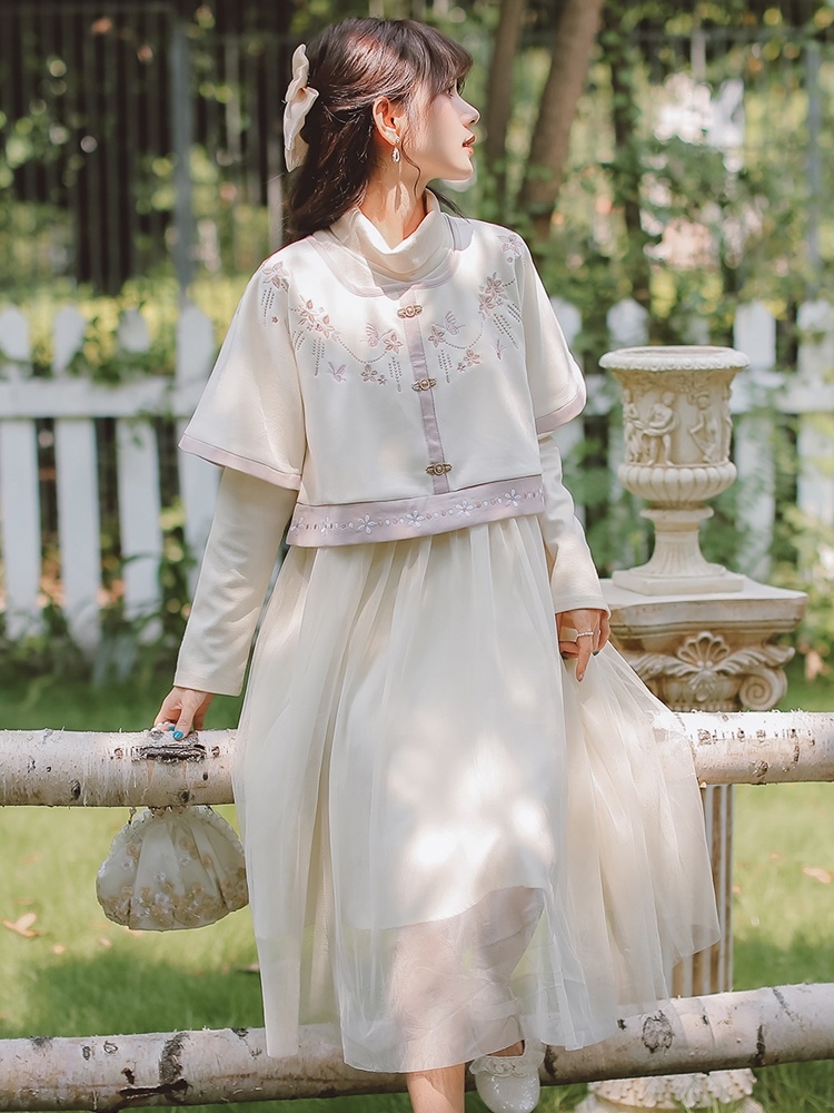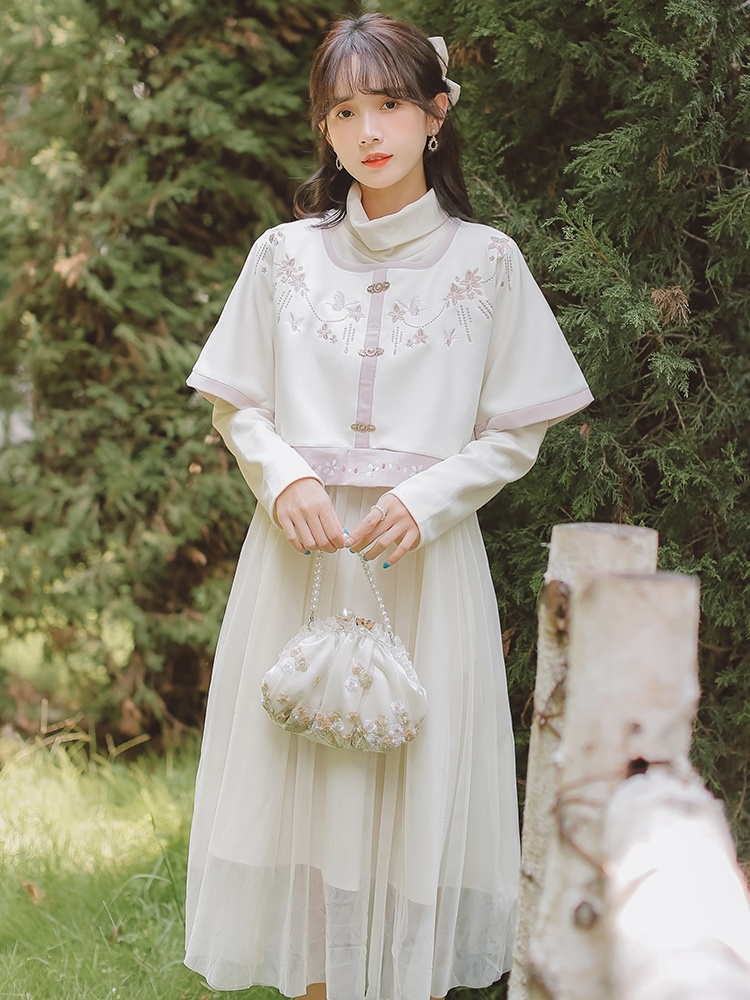 中国风汉元素方领上衣温柔风少女打底连衣裙秋冬淑女套装