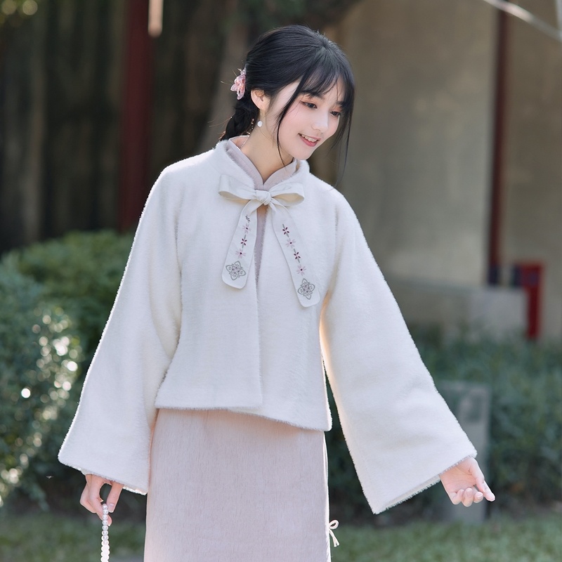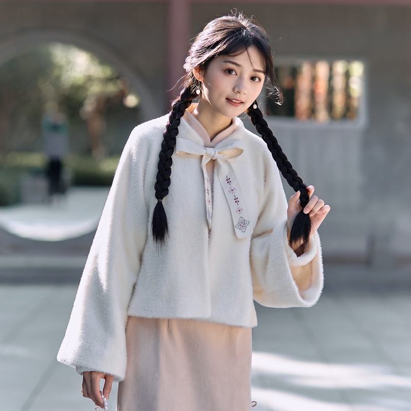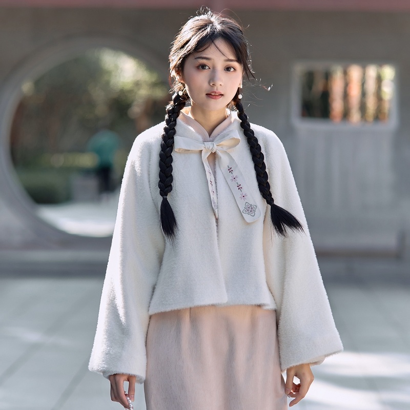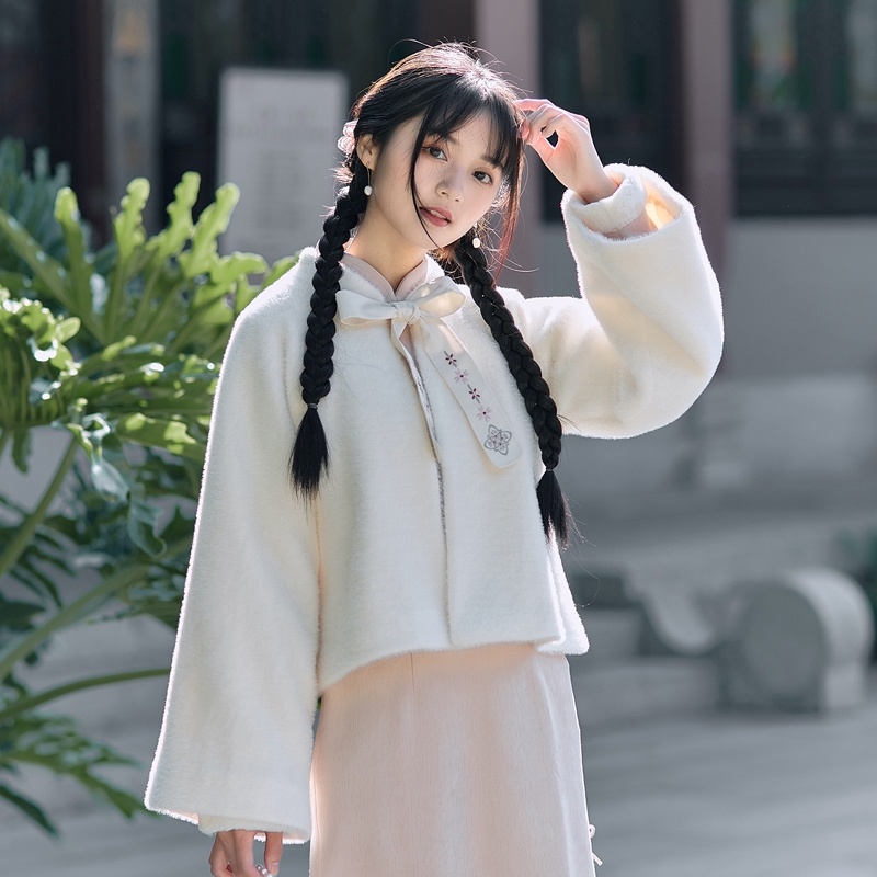 秋冬文艺复古短款国风毛呢毛绒外套小斗篷型呢子大衣