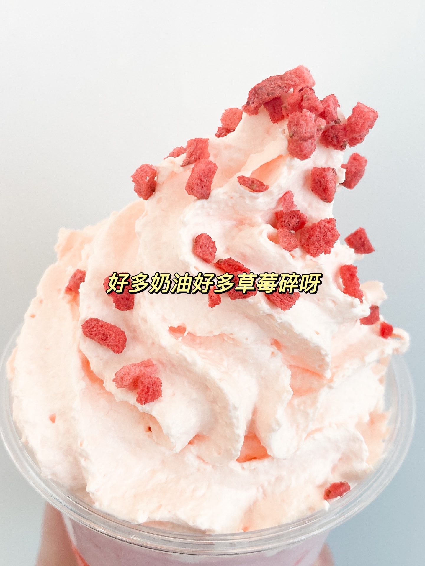 ✔️奶油草莓🍓夏乐多:草莓冻干碎碎+草莓风味雪顶奶油+草莓冰沙+牛奶麻薯+冰淇淋奶砖,颜值真是美,入口特别清爽,草莓和奶油融合的非常完美!