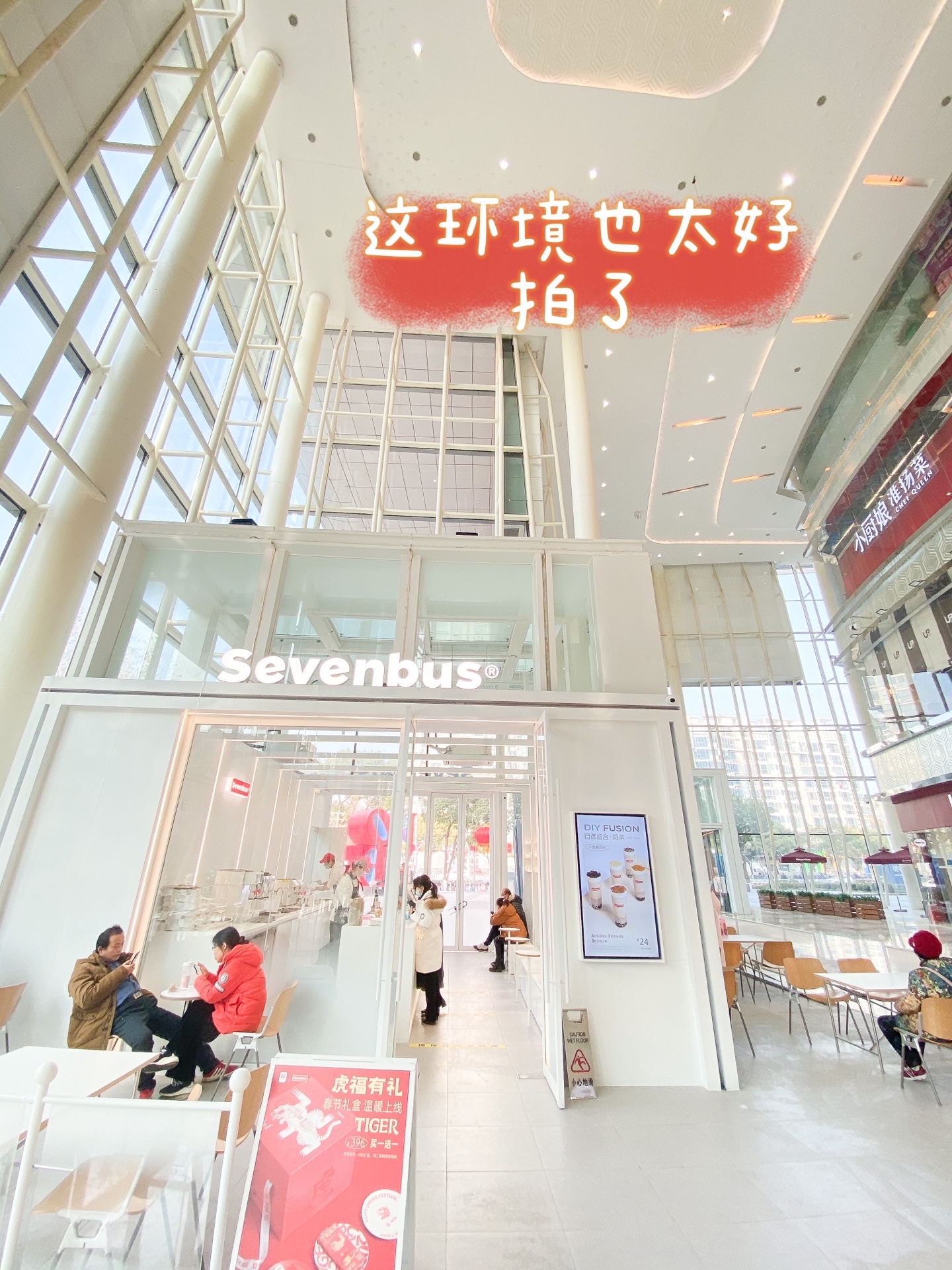 哎呀呀,没想到我爱的Sevenbus在环宇城也🈶️店啦!一进门就看到了,挑高🉐️设计大气又吸睛,绝对是南京出片必去的奶茶店!