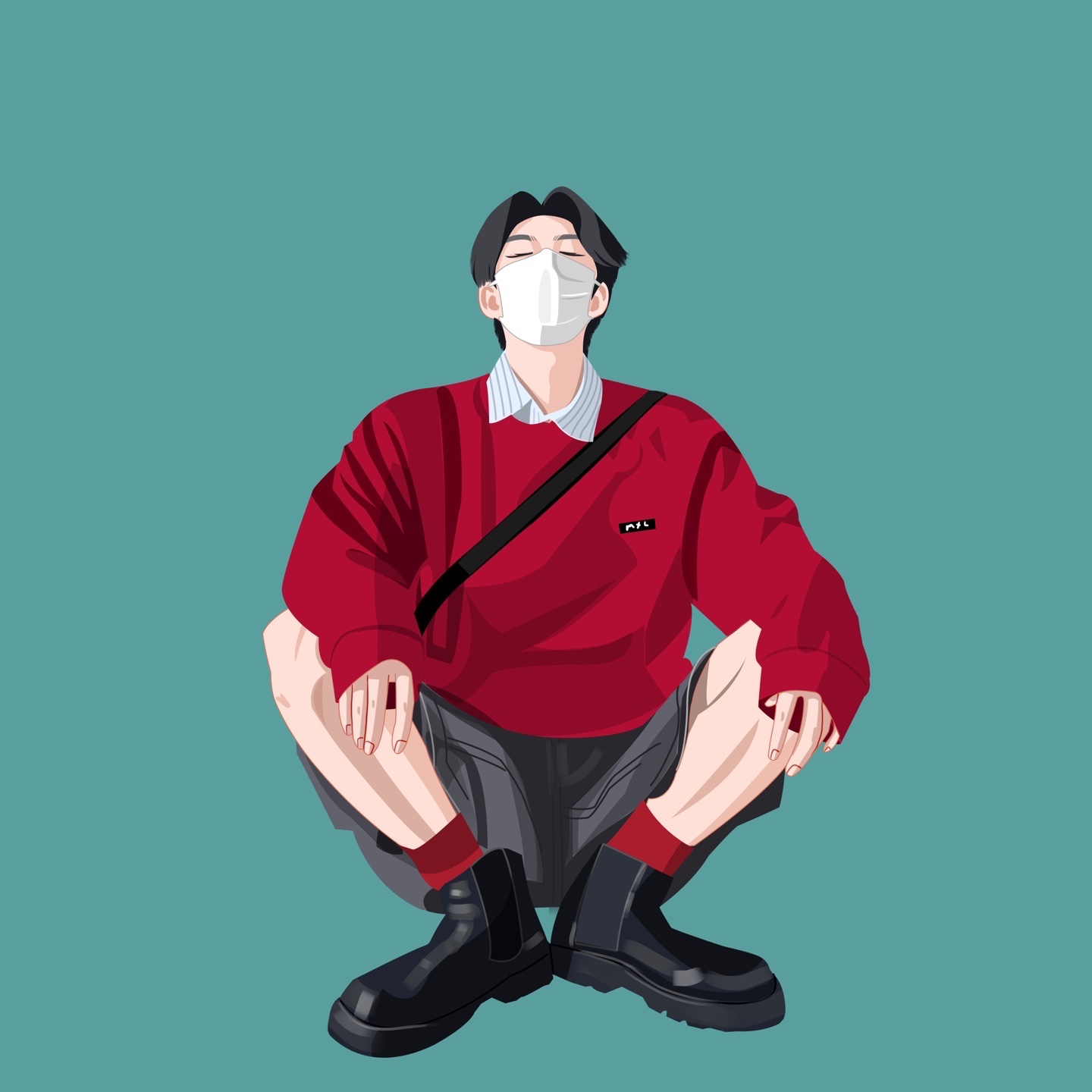 男生插画头像|扁平风穿搭插画
