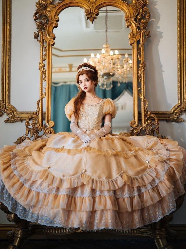 与日常洛丽塔或者是经典的洛丽塔洋装不同,洛丽塔礼服裙中加入了宫廷裙的元素。从款式方面来看,这类裙子大多拥有宽大且厚重的裙摆,不仅设计繁琐,而且穿着也十分复杂。
