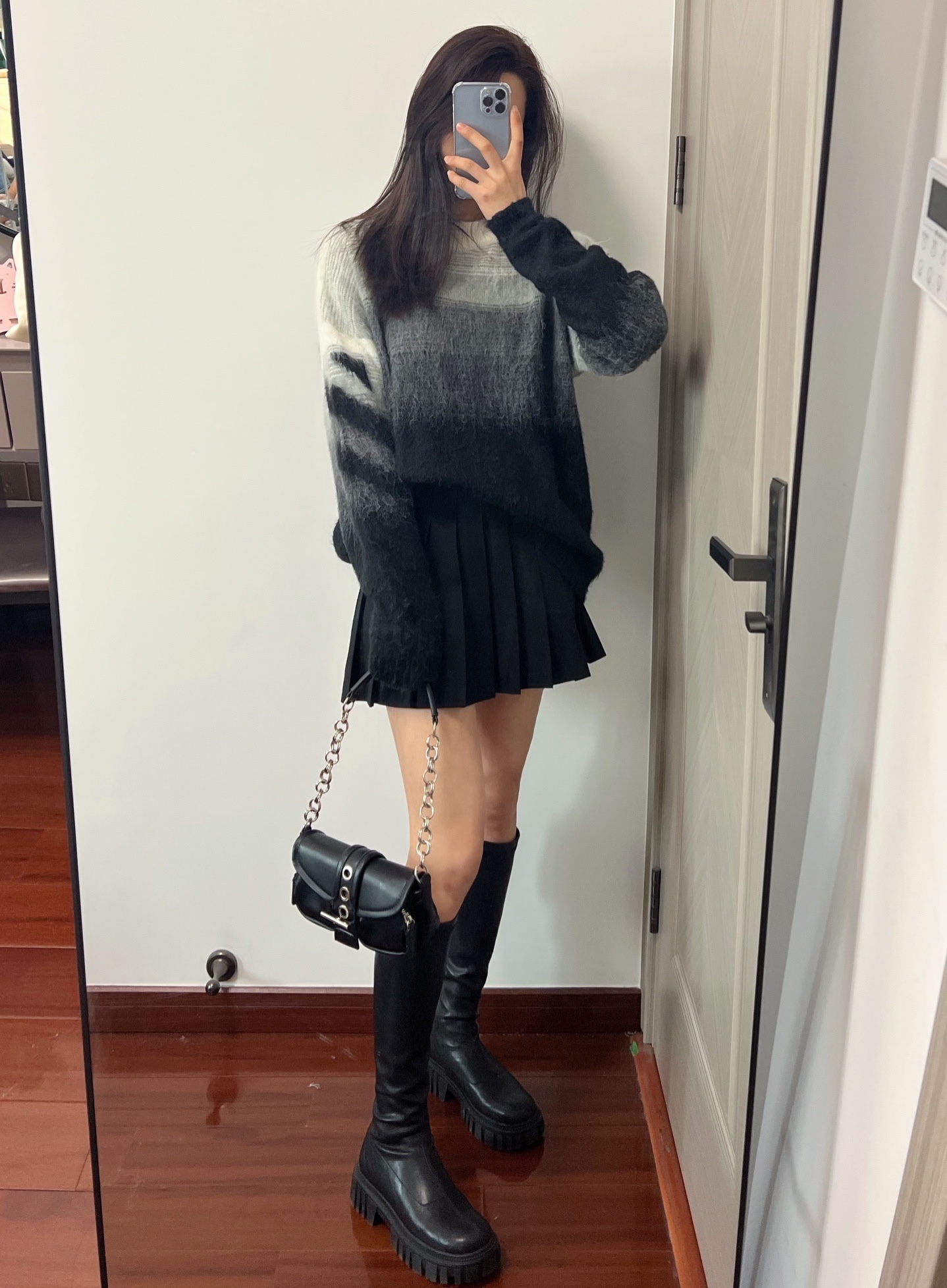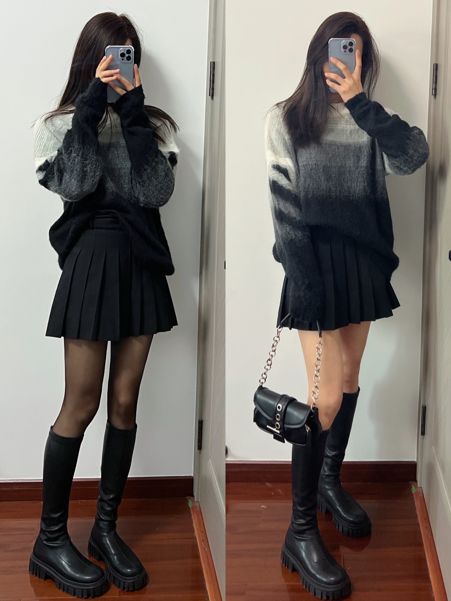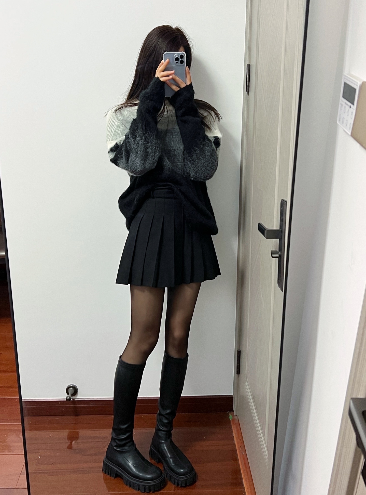 ow毛衣➕百褶裙➕黑丝➕长靴