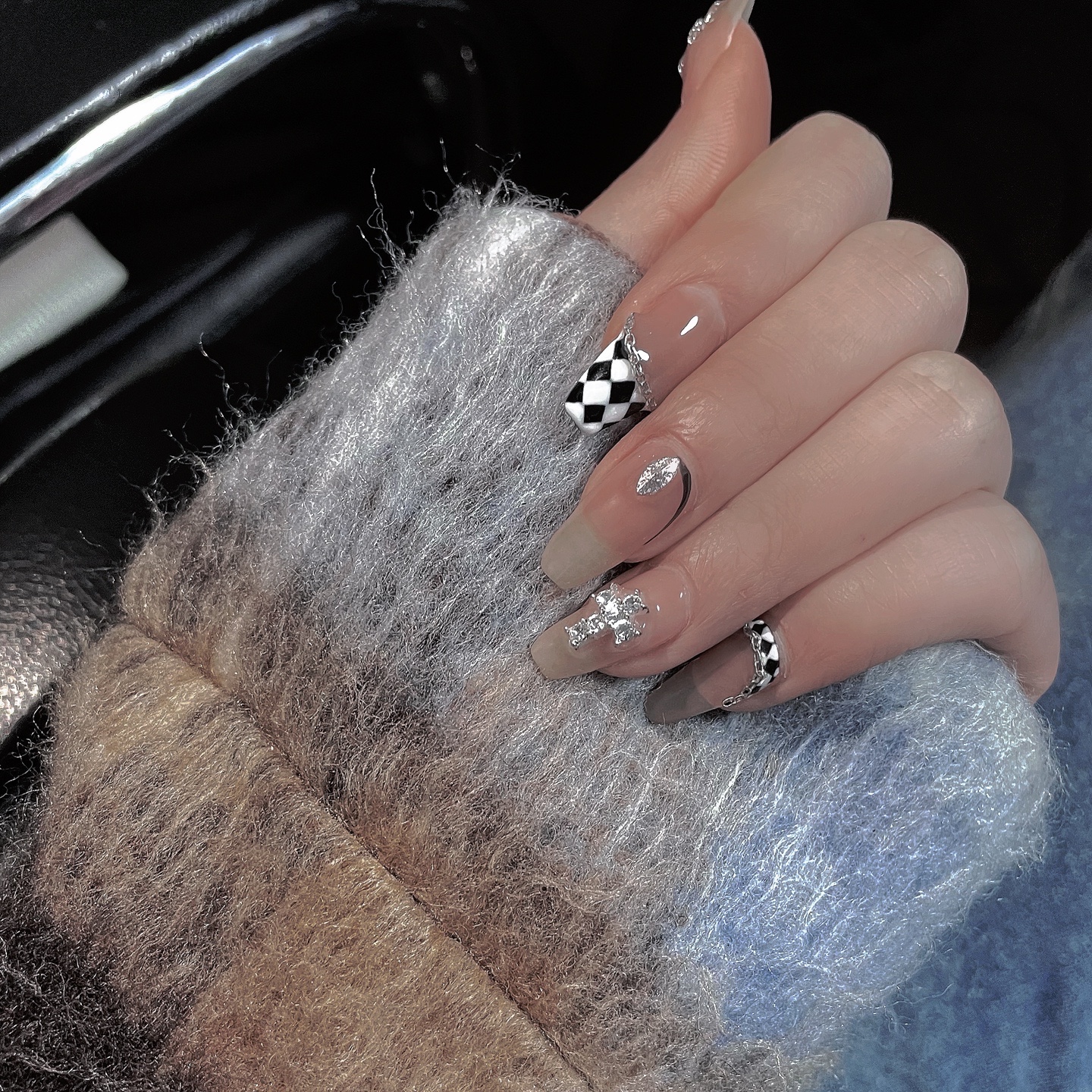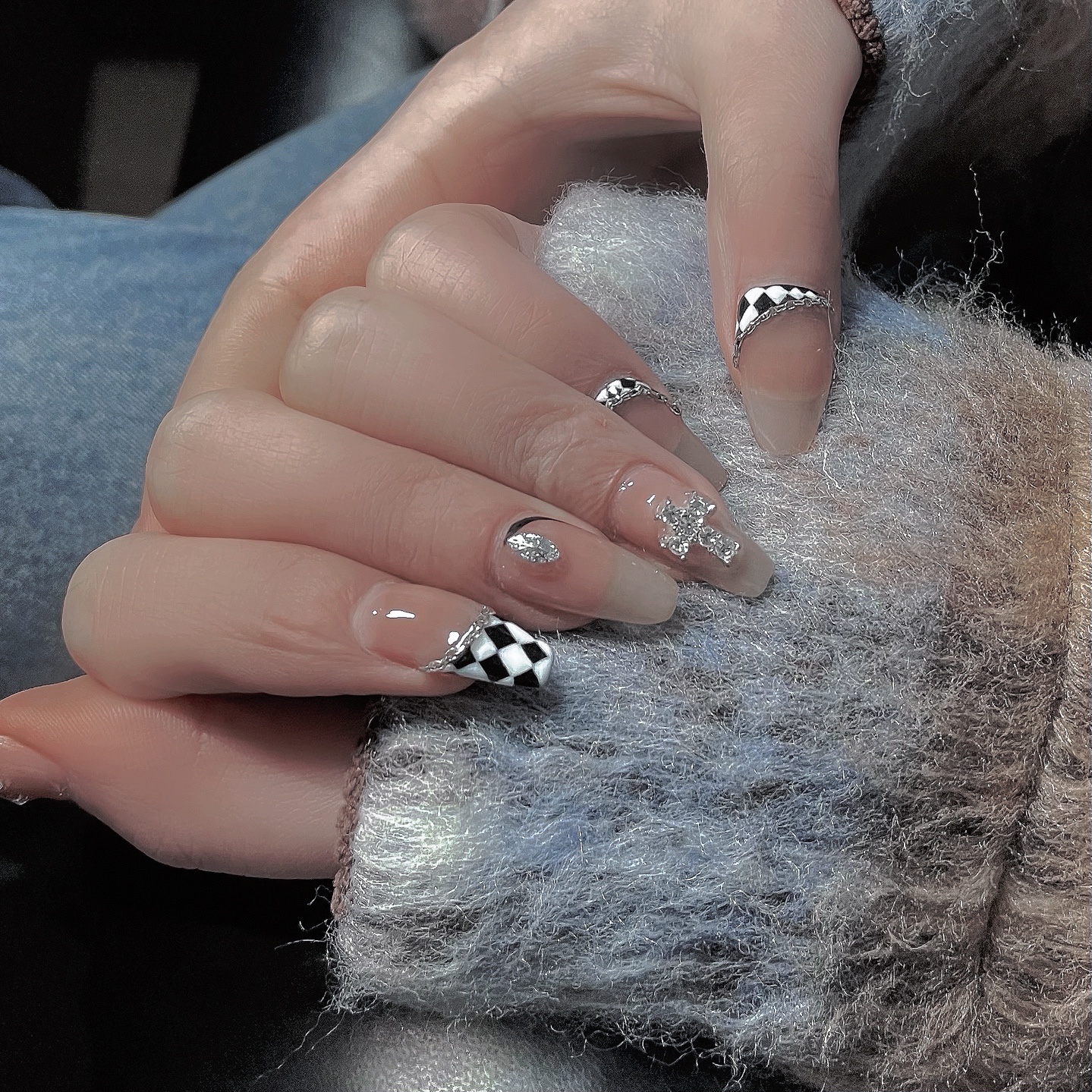 看不腻的棋盘格+闪钻的十字架和克罗心 超级无敌好看