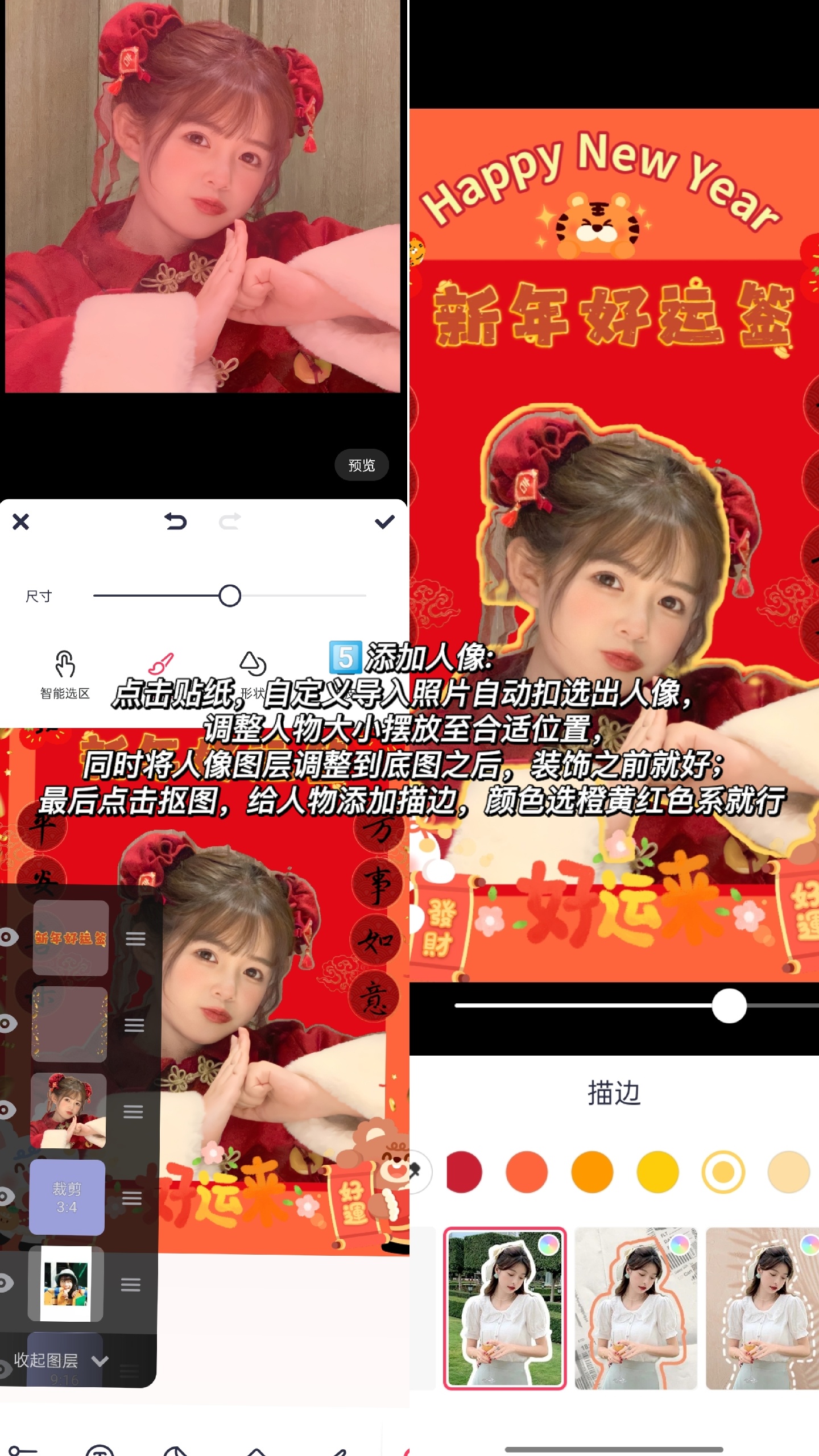 最后点击抠图,给人物添加描边,颜色选橙黄红色系就大功告成啦~