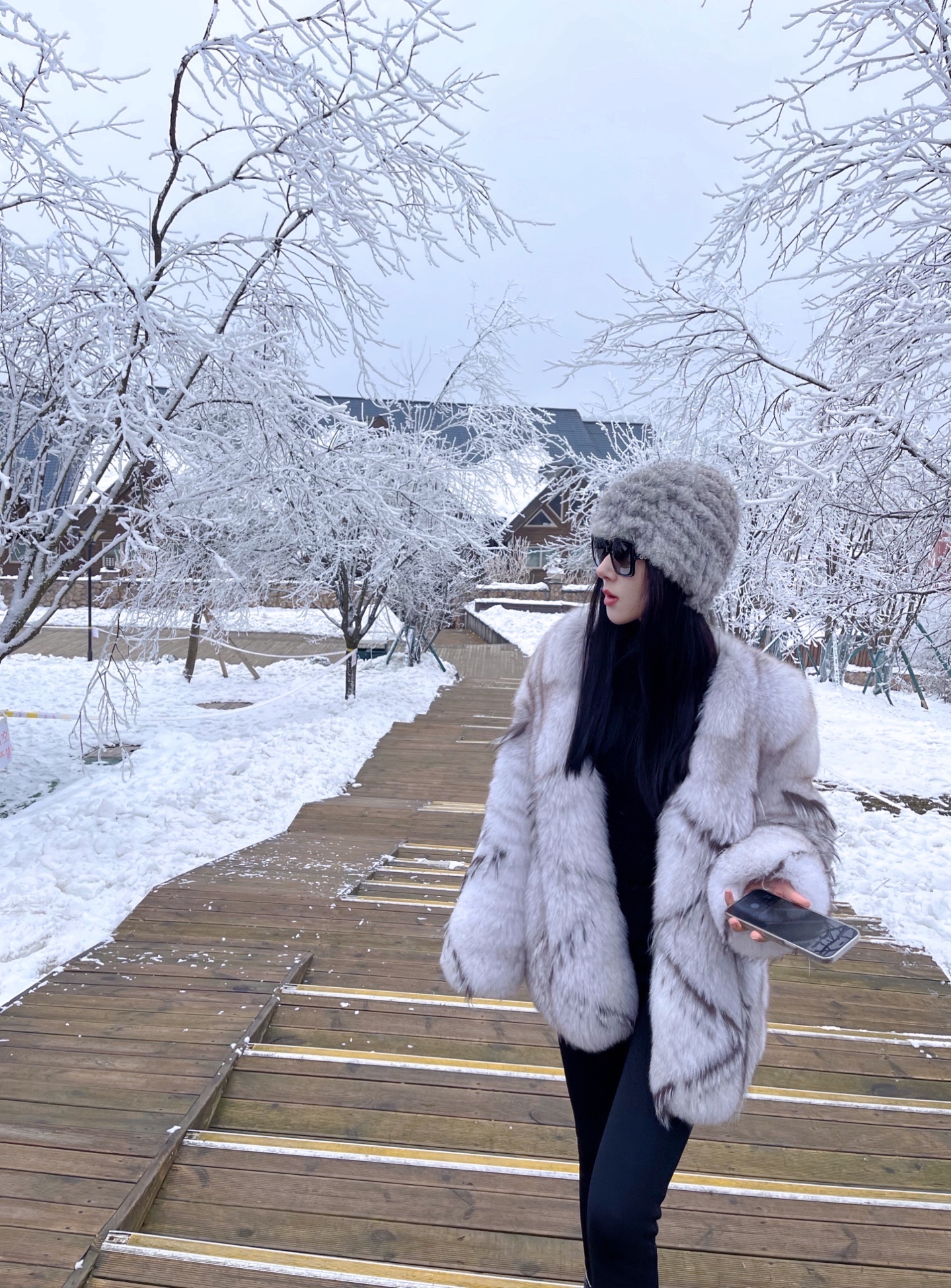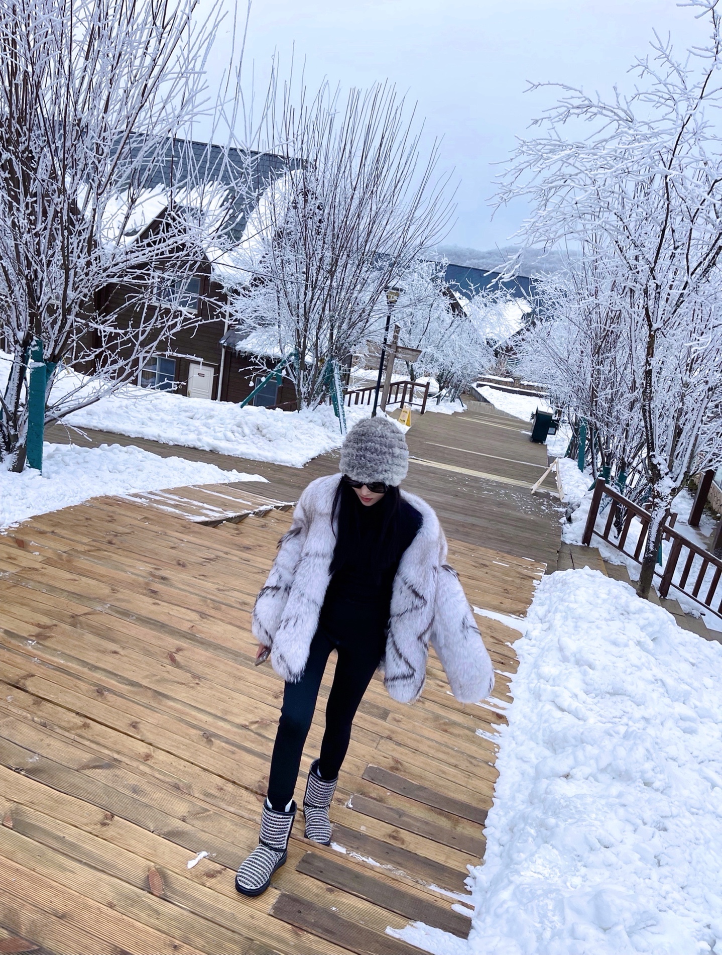 想在雪地拍美美的照片,可以搭配这样一套浅色系的衣服,显得干净且有氛围感,郁郁葱葱的小树林都挂满了雪,超级出片。@MT情报局