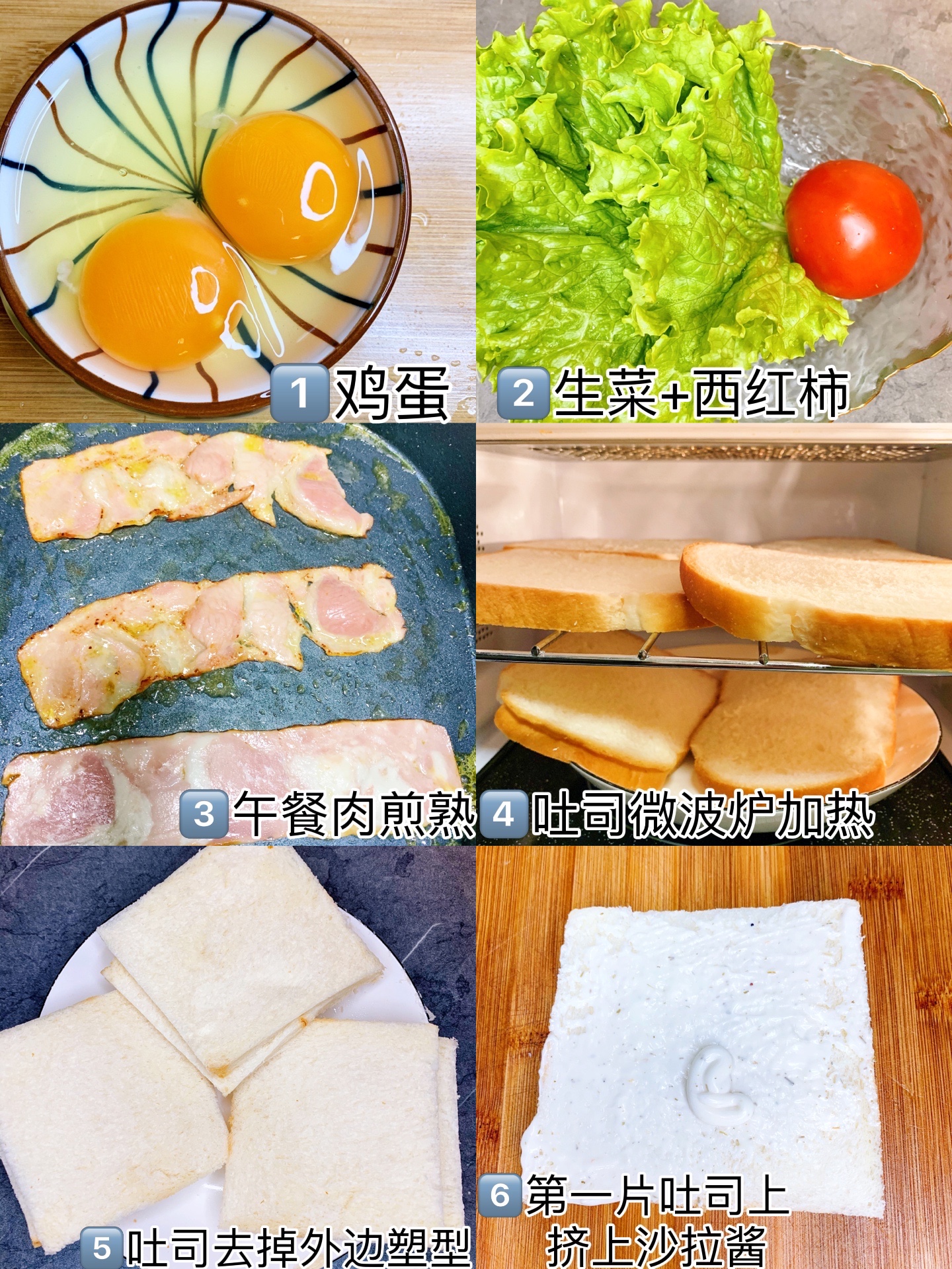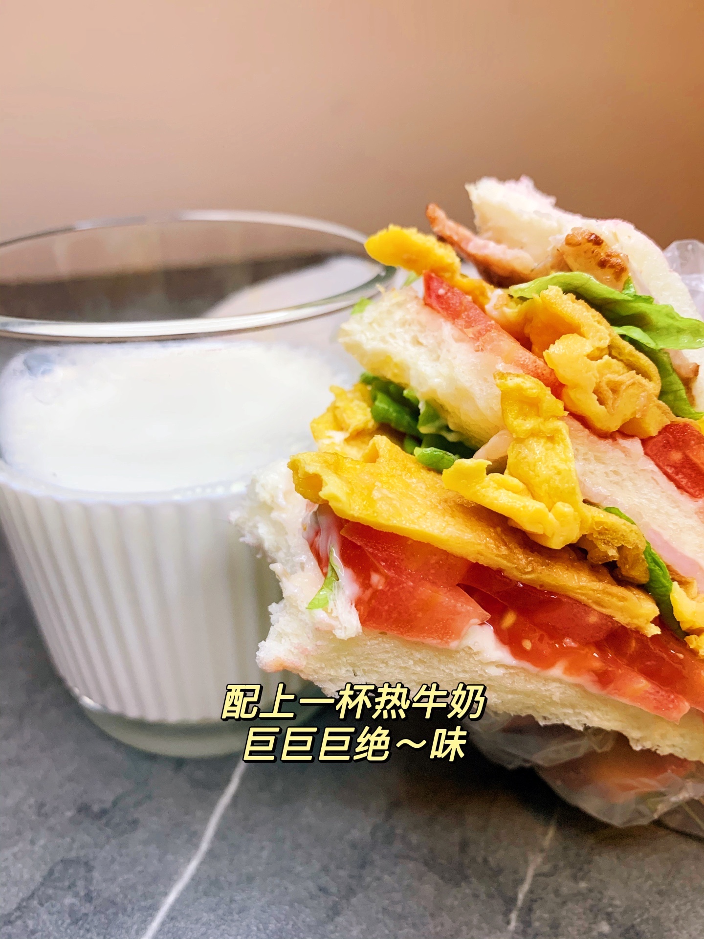 今天来个更好吃的蛋包培根三明治🥪好吃到炸裂啊😜