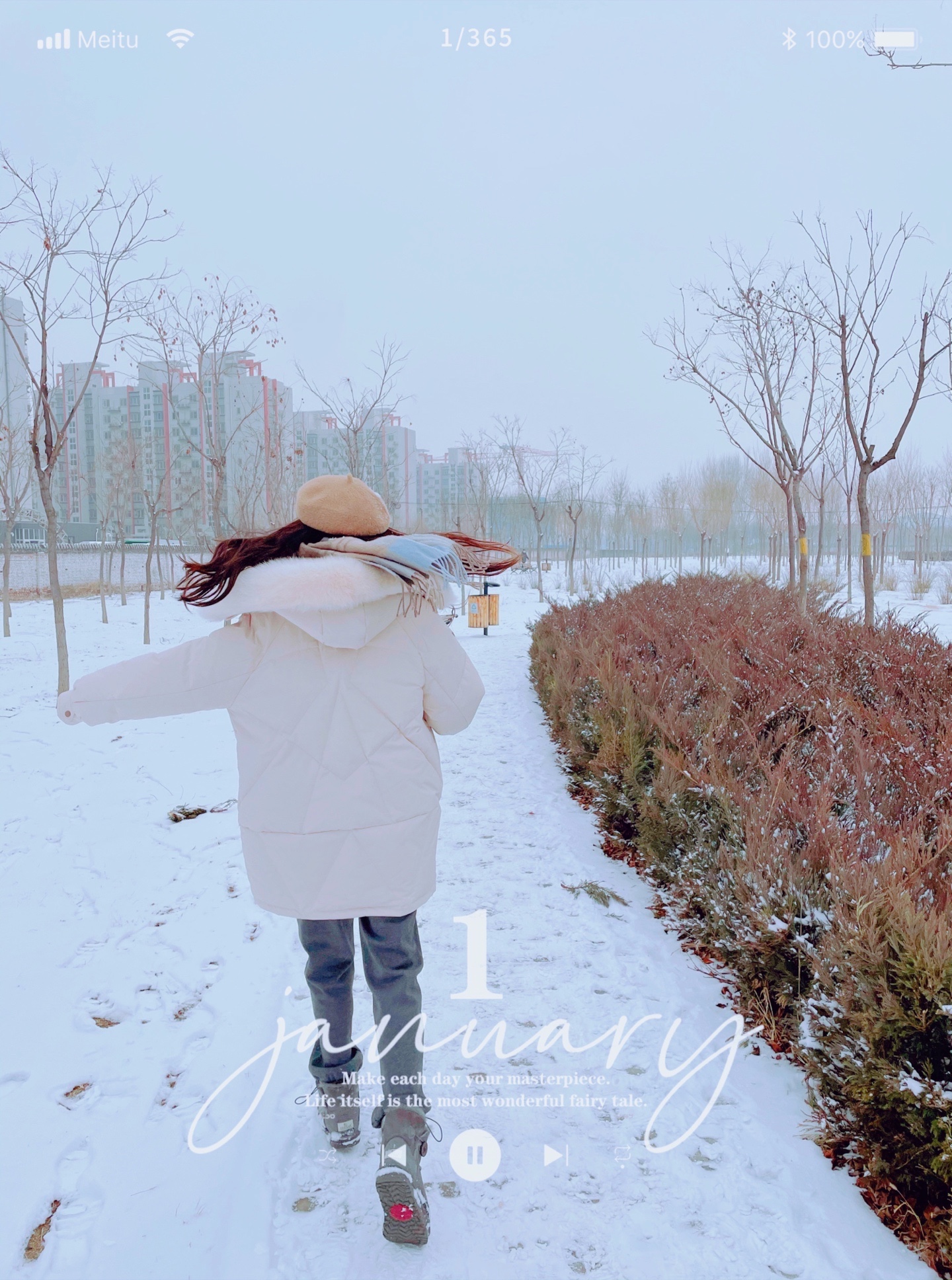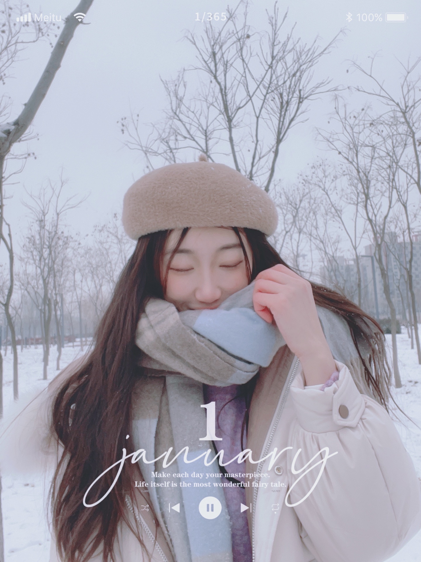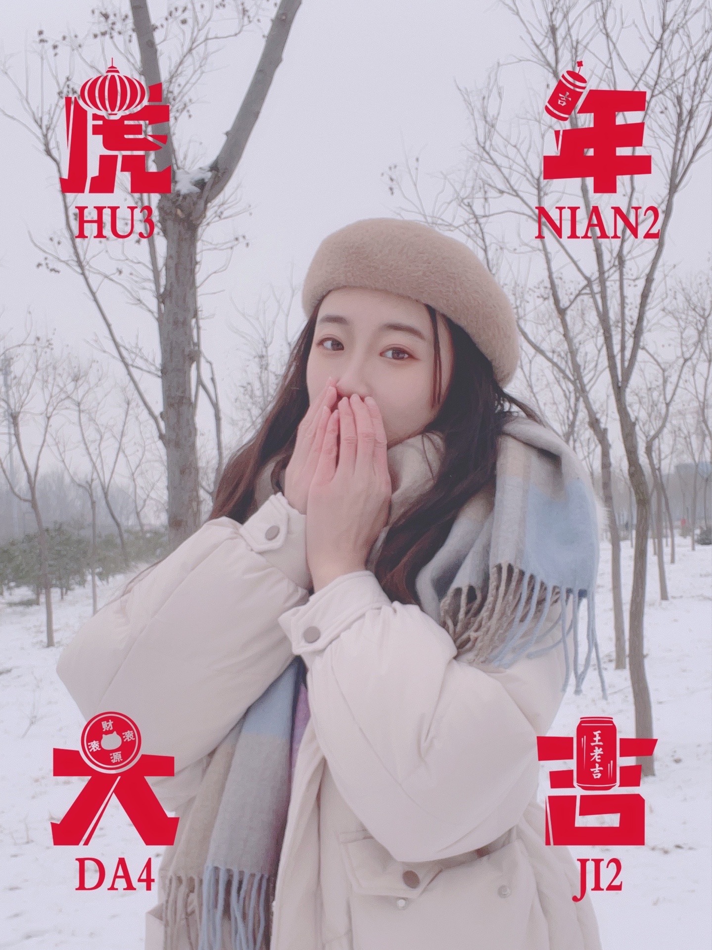地点就是街边公园 虽然树都秃了 但是我们可以拍大头照或者半身照~仙女们一定要戴自己最爱的小围巾小帽子啊 防寒的同时还是超棒的装饰~