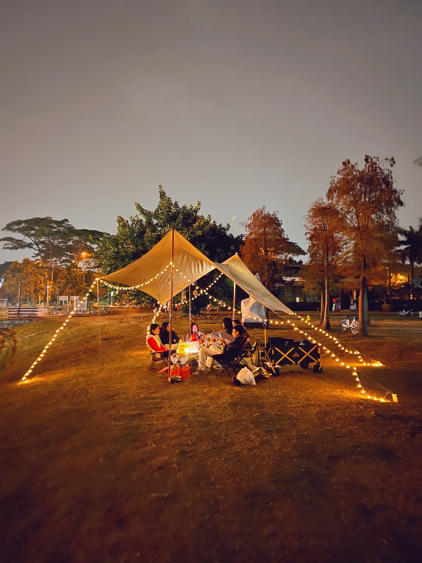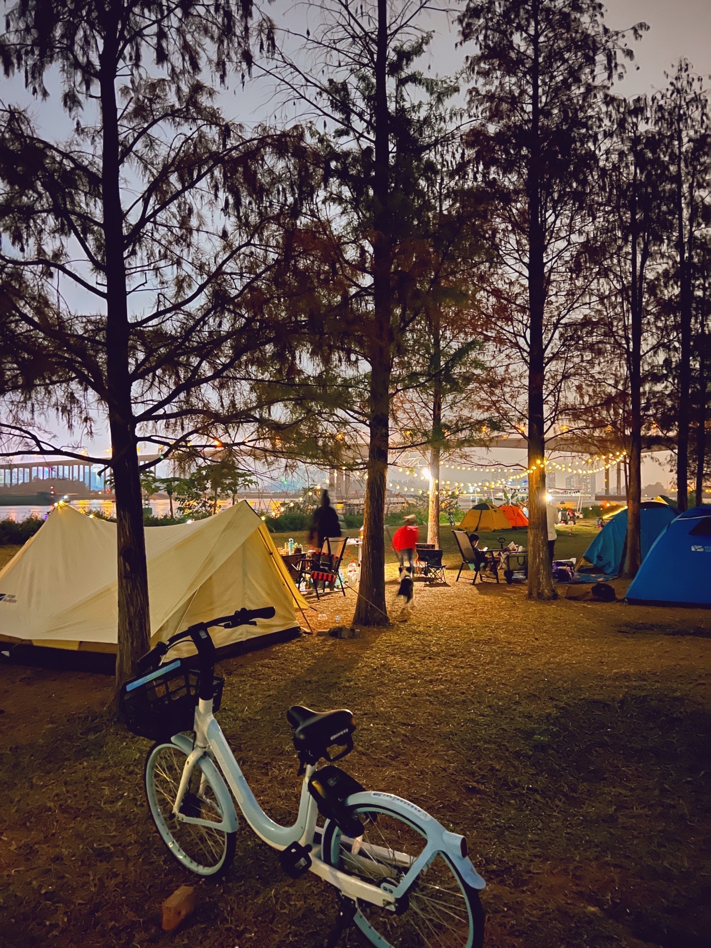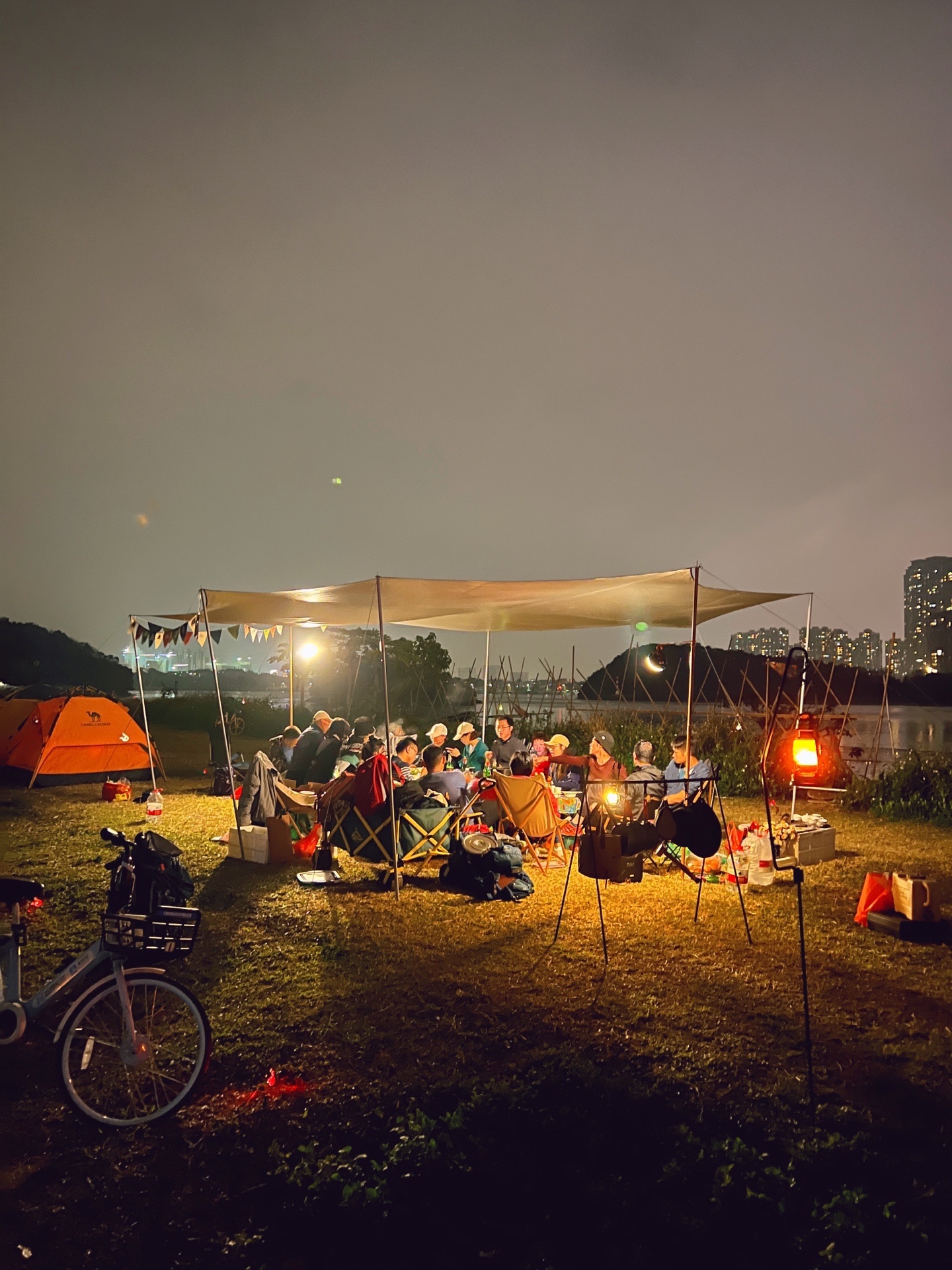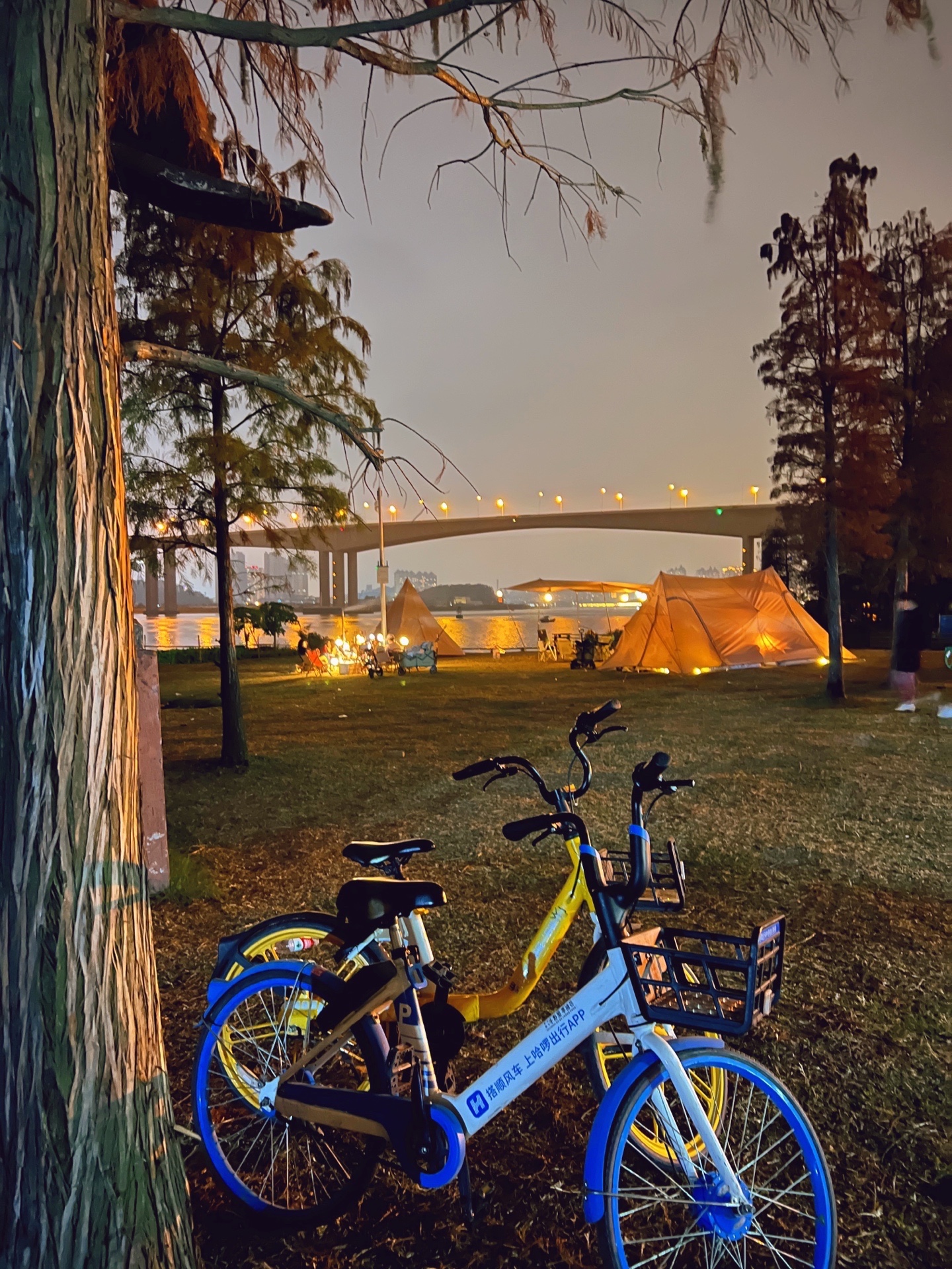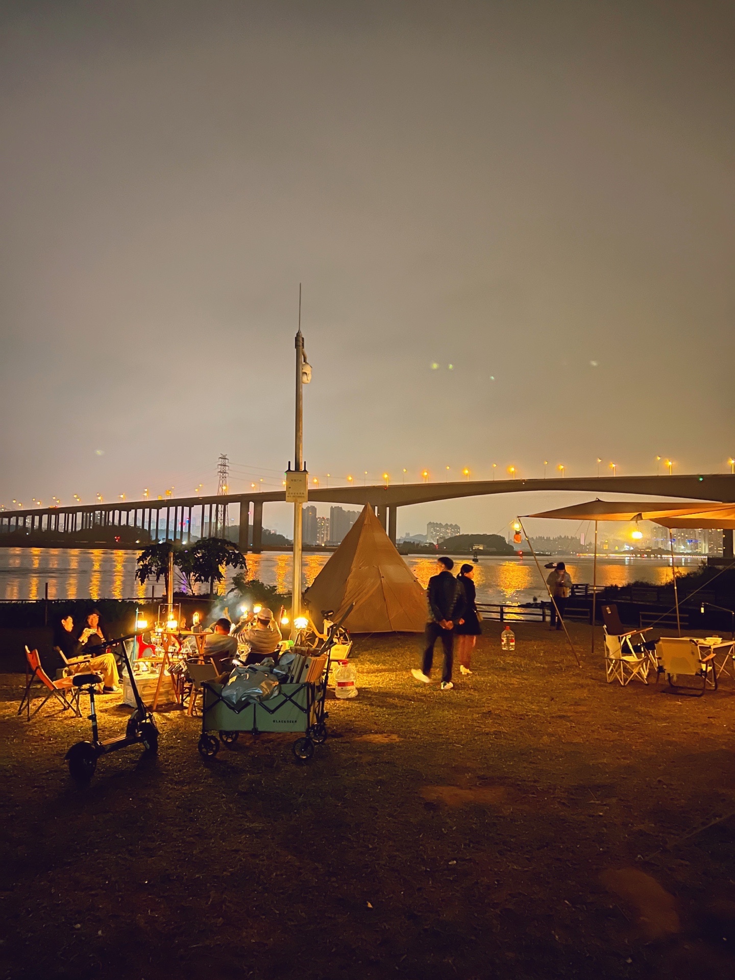 江边晚霞 温馨又浪漫的氛围 夜灯下 三五好友 家庭聚会都在江边上搭起自带的帐篷 烧烤喝茶聊天不亦乐乎 安静又相对安全 散散步 真的很合适不过 南亭村里还可以采购物资 很方便 梁明诚雕塑园地址:广东省广州市番禺区大学城外环西路