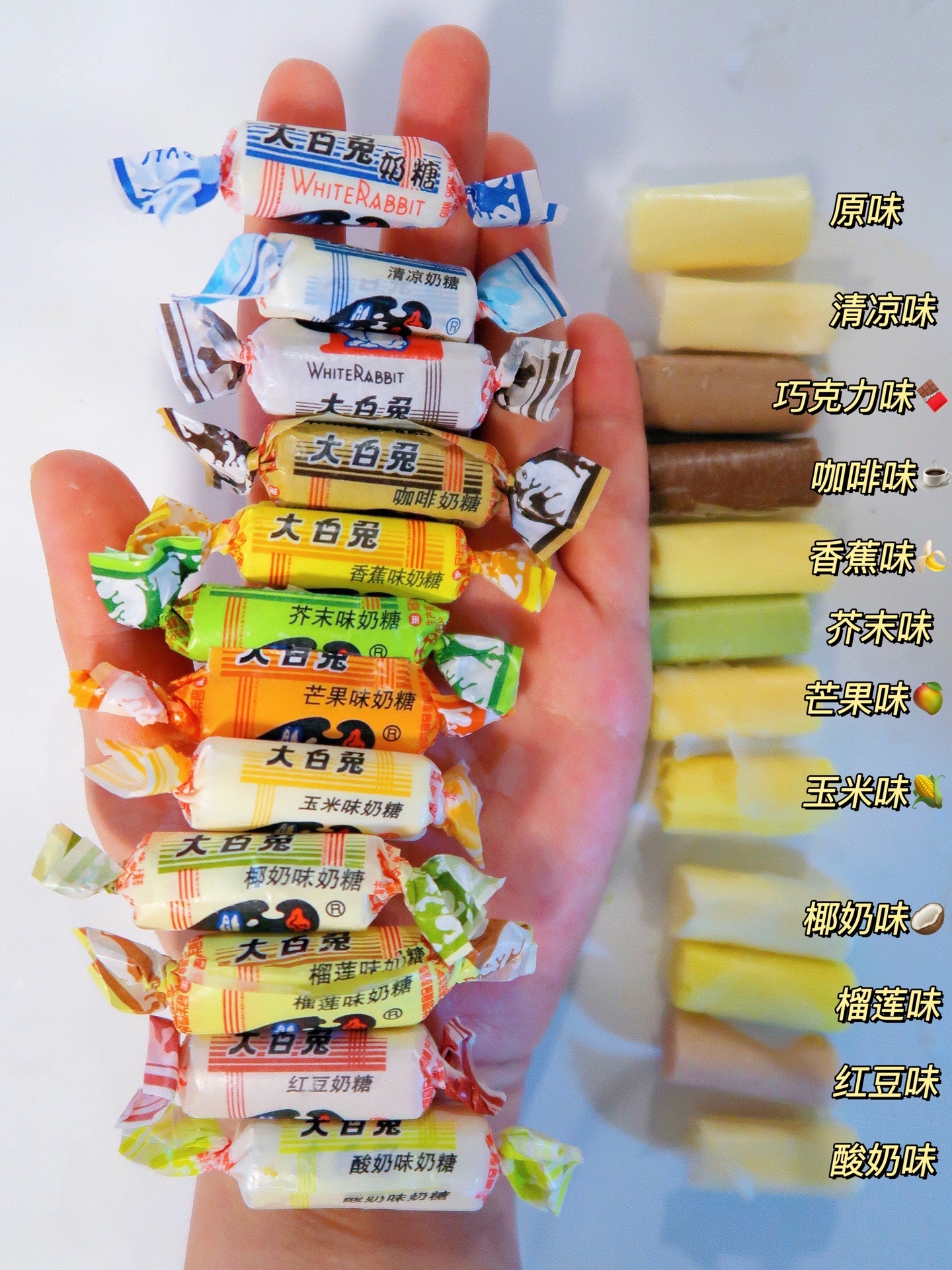 要过年了,就想吃糖了,坠爱的还是小时候吃的大白兔🐰奶糖和金丝猴奶糖。买的时候发现大白兔竟然有12种口味的,原味、清凉、巧克力🍫、咖啡☕️、香蕉🍌、芥末、芒果🥭、玉米🌽、椰奶🥥、榴莲、红豆、酸奶,都挺好吃的,连芥末味也都可以接受。过年可以囤上一袋哦,大人小孩都爱~