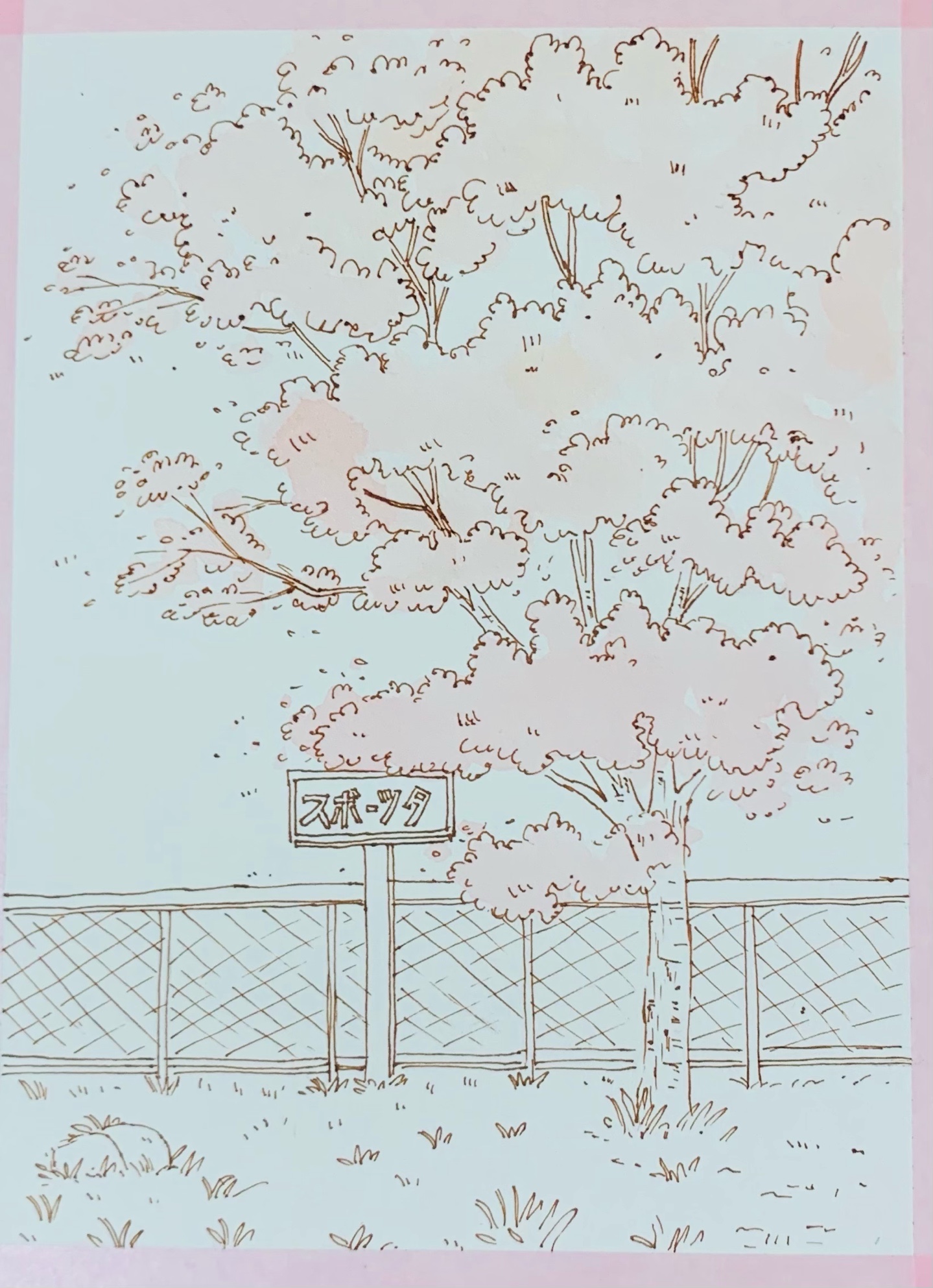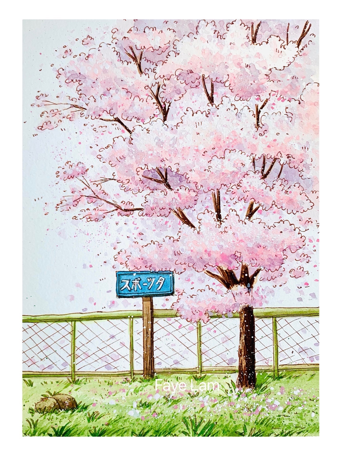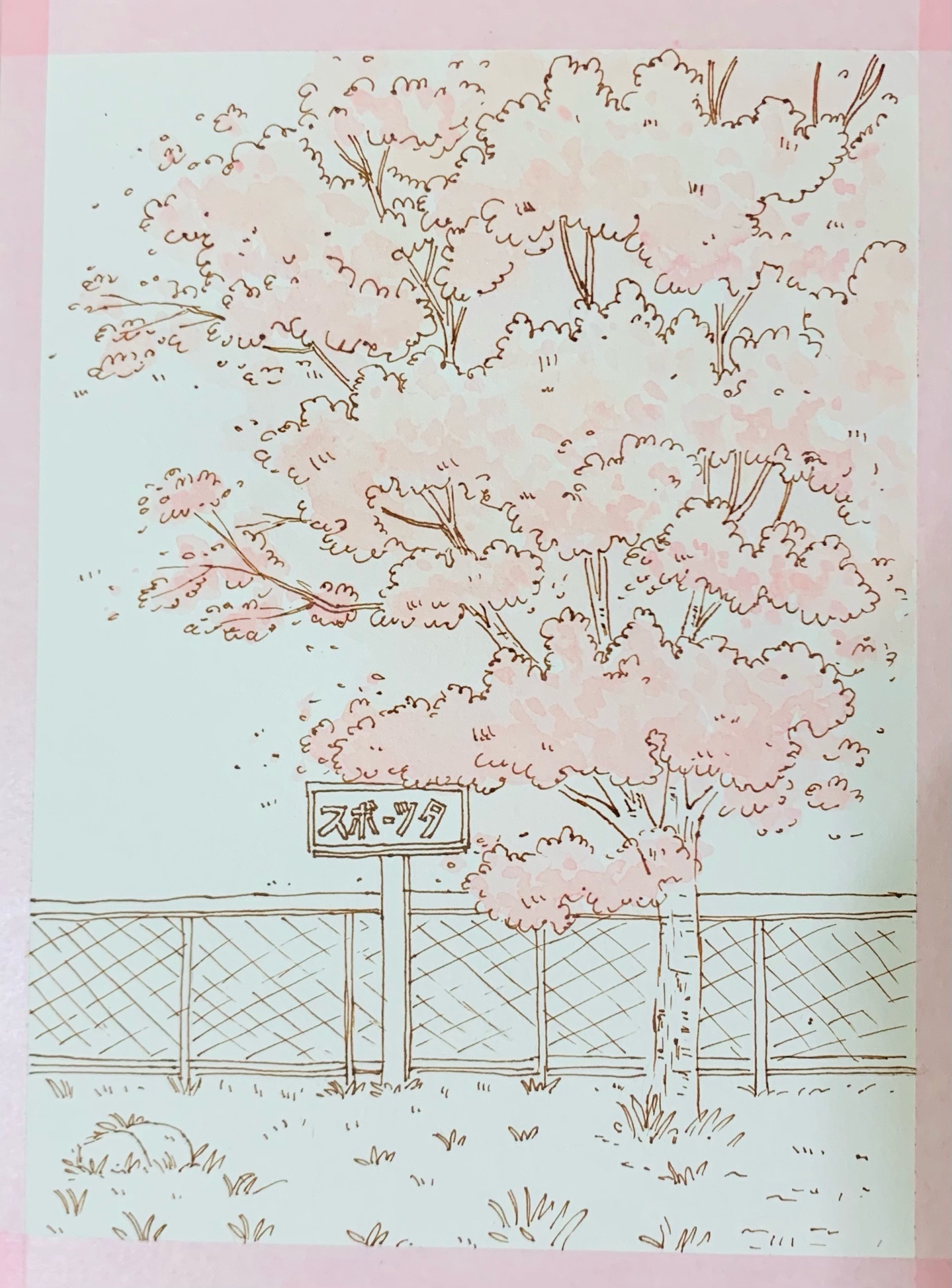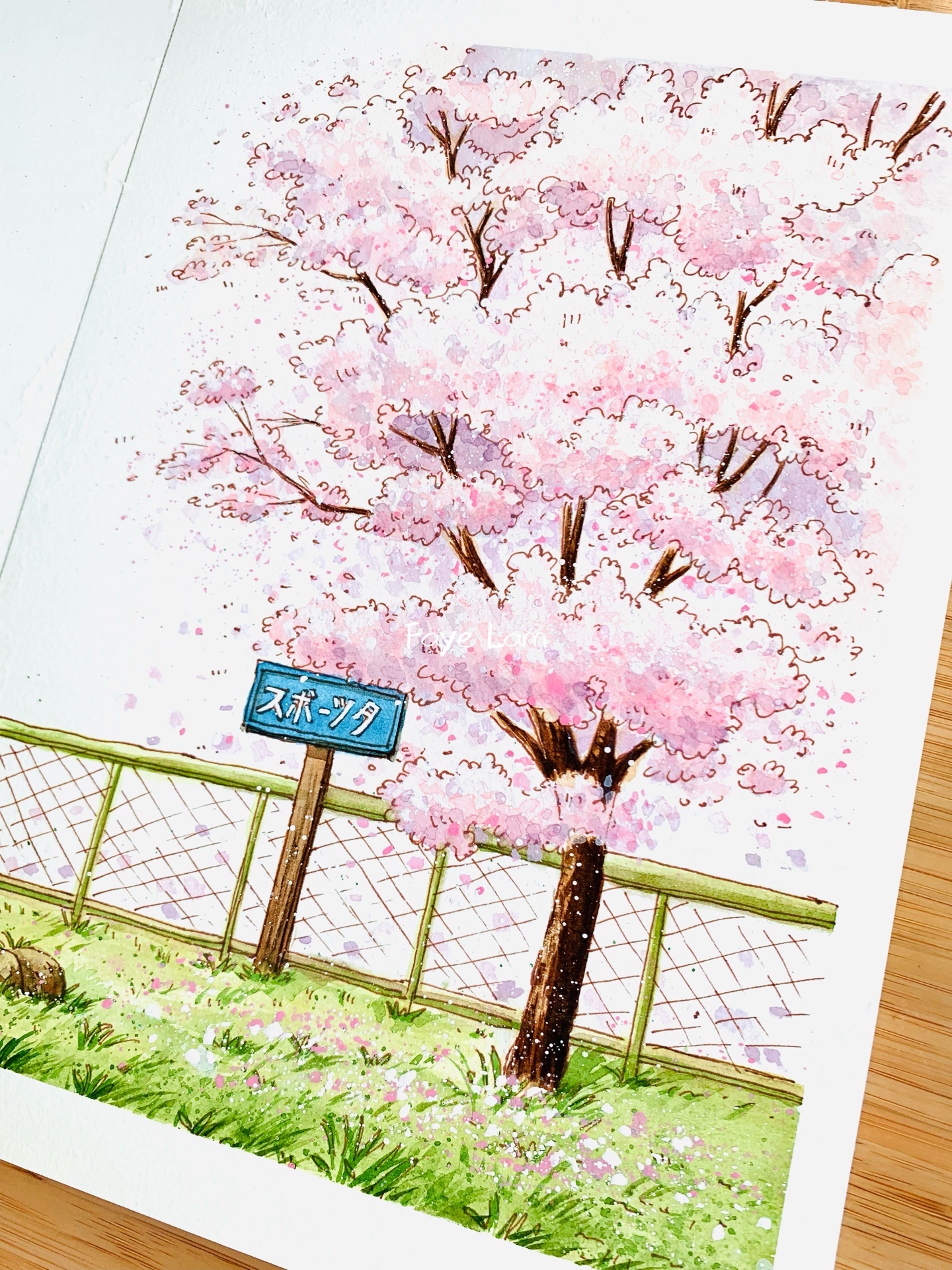 钢笔淡彩/樱花树🌸(过程)
