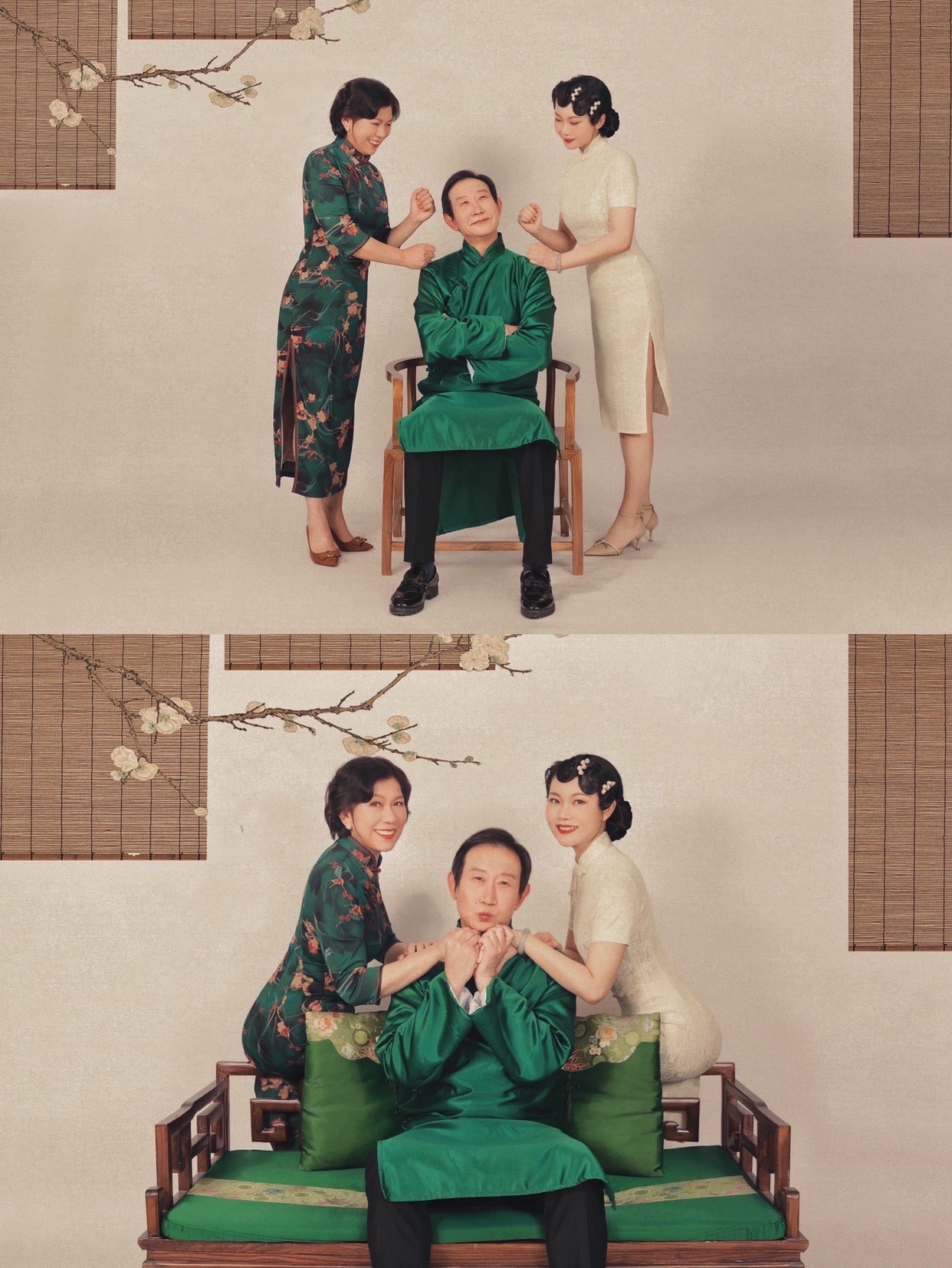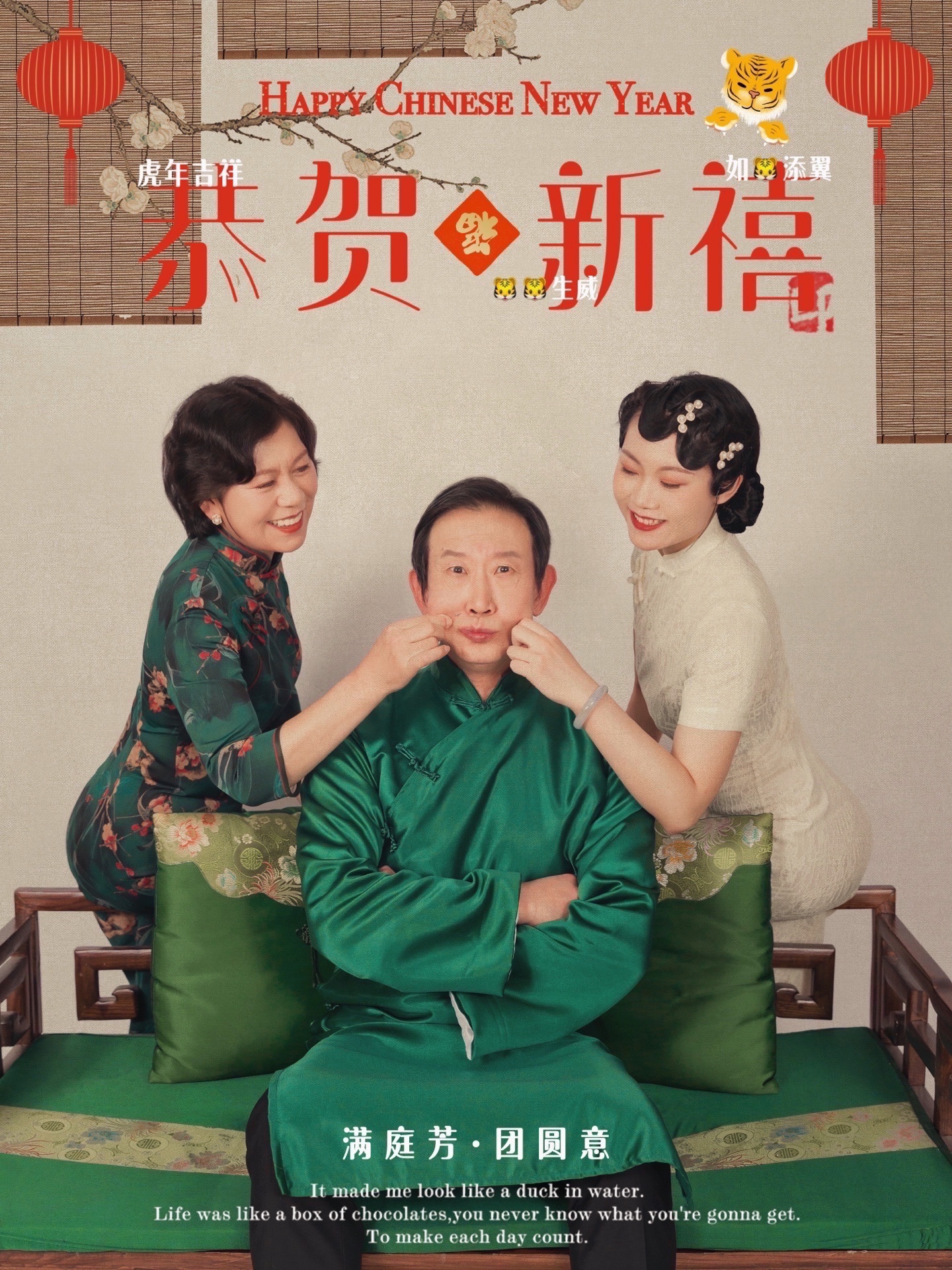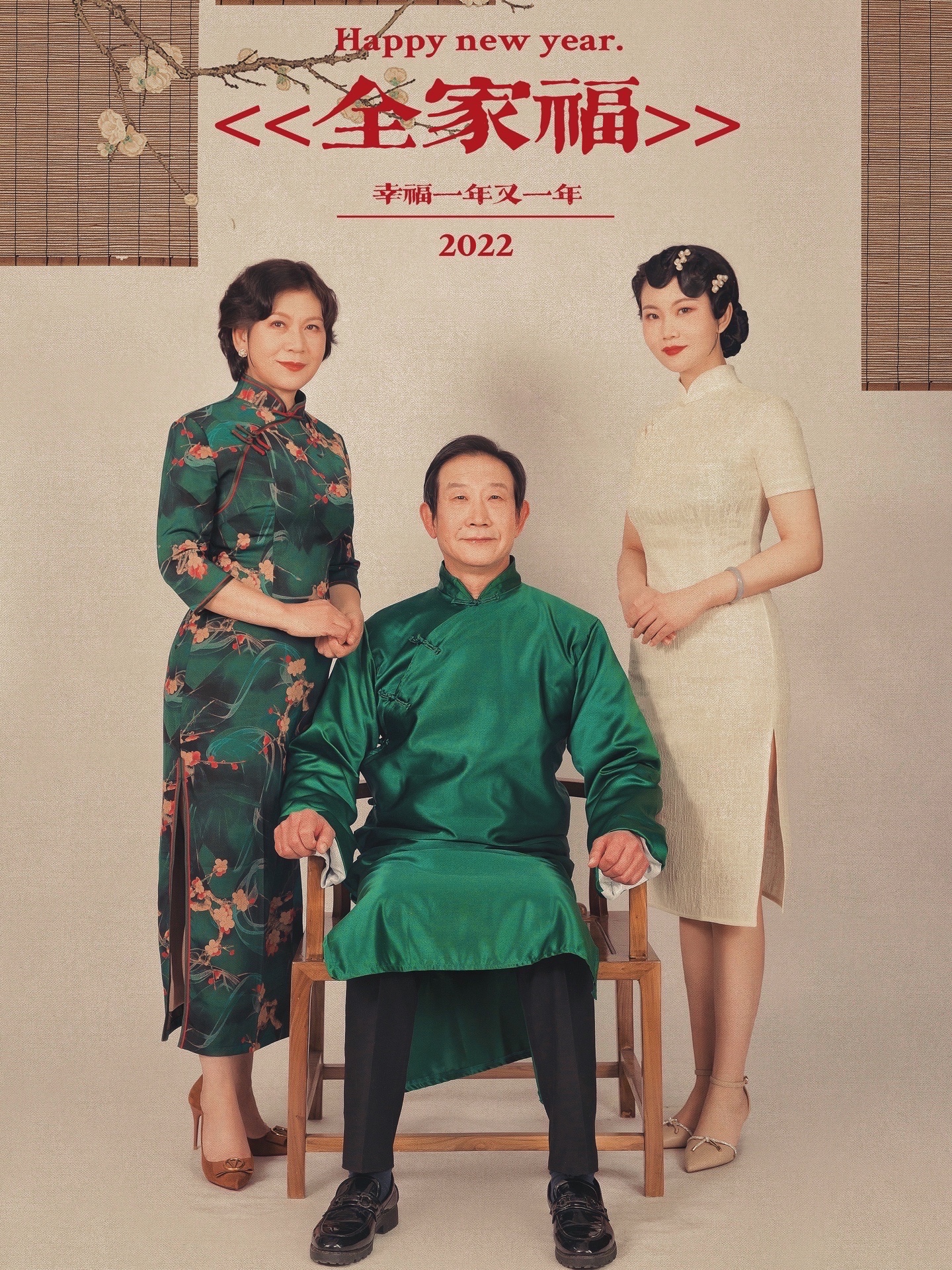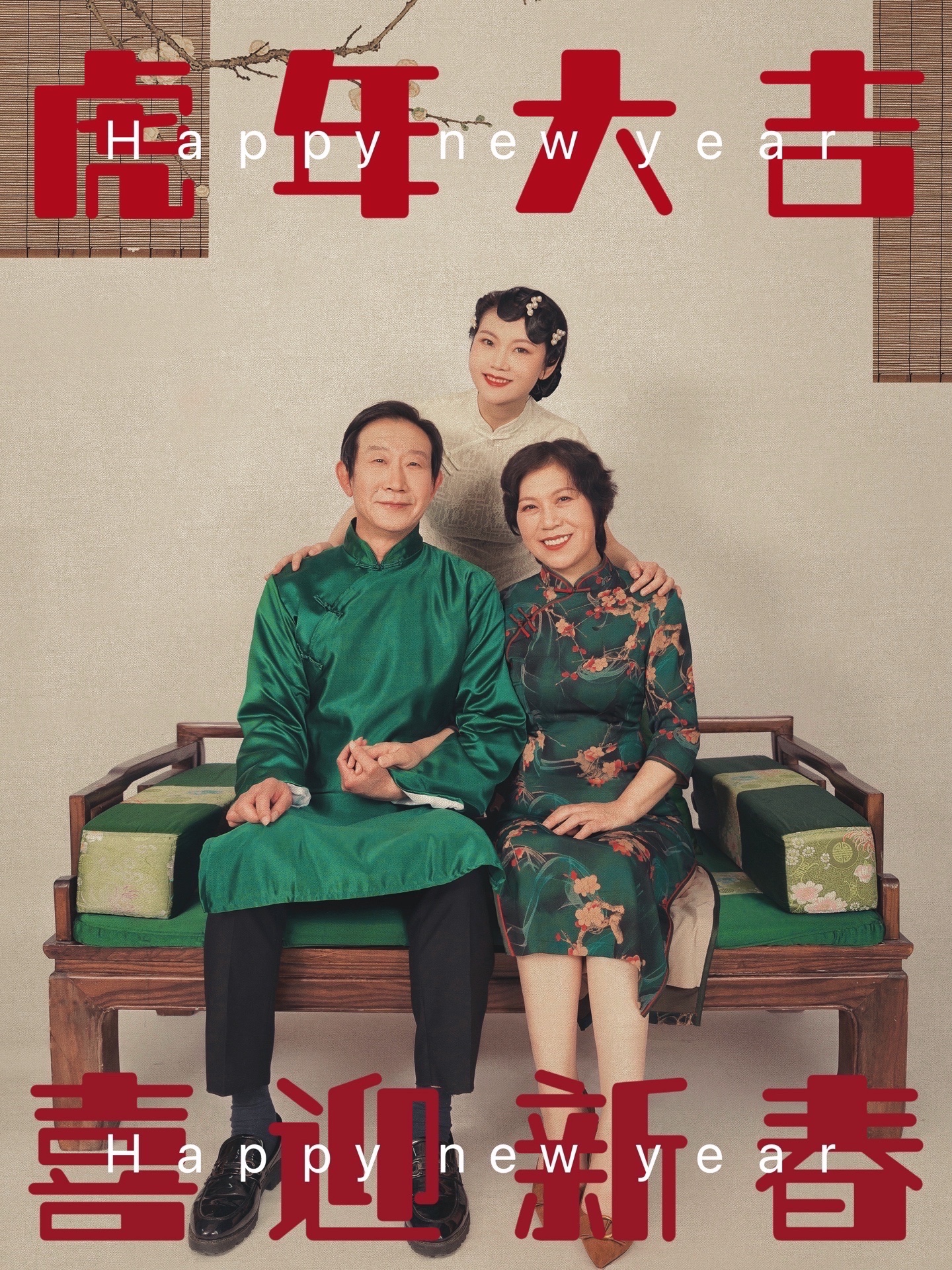 新年就是要有全家福!忽然发现复古风红配绿也很🉑️,老爸老妈可可爱爱。