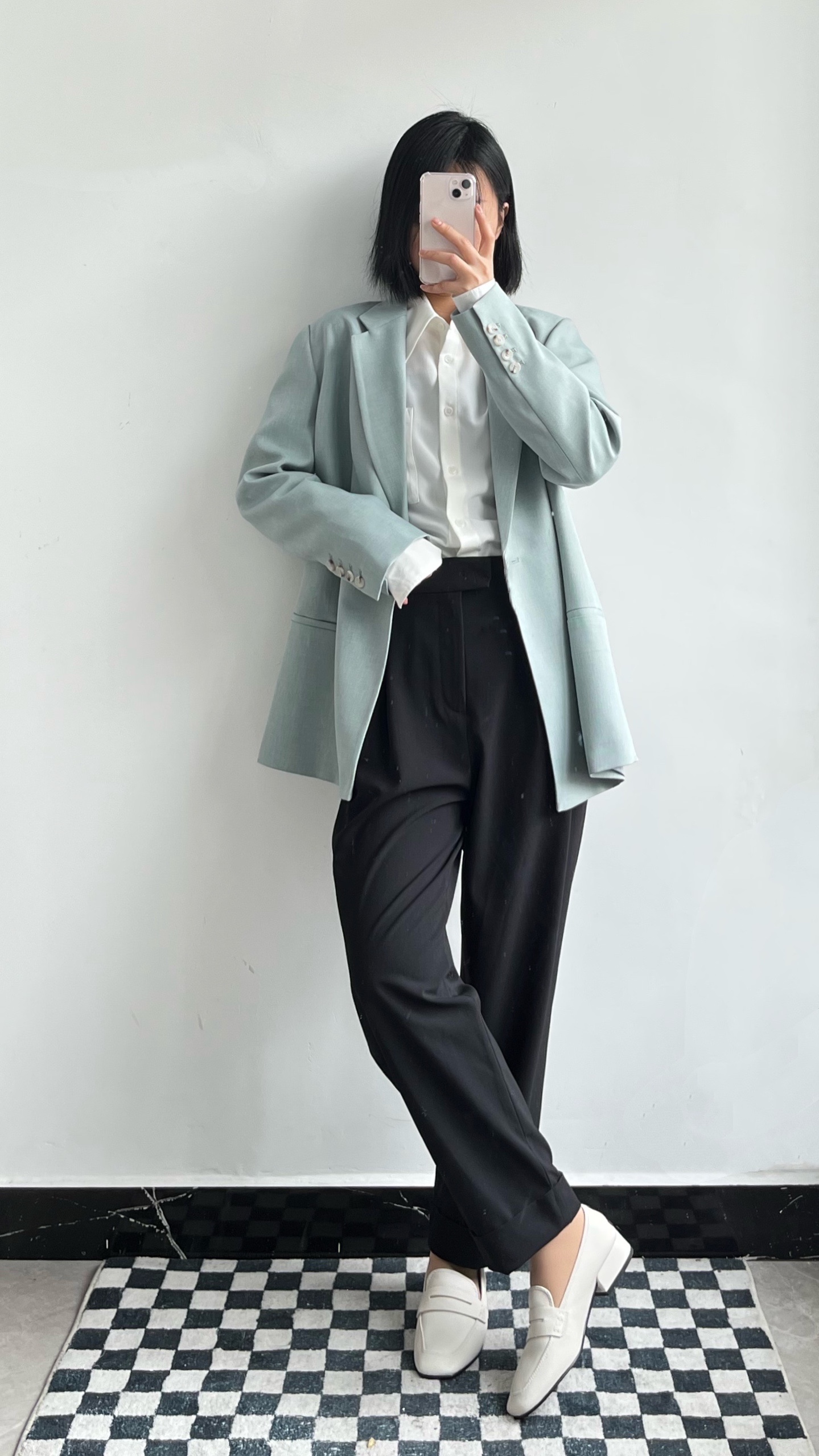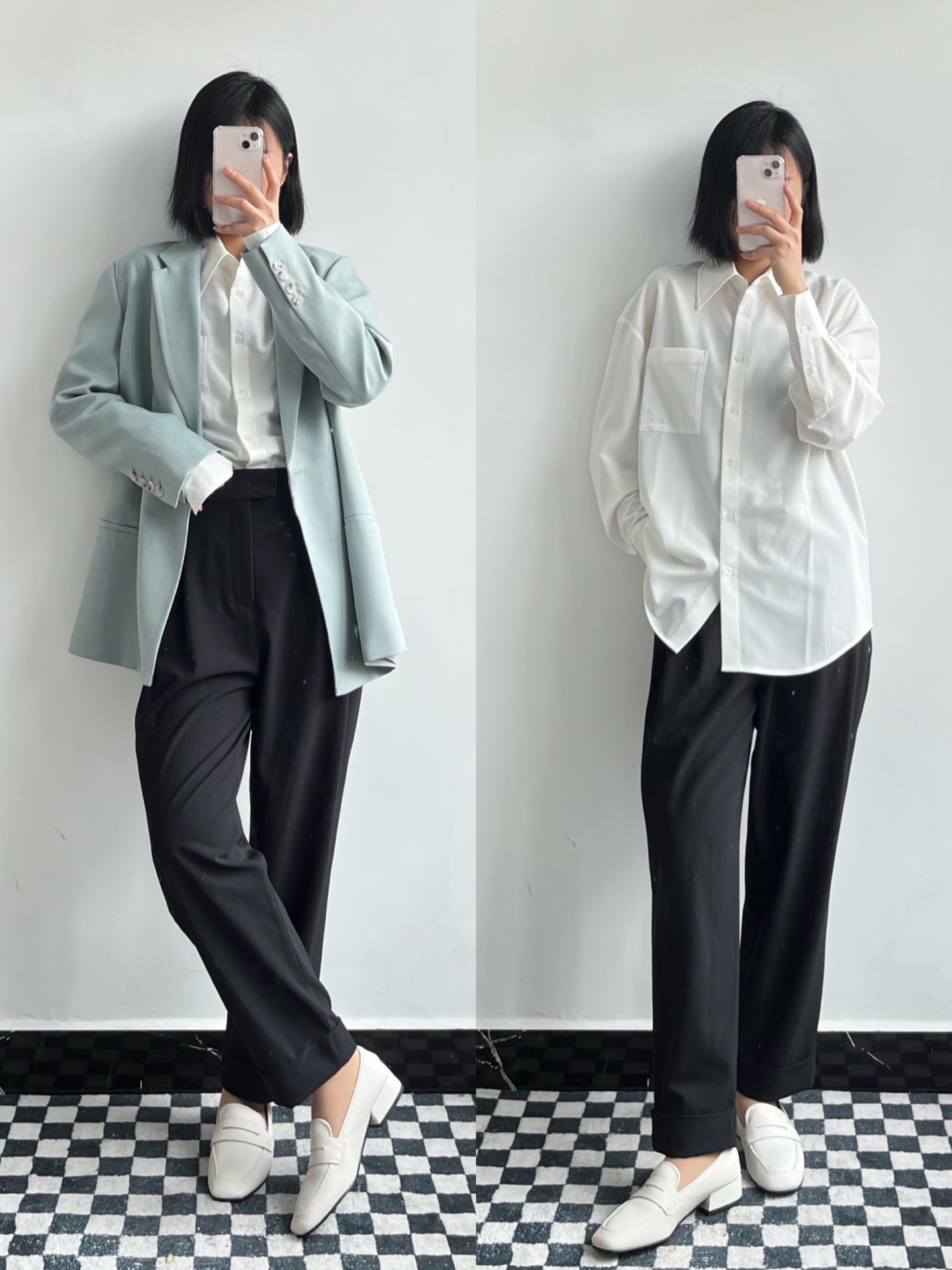 职业装三件套,绝了,气质满分,白衬衫搭配西装和黑色裤,气质女王!