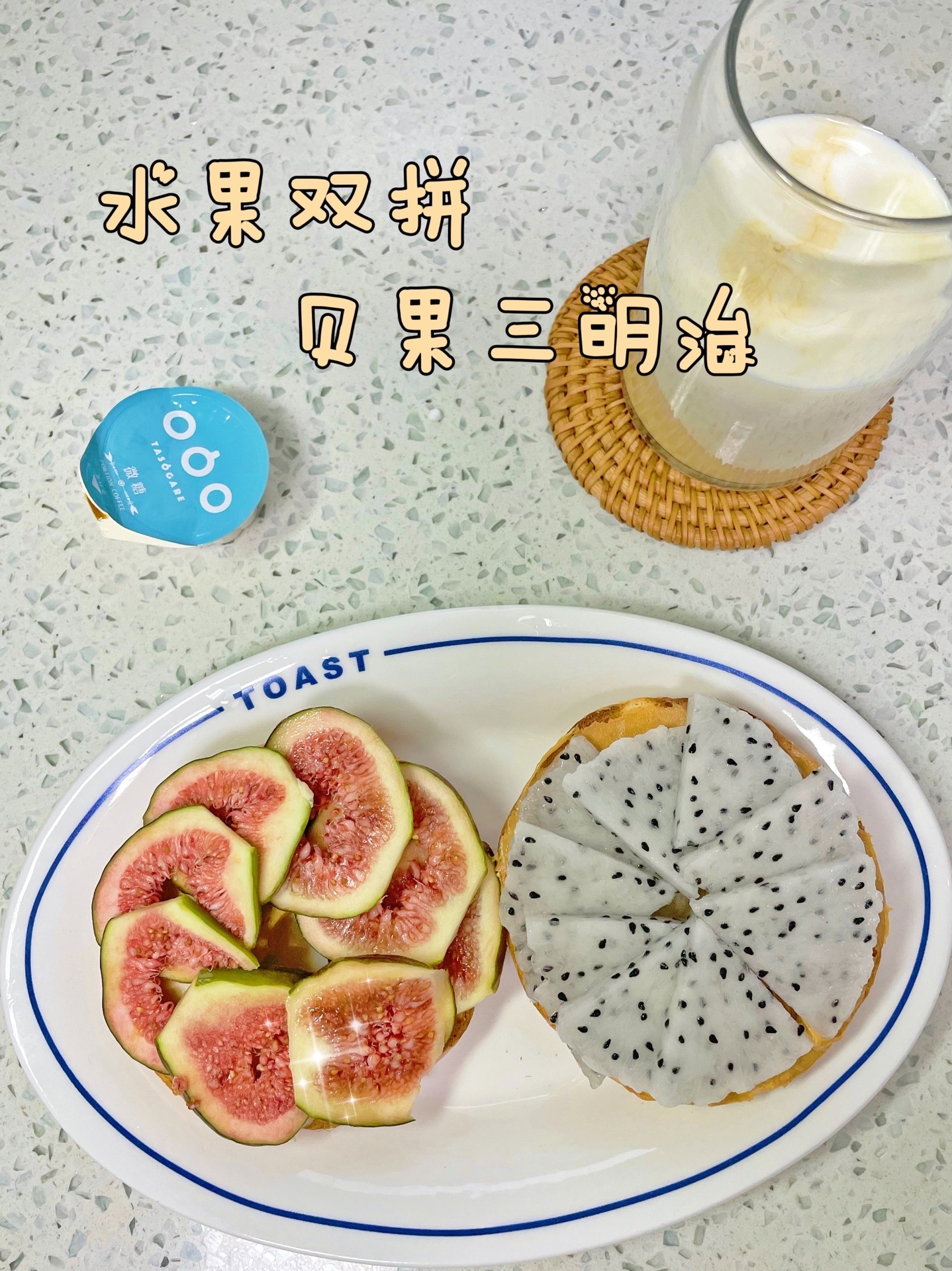 无花果,火龙果双拼开放三明治