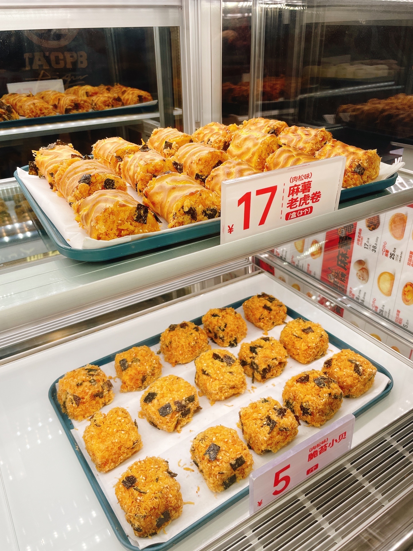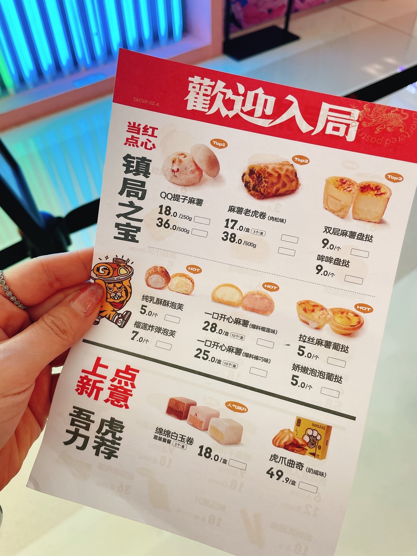 🔆🔆产品:国潮网红饼店!麻薯当道,主打虎皮麻薯卷、脆苔小贝、双层麻薯盘挞,白玉卷、炸弹泡芙,感觉都想买!红色虎头🐯包装盒太喜庆了