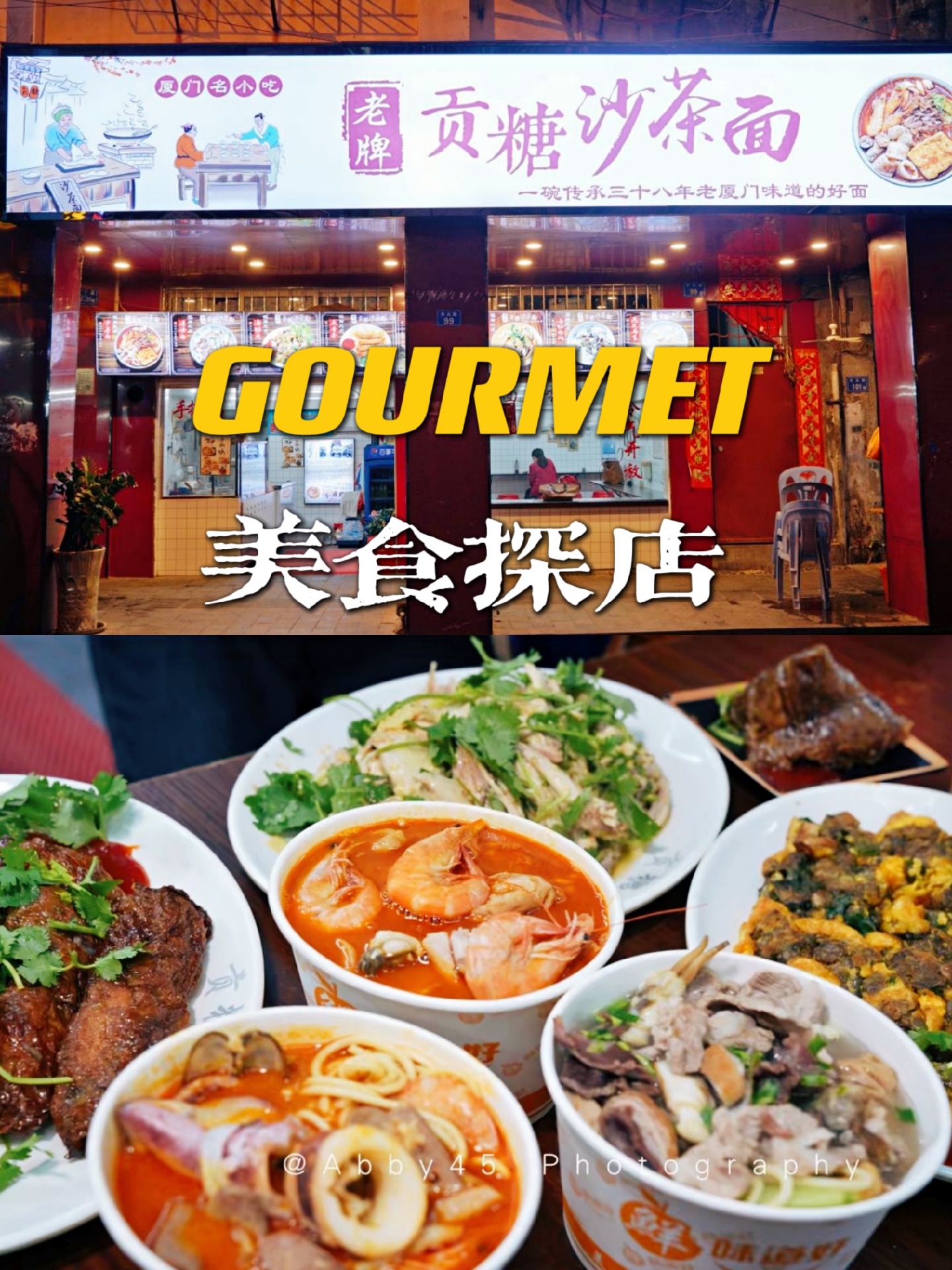 今天Abby带大家去的就是传承38年老厦门味道的老牌贡糖沙茶面,位于热闹非凡的八市路口,吉治百货斜对面。