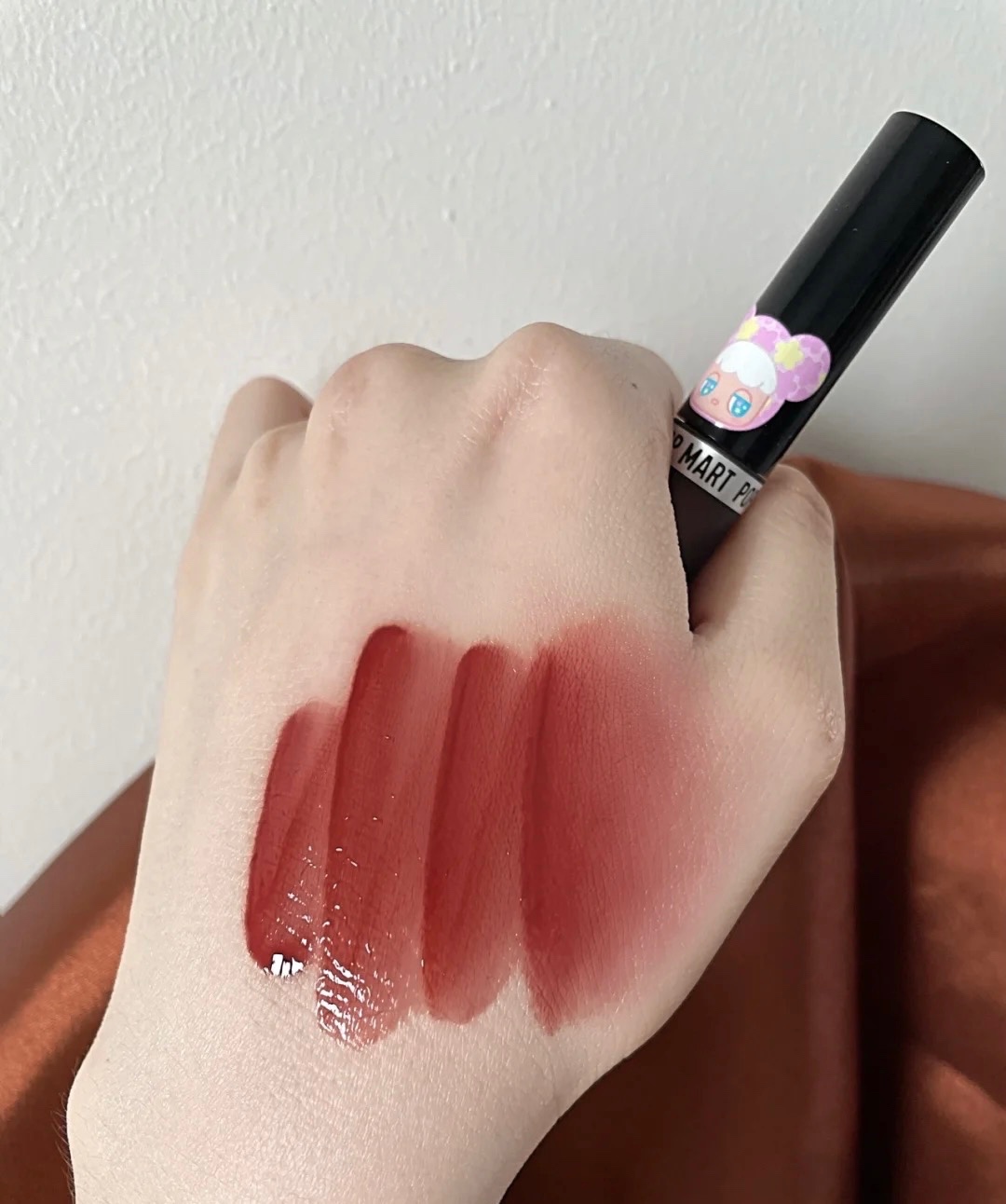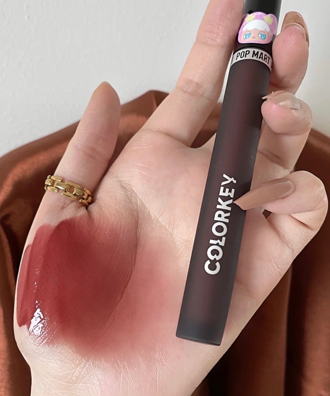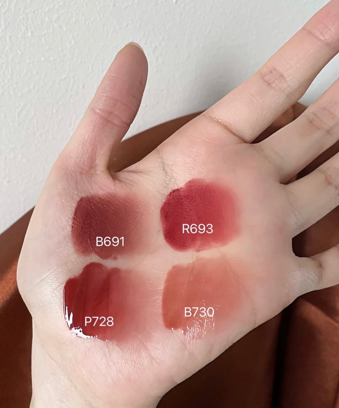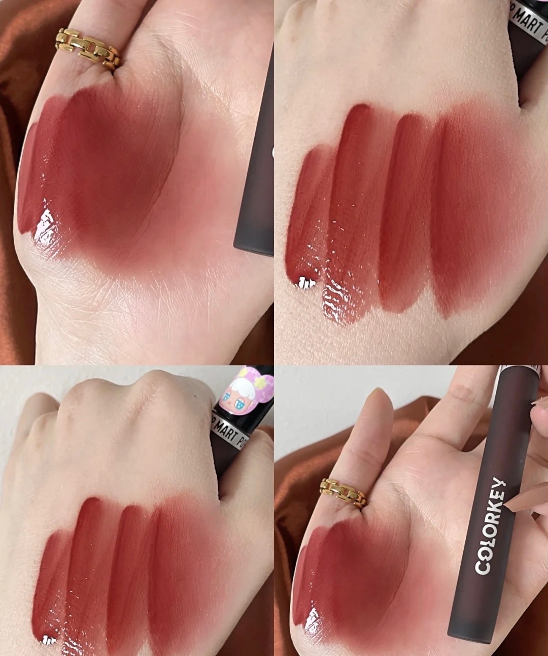 上嘴色号是小黑镜唇釉P728~带点蜜桃感的的日杂红茶调