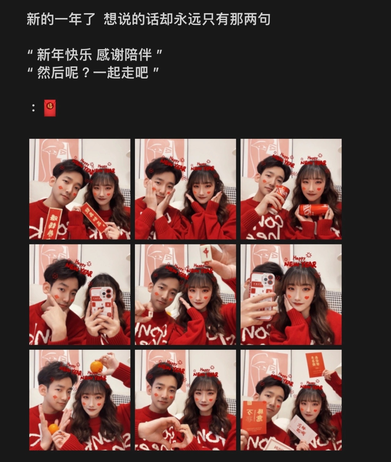 情侣文案|朋友圈九宫格发圈配图素材文案|情侣创意新年照|有趣好玩的新年情侣|情侣创意拍照姿势|朋友圈情侣拍照|朋友圈晒幸福文案|