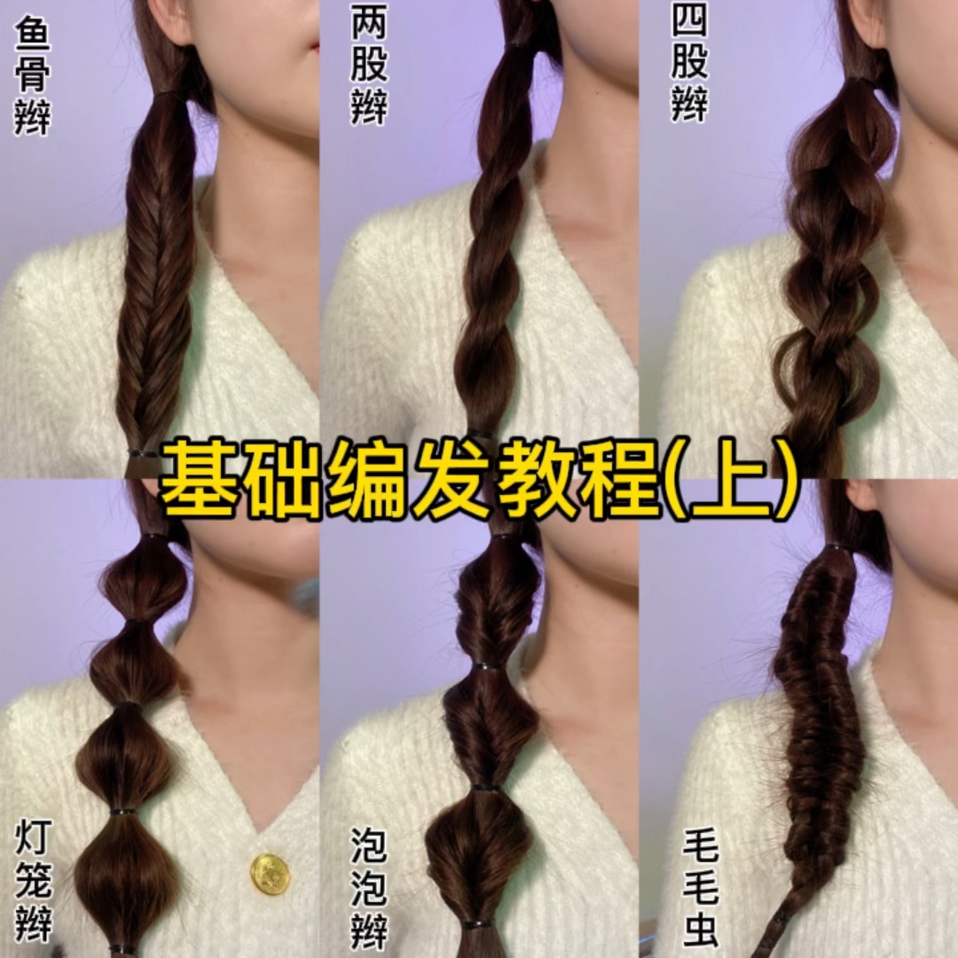 新手基础编发教程上1鱼骨辫2两股辫3四股辫4灯笼辫5泡泡辫6-美图社区-美图秀秀