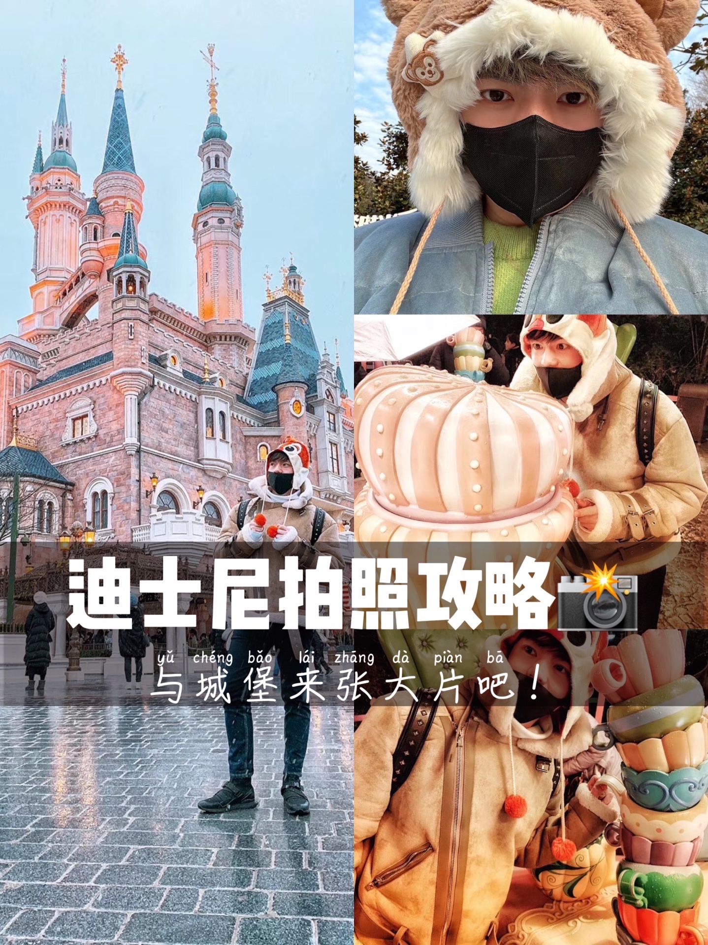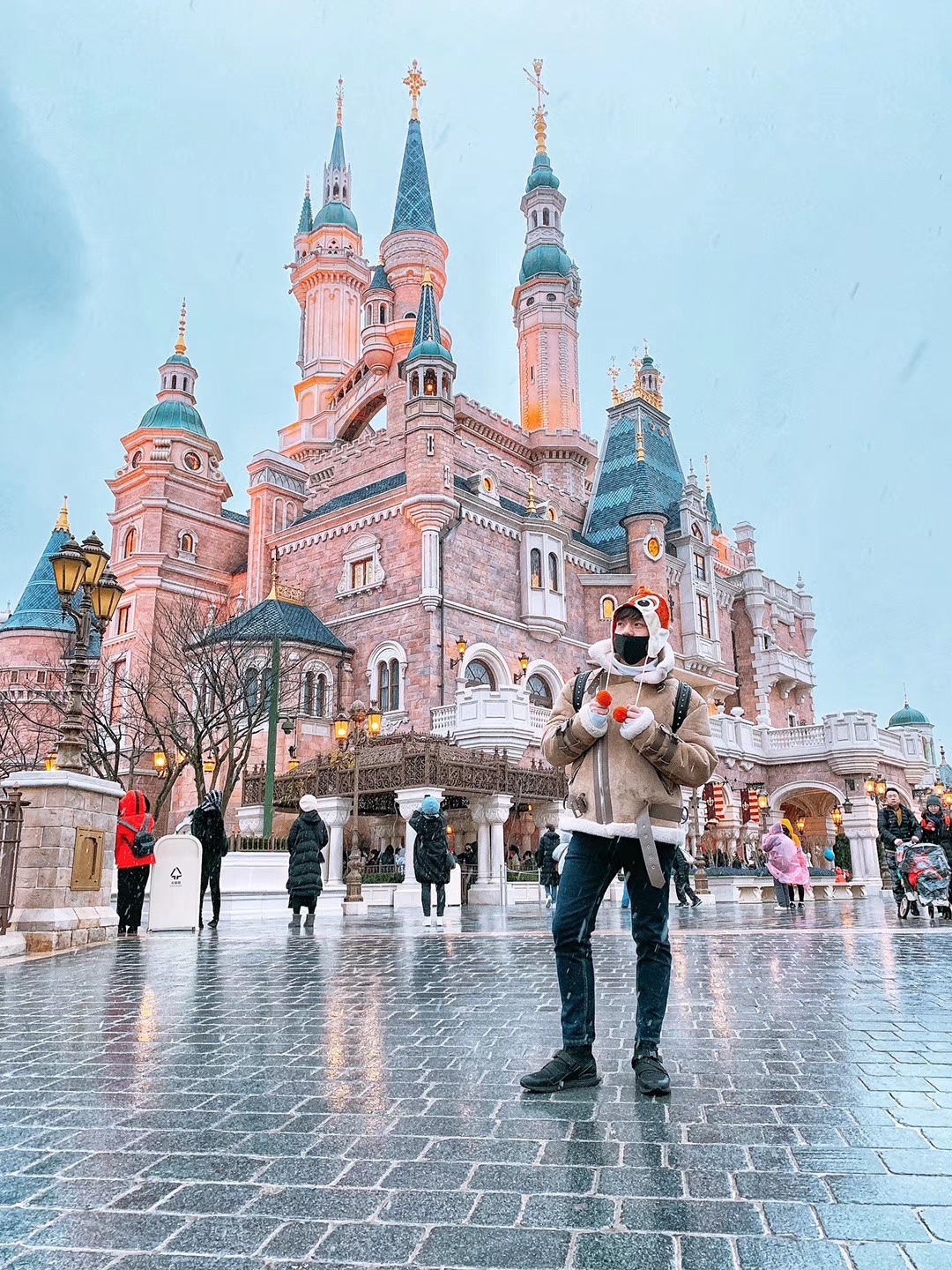 迪士尼冬季拍摄别有一般韵味,尤其是伴随着下雪,这次去城堡下雪的时候,首先建议怕冷的小伙伴务必买顶自己喜欢人物的帽子,既保暖又可以融入整体的氛围。