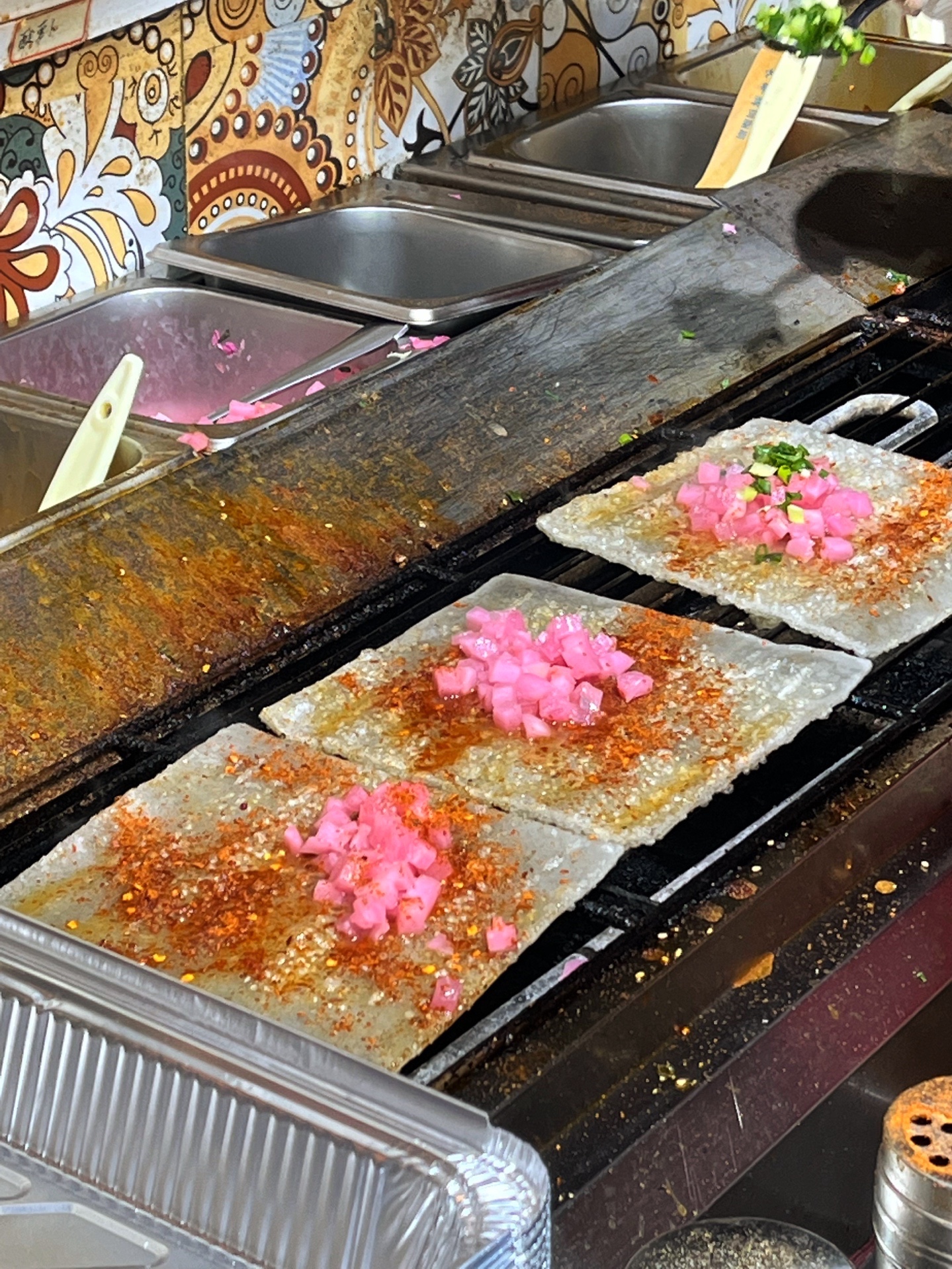 ✅价位在12-15元不等,点了酸菜、酸萝卜和里脊的,每一个苕皮里面标配就是有酸萝卜