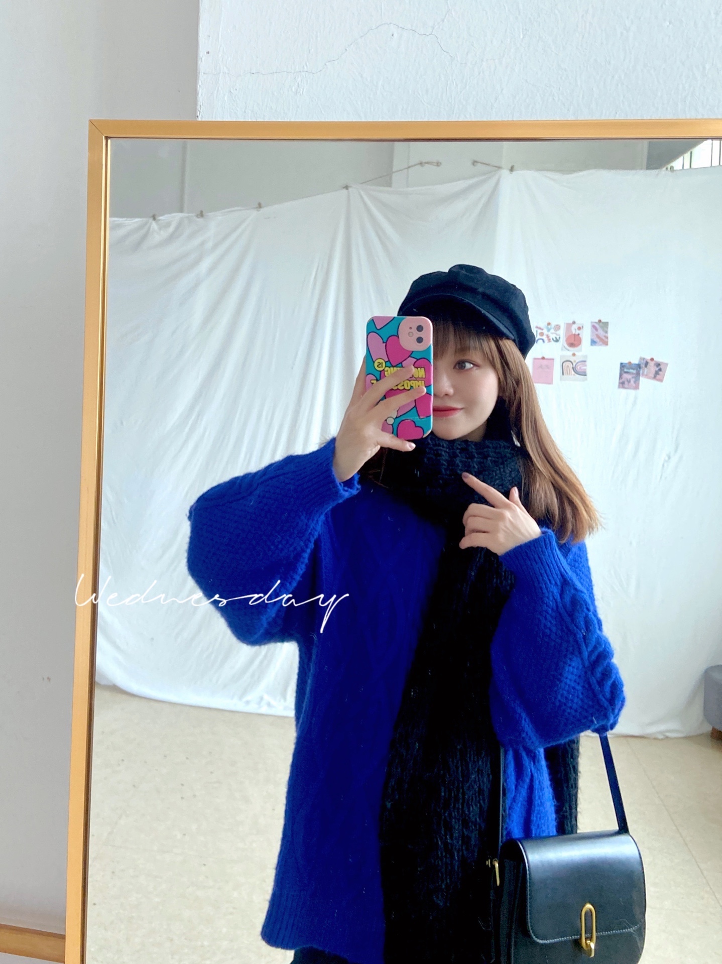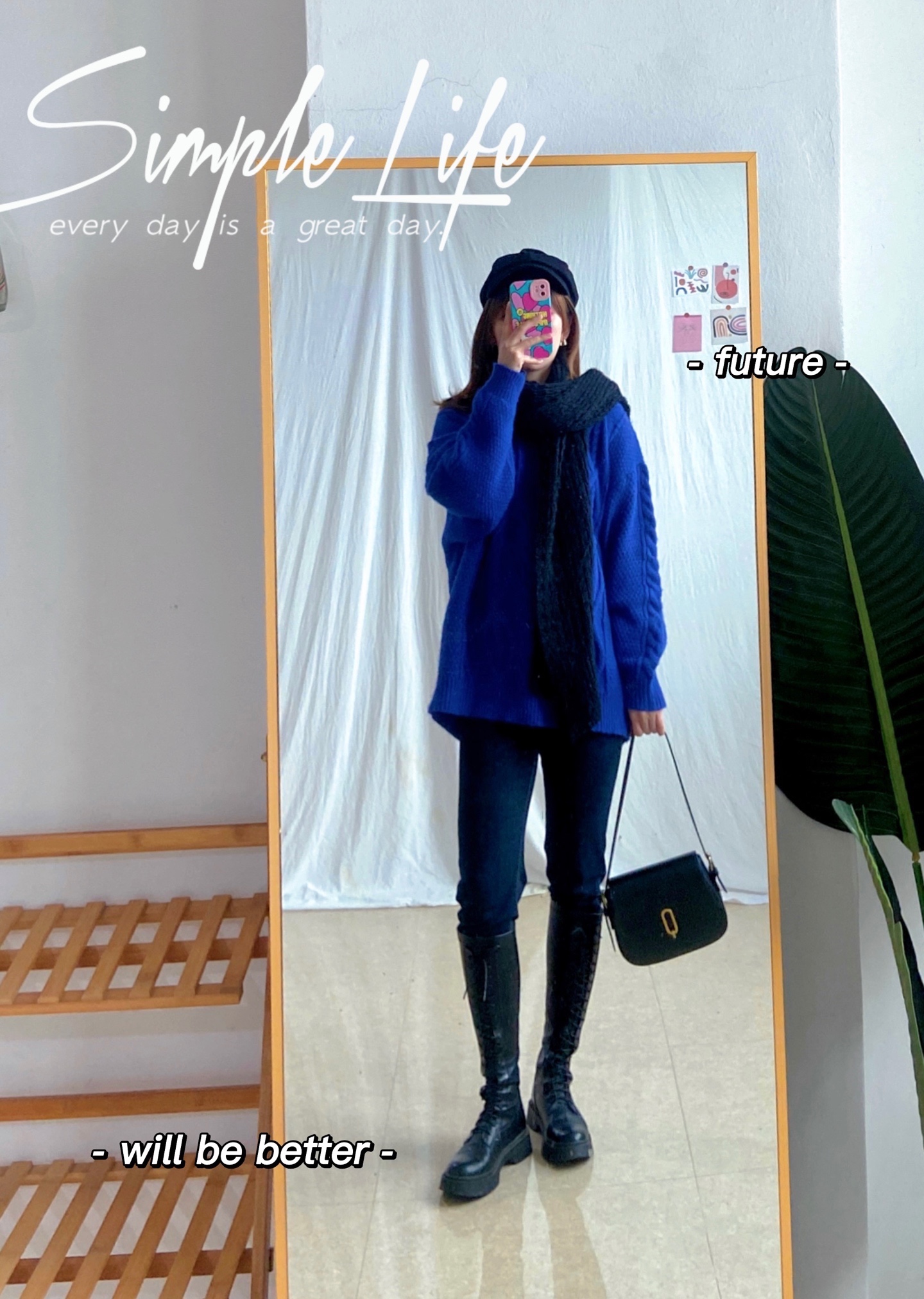 今日🍓穿搭分享今天简简单单的蓝色毛衣➕深蓝色牛仔裤➕长筒靴-美图社区-美图秀秀