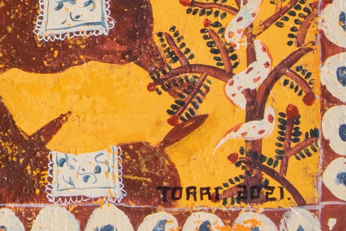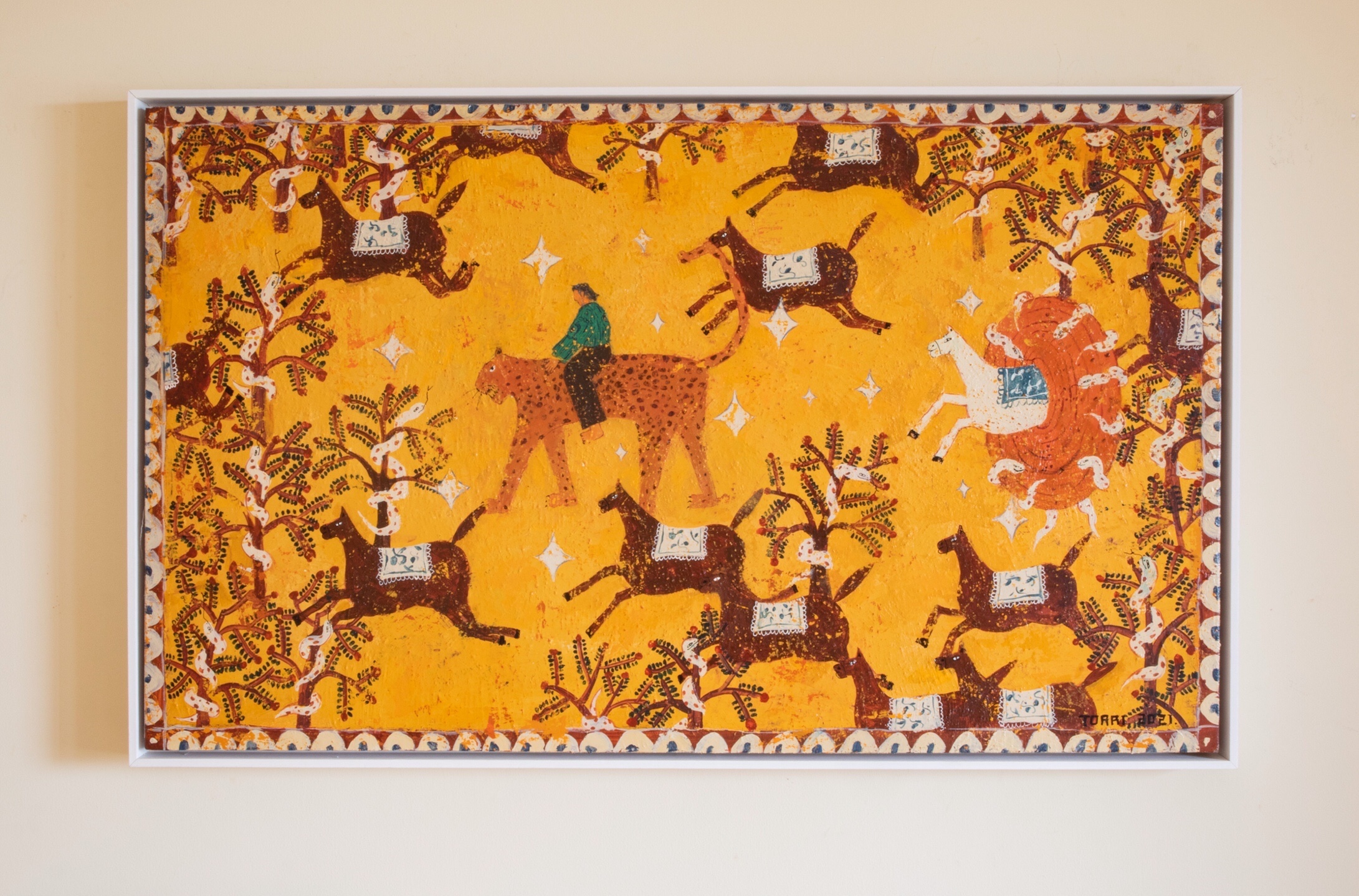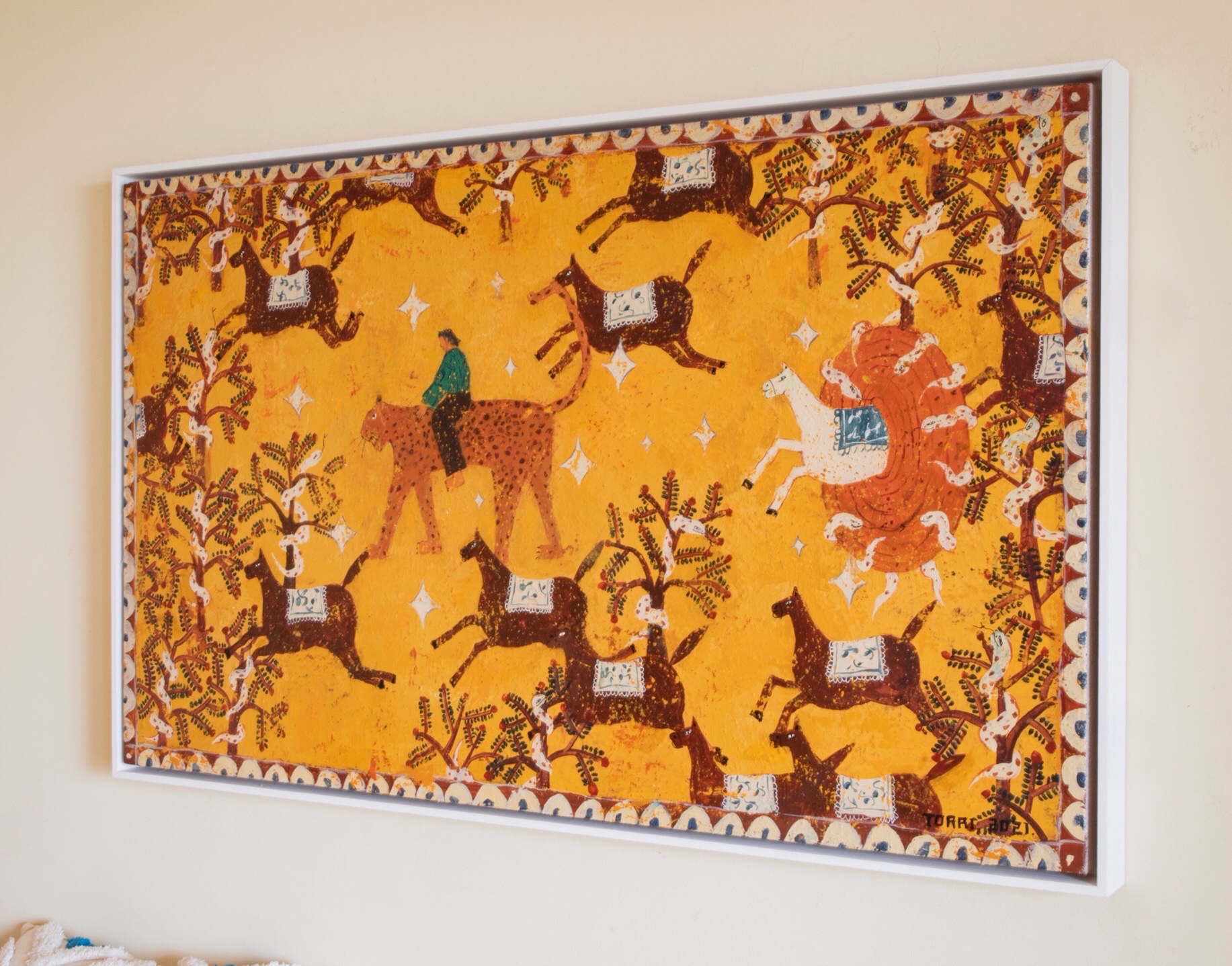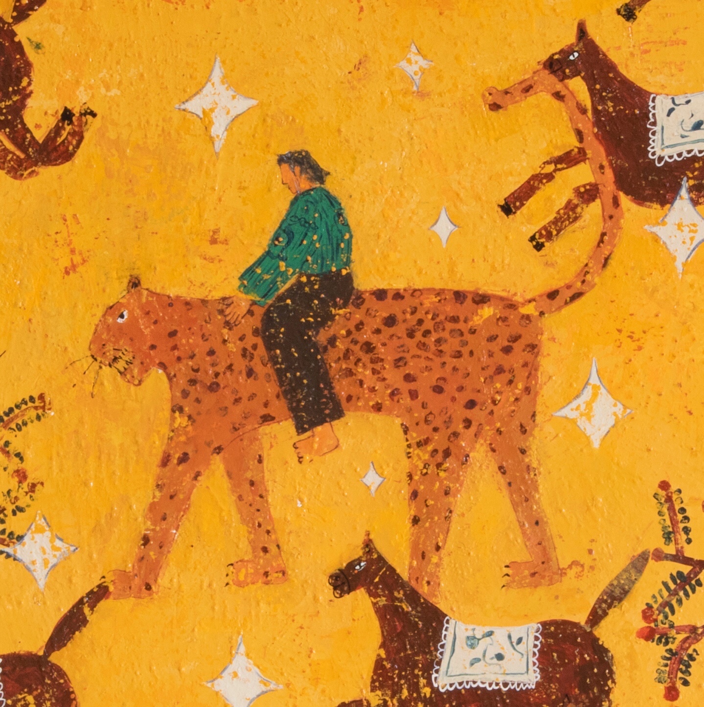 我喜欢自然、原始的绘画语言,尝试用不同的材料去塑造壁画的质感,人间乐园整个系列的灵感都在不断剖析、表达自我、把不断向内探索的状态用这个系列呈现出来。