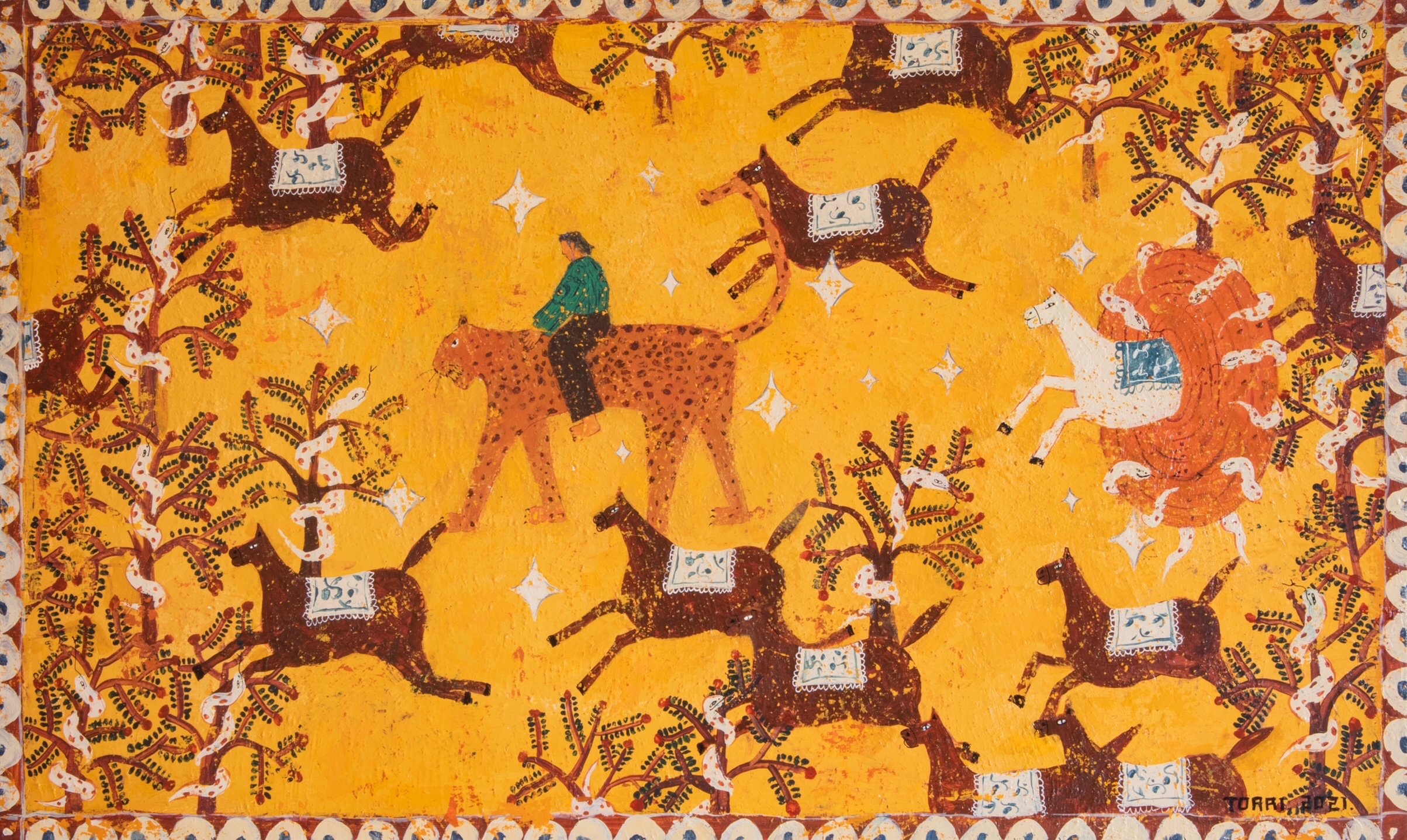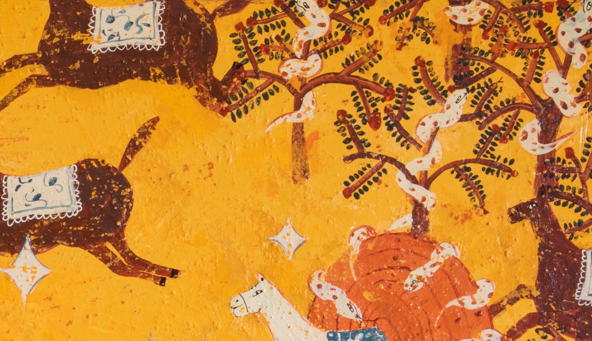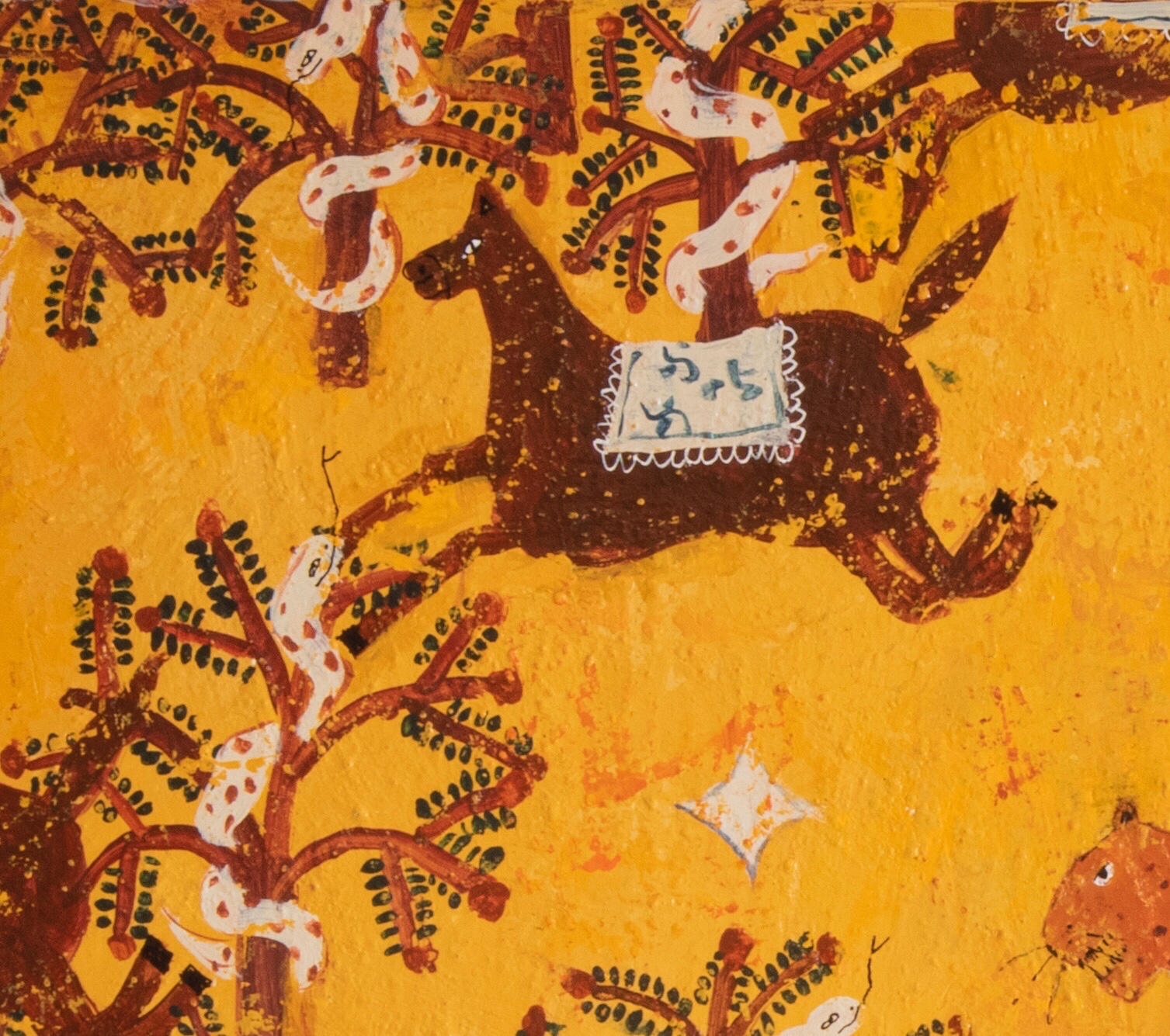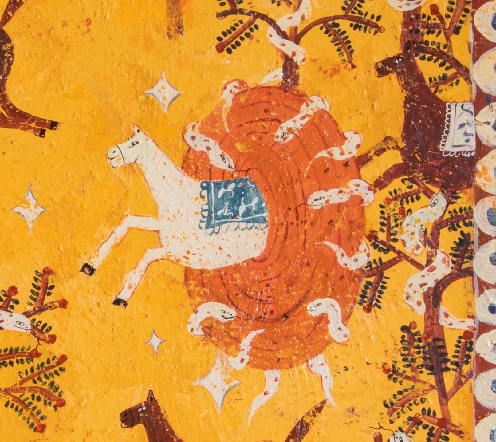 我喜欢自然、原始的绘画语言,尝试用不同的材料去塑造壁画的质感,人间乐园整个系列的灵感都在不断剖析、表达自我、把不断向内探索的状态用这个系列呈现出来。