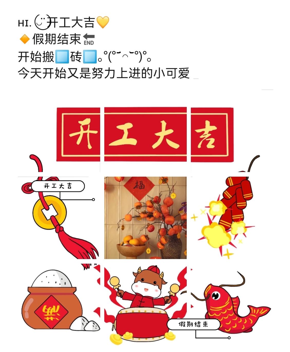 开工大吉|年后上班第一天发朋友圈的文案和九宫格