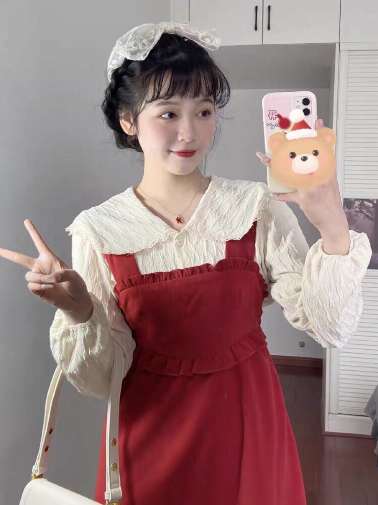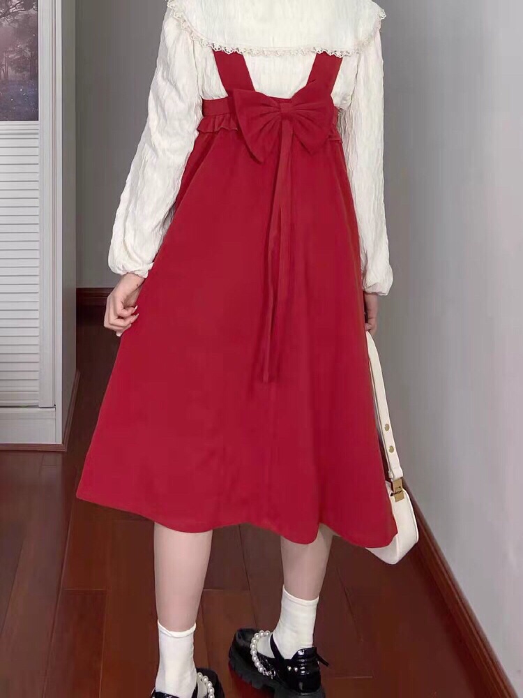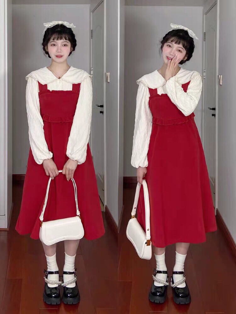 好看!!红裙子👗搭配红色玛丽珍鞋,一套炒鸡好看✌