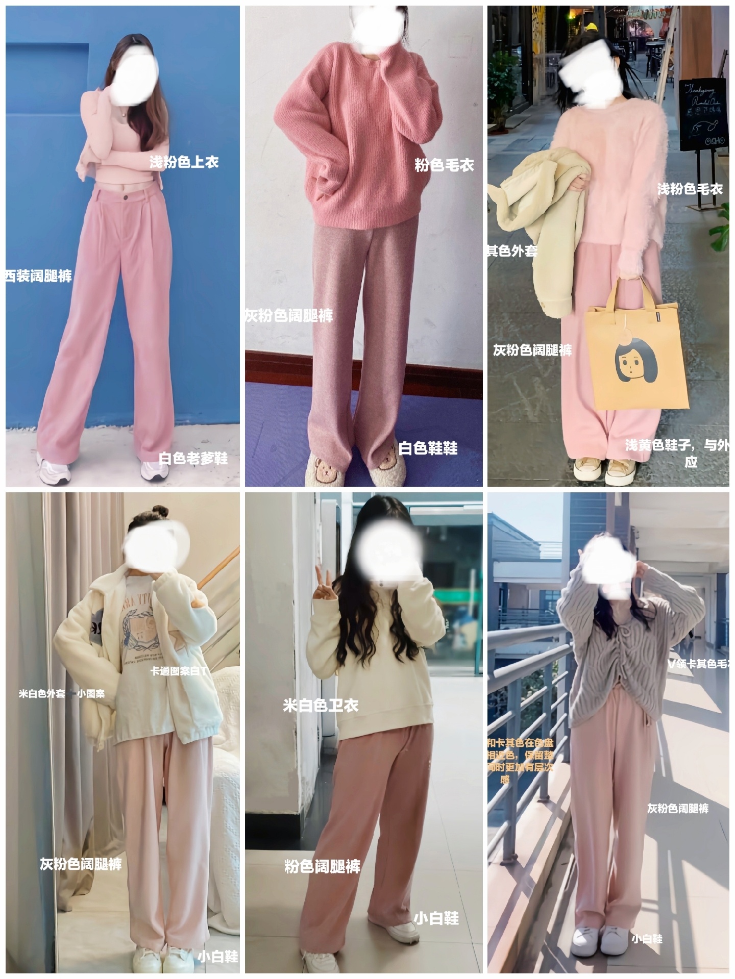 ✨粉色系阔腿裤穿搭,温温柔柔又不失小酷