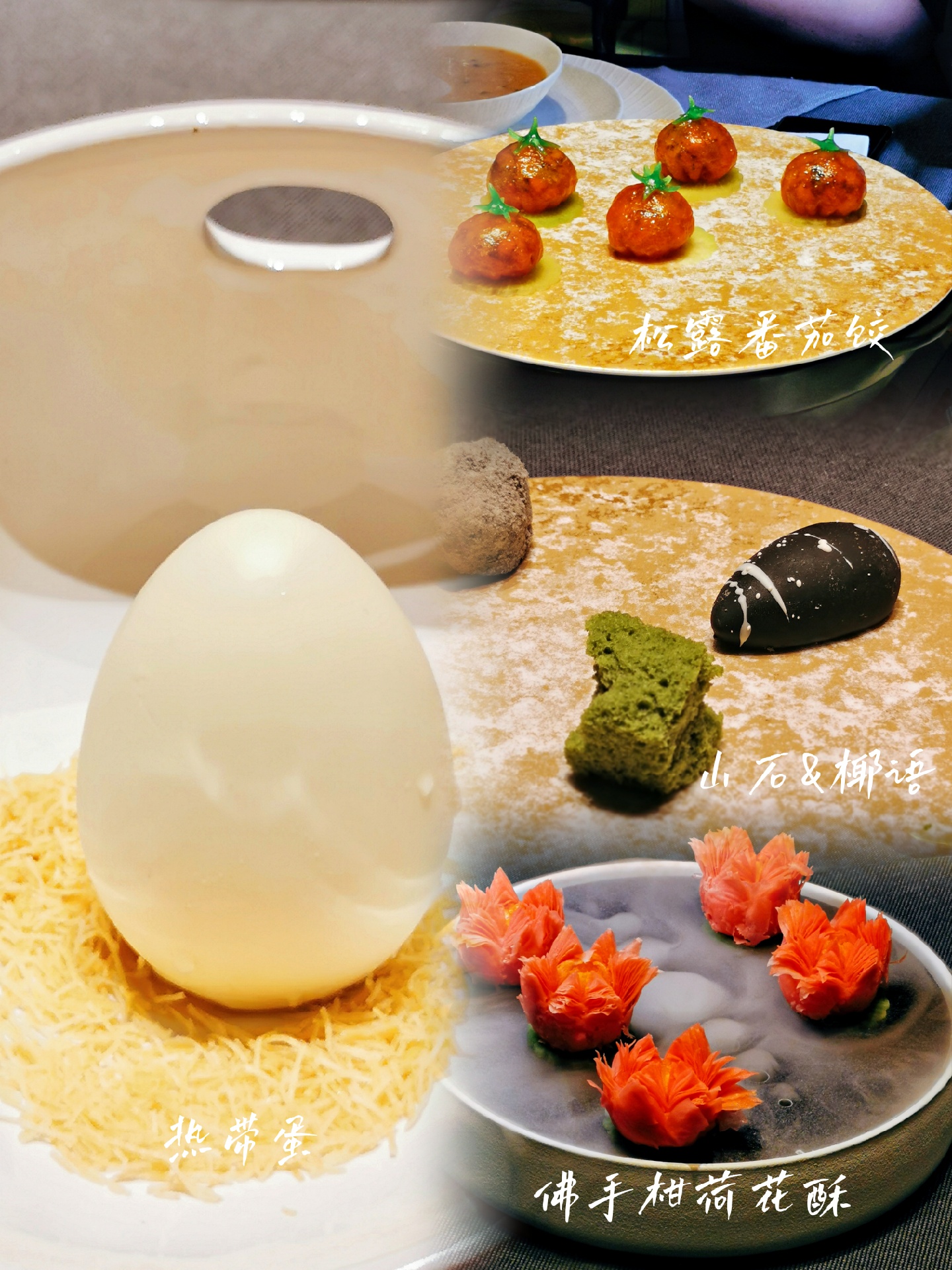 🌈🌈🌈|热带蛋^这道甜品也可以堪称一绝,外观很像一个普通的水煮蛋,实际上是用巧克力做的外壳,蛋黄则是用百香果做的,酸酸甜甜恰到好处,对于喜欢吃甜食的我来说,真是太喜欢了。