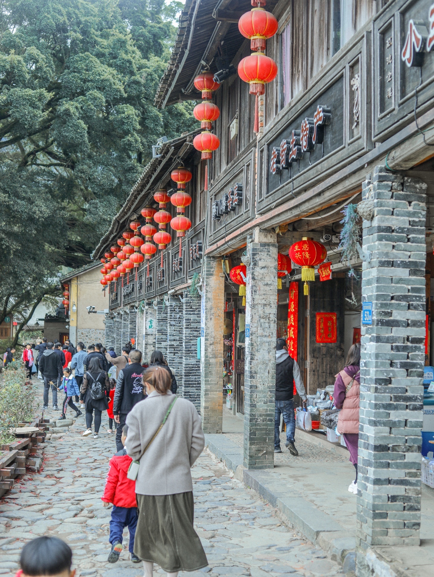 古镇里百年老街、千年古榕、神奇土楼、浪漫水车,无不让人感到独一无二的南靖风土!特别是古道旁两层老式砖木结构房屋,数百年的老商铺,保留着木板代墙十分有特色,非常好拍!