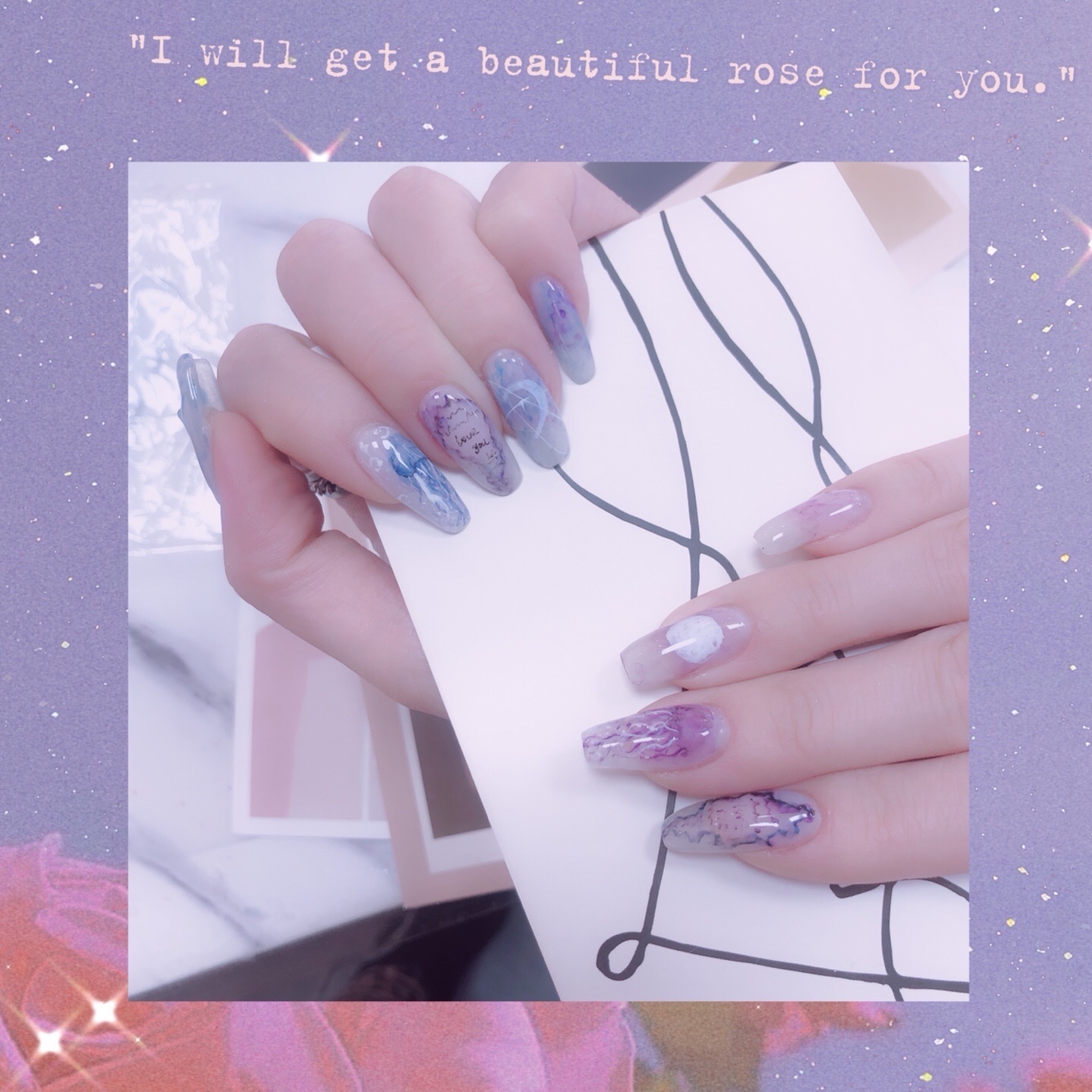 ❤️今日美甲推荐💅温柔的鸳鸯甲紫色➕蓝色水母水里的小精灵�-美图社区-美图秀秀