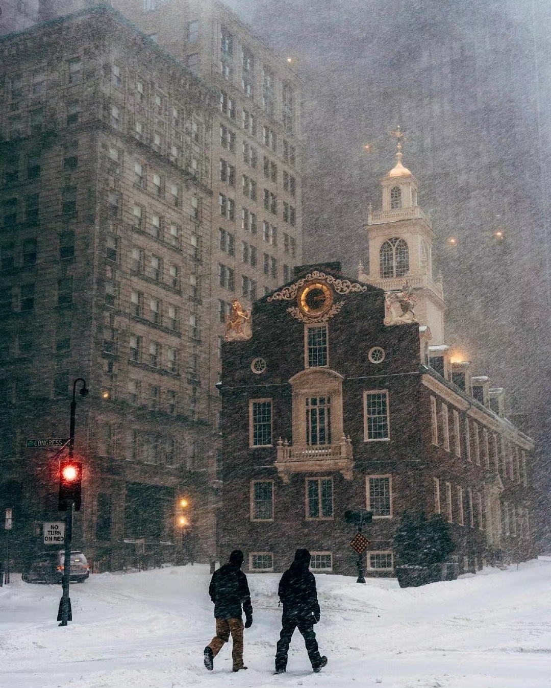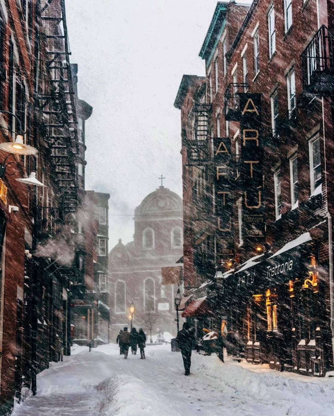 风雪中的波士顿街头
