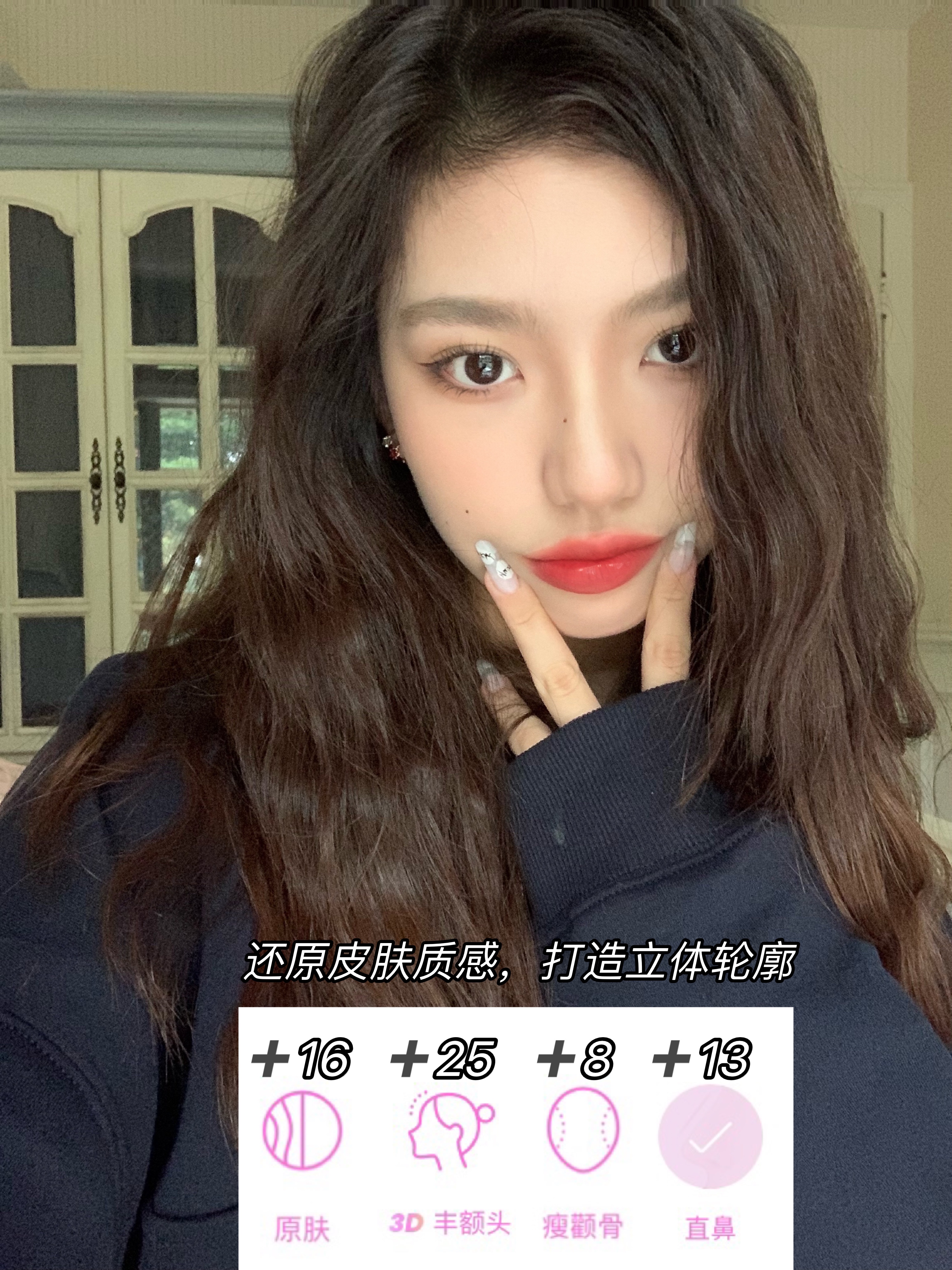 原肤+ 16,3D丰额头+25,瘦颧骨+8,直鼻+13