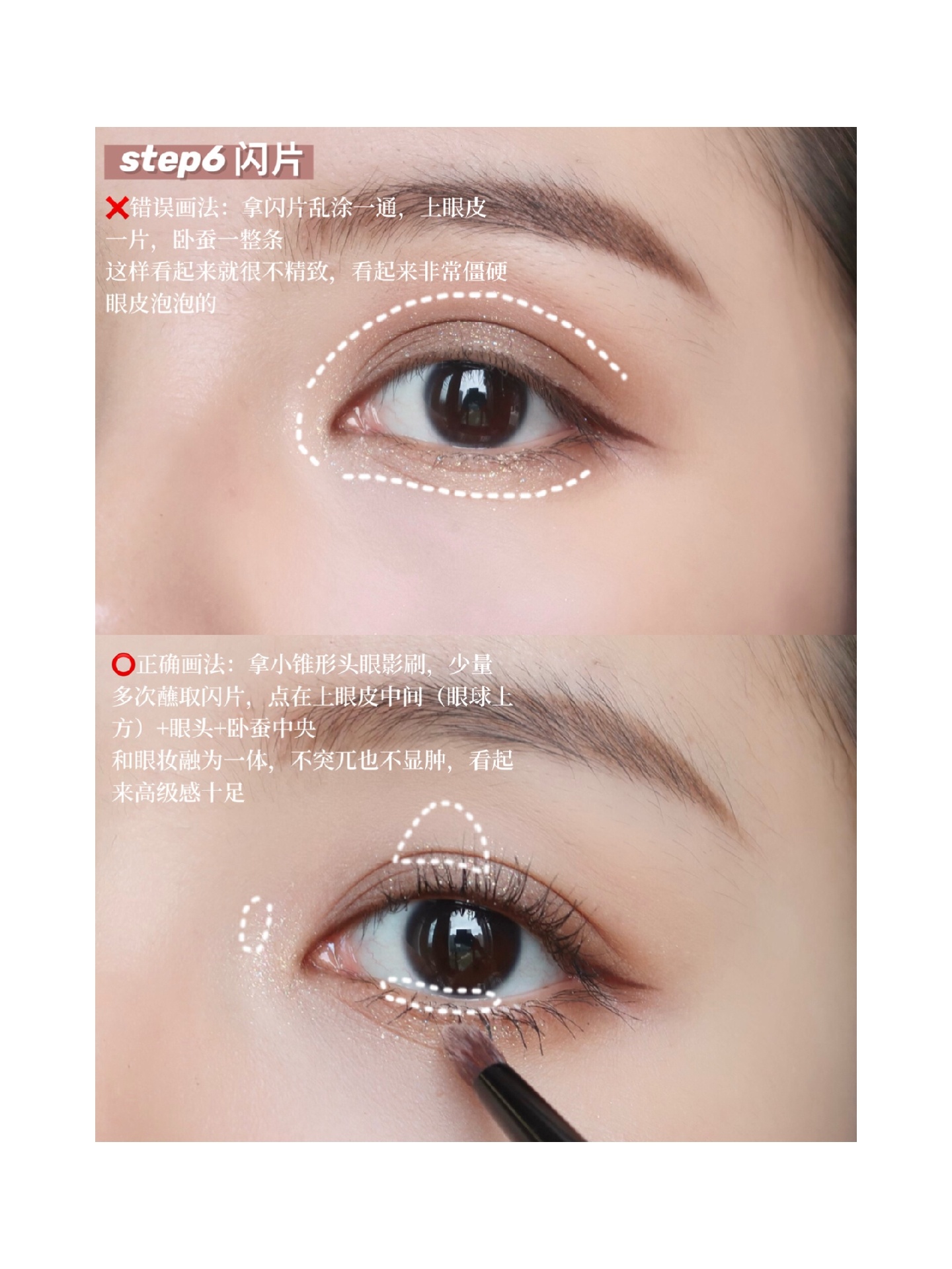 只需要在眼皮中央,卧蚕中央、眼头轻轻点缀即可,不然很廉价!