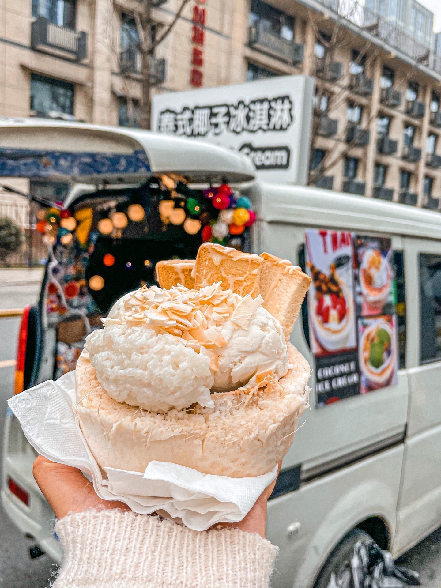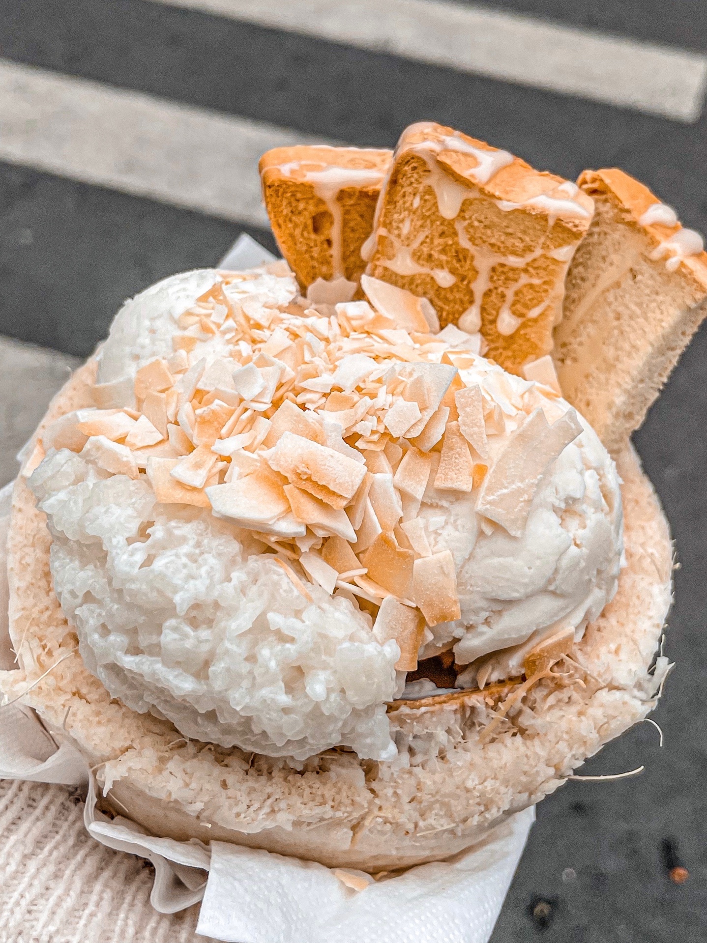 😋糯叽叽的糯米➕超厚新鲜椰子肉➕椰子冰淇淋➕脆饼干片