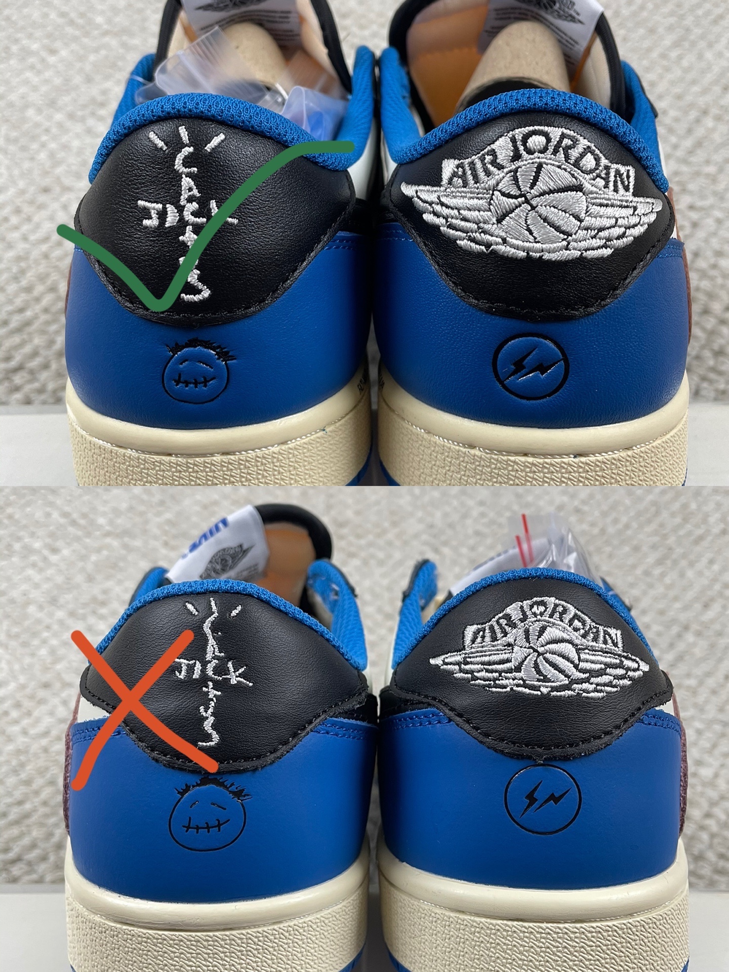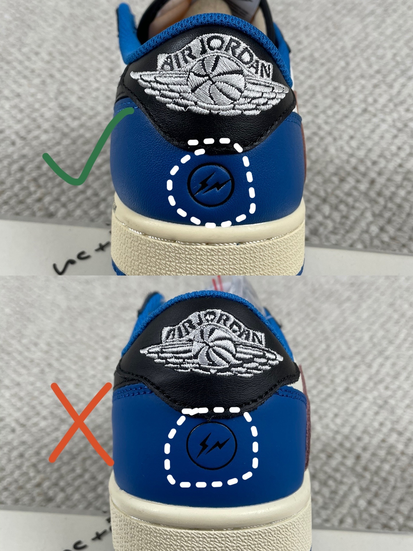 这期给大家展示一款今天很流行鞋款“Aj1藤原浩闪电低帮倒钩”真假细节“对比🆚”,相信🔎大家看完后一定不会再被市面上低货所骗