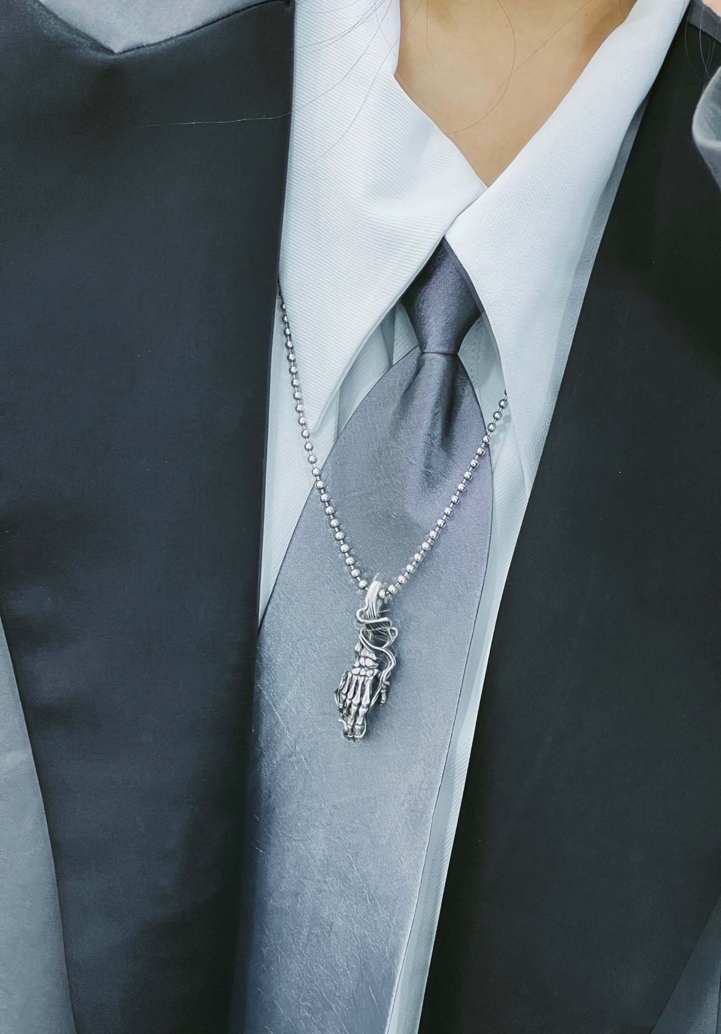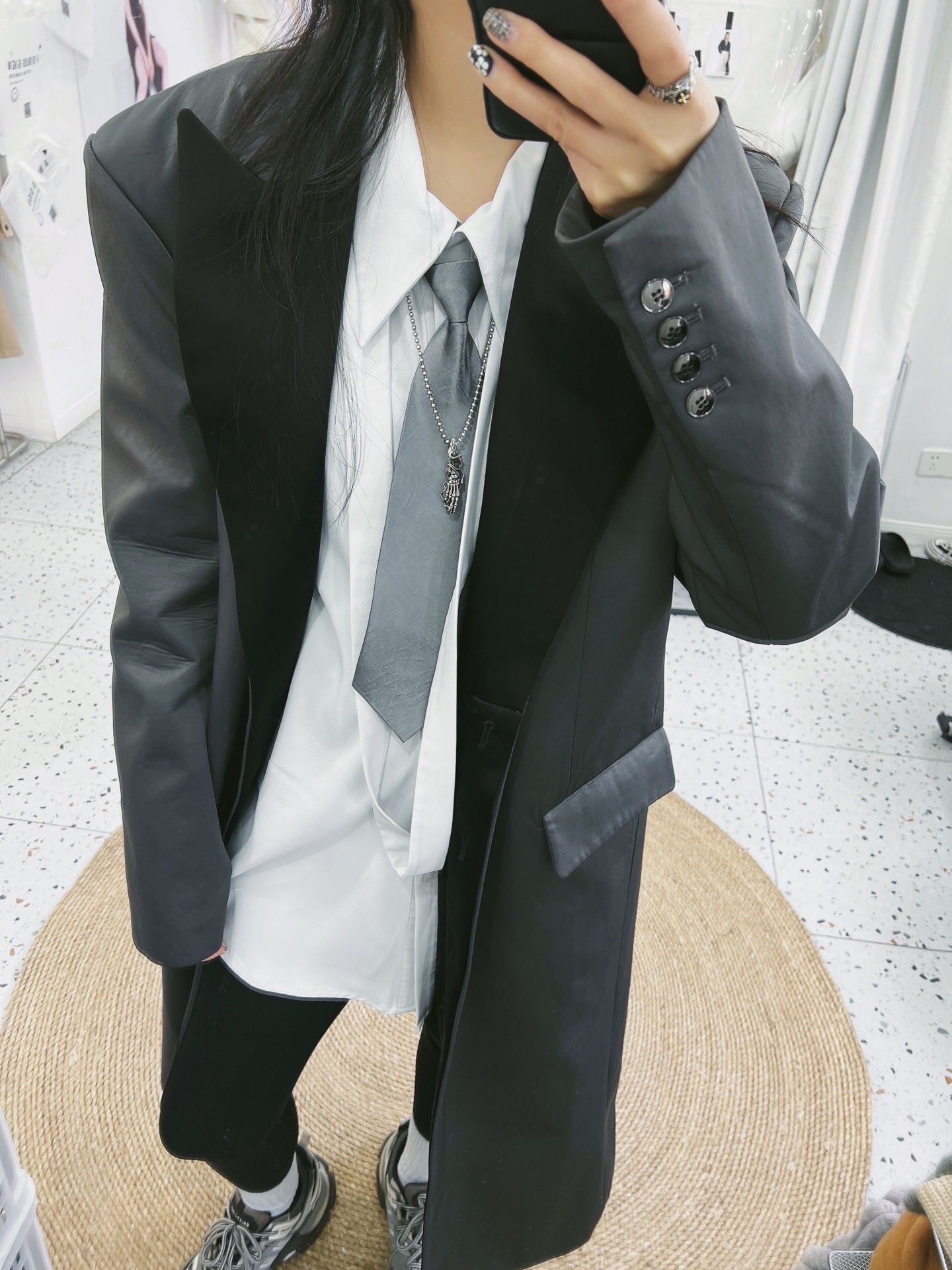 上身:宽肩大衣🧥➕飘带衬衫➕领带👔