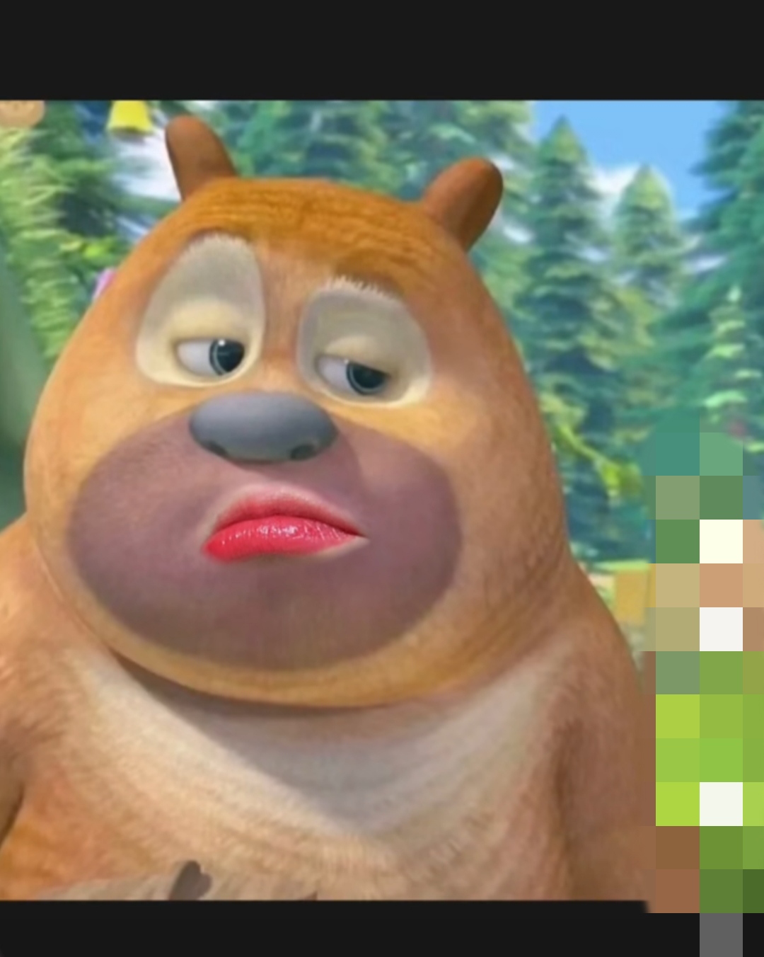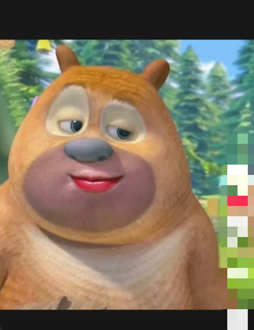 某网友对熊二用了绿幕五官这个特效,让熊二有了个红嘴唇,这表情太都逗人了,太可爱了。