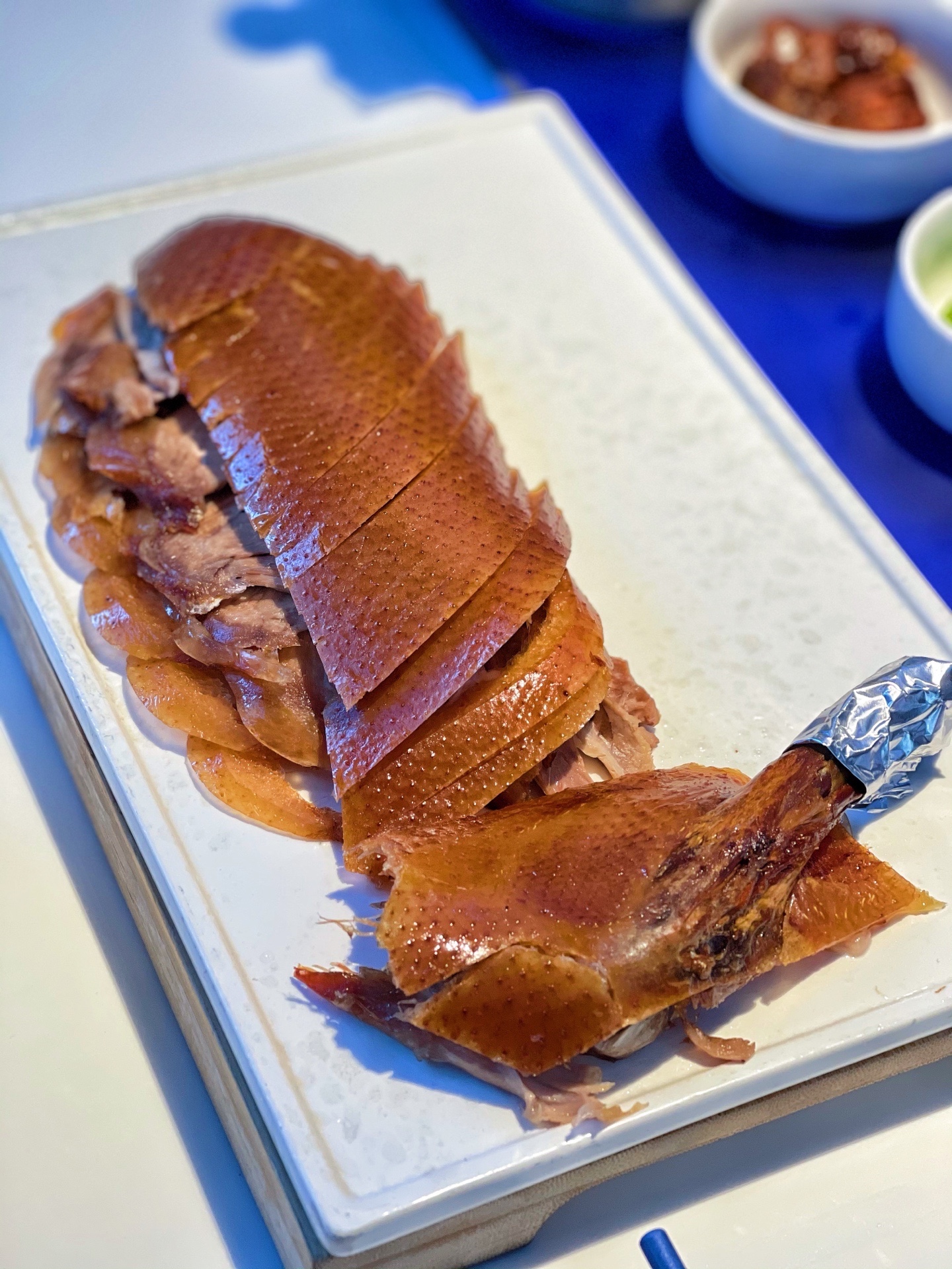 首先说下他们家烤鸭与别家的区别,他们家的烤鸭皮是真的很酥很酥,口感确实很好。而且价格比其他家贵一点,但没有大董那么贵,所以朋友推荐我来说是因为小大董的性价比更高一些。鸭饼会比普通饭店的鸭饼稍厚一些,个人还是更喜欢薄的鸭饼。