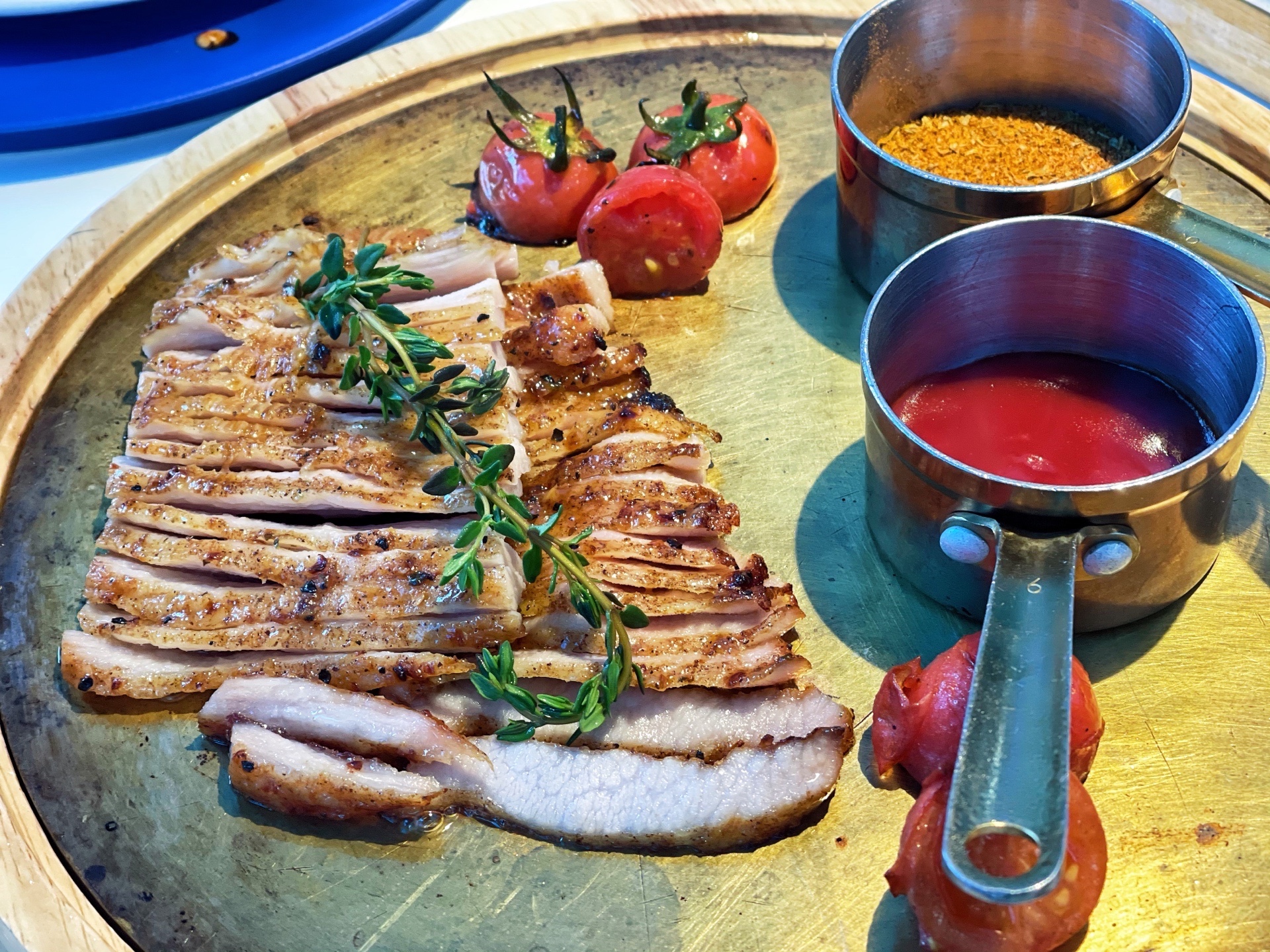 每一片肉都很薄,也确实能尝出来碳烤的香味,肉片会粘在盘子上,不是很容易取下,肉量还是比较小的。
