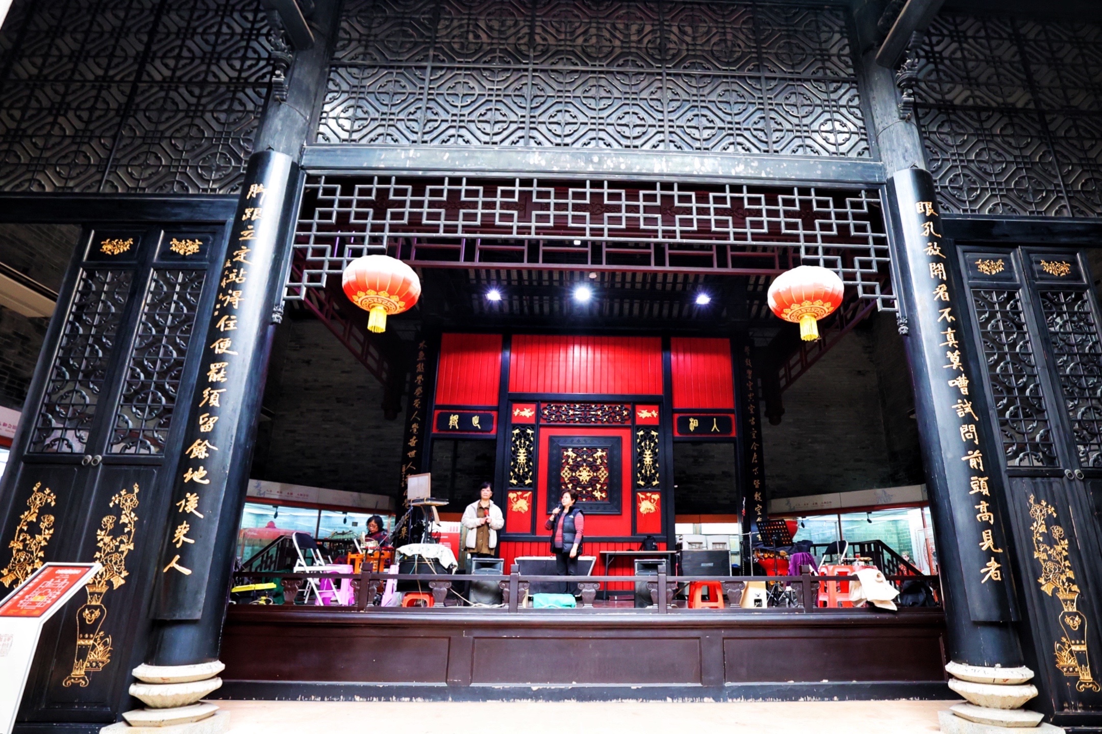 🎵广东粤剧博物馆设于广东省文物保护单位兆祥黄公祠内,占地面积约三千平方米。内有【瓊花会馆】粵剧戏班供奉华光大帝为祖师。按旧例,凡新戏台落成或戏班到某地演出:为趋吉避凶,开锣前必在戏台上拜祭华光祖师。还有供表演的舞台,有两位粤剧的发烧友在现场表演,很好听呢……