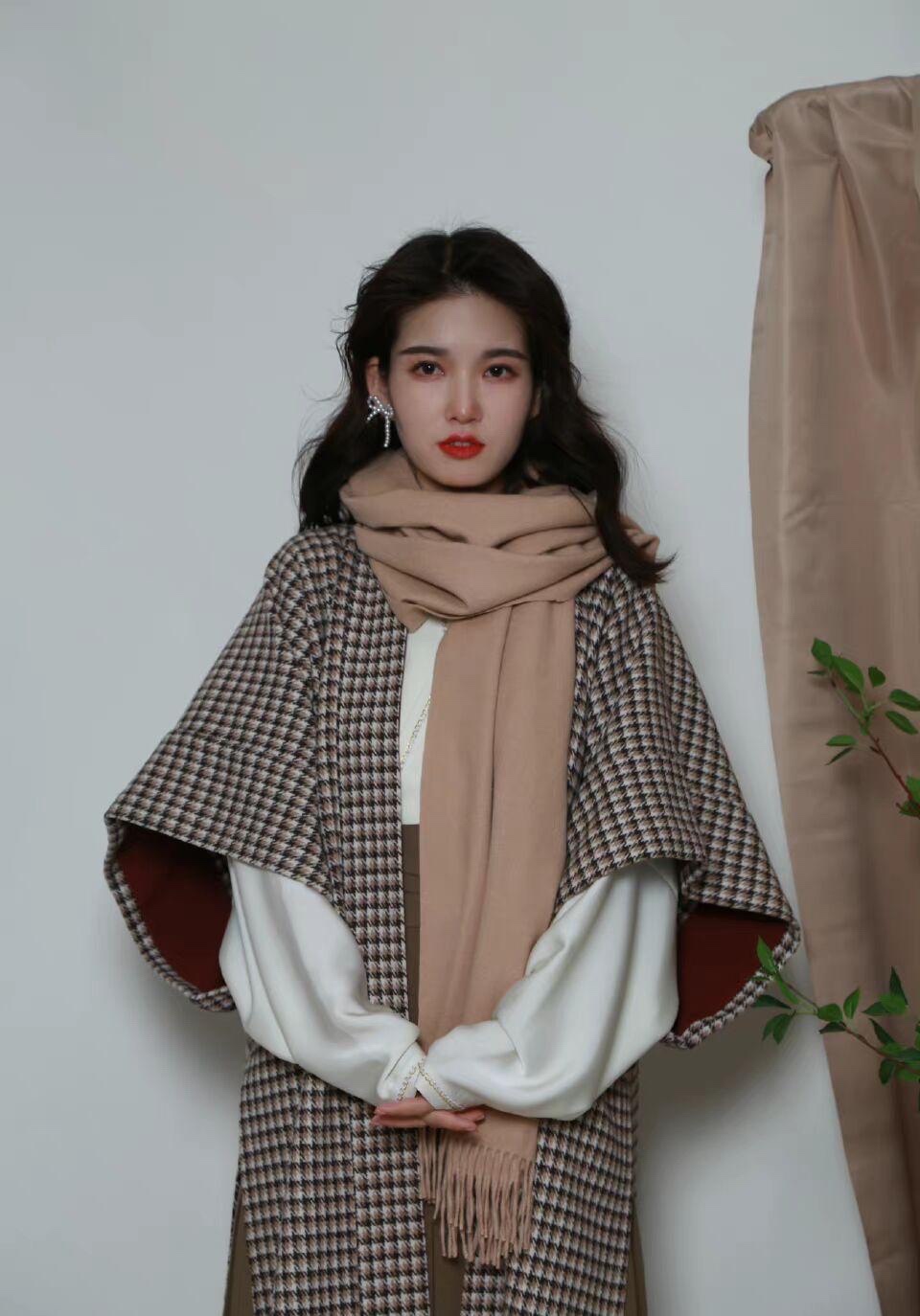 首先从颜色的选择方面来看,虽然三裥裙款式更接近现代服装,但是剪裁方面仍旧有传统汉服的特色,所以,为了能够让搭配看上去更有古典美,最好是选择复古的色调,除了常见的大地色之外,还可以尝试冷色调,比如说常见的青色系,蓝色系和绿色系等等。