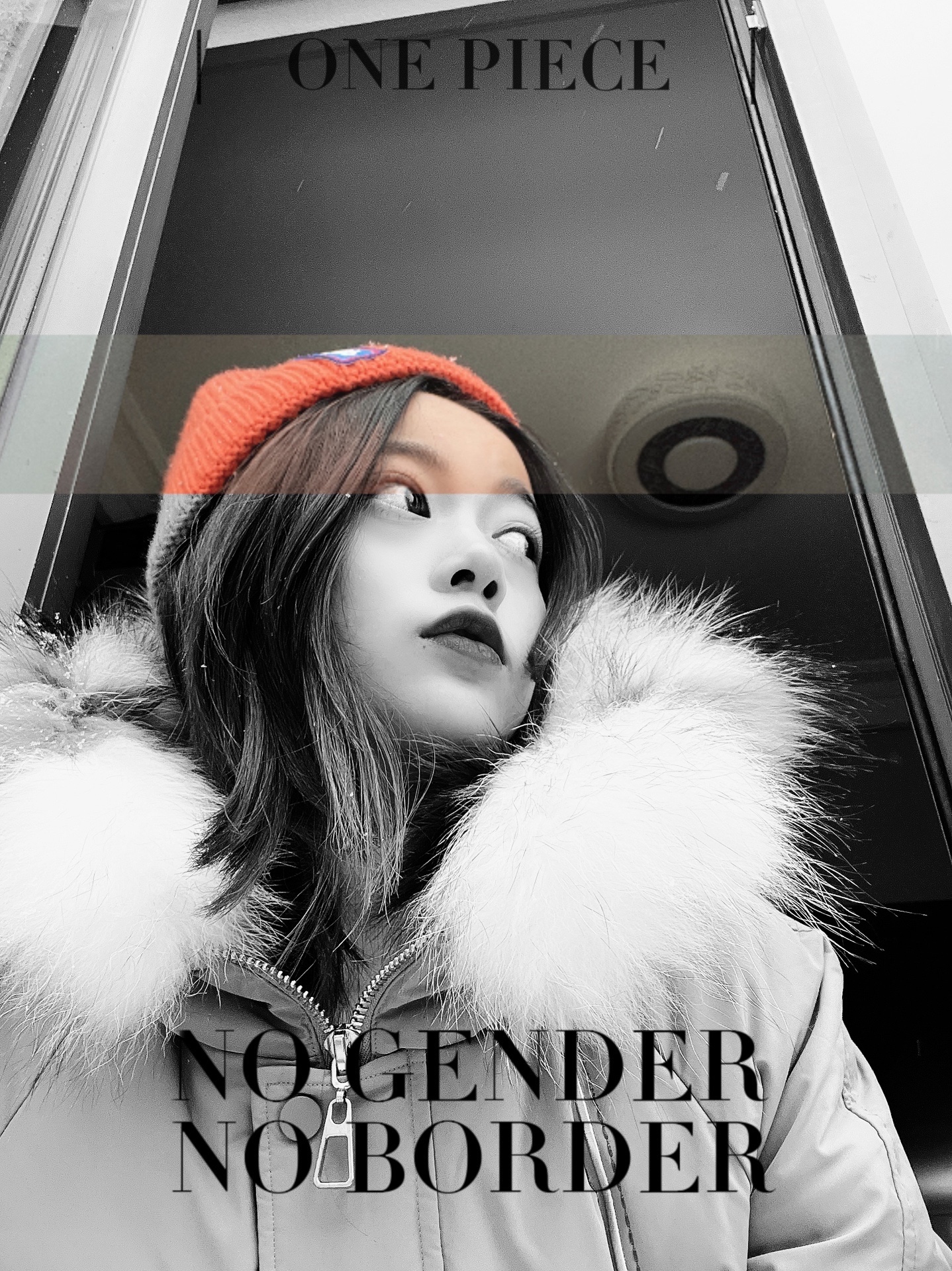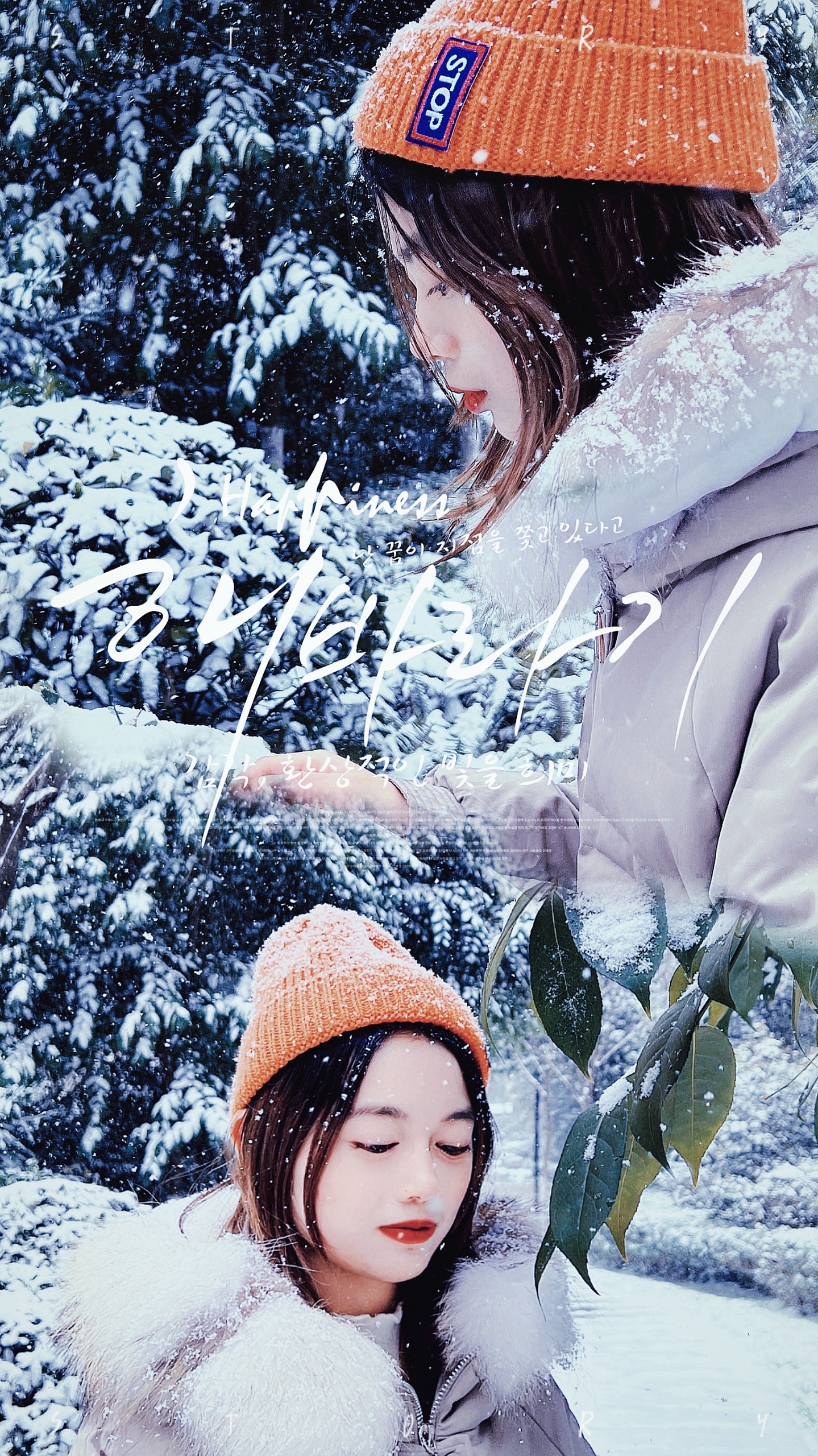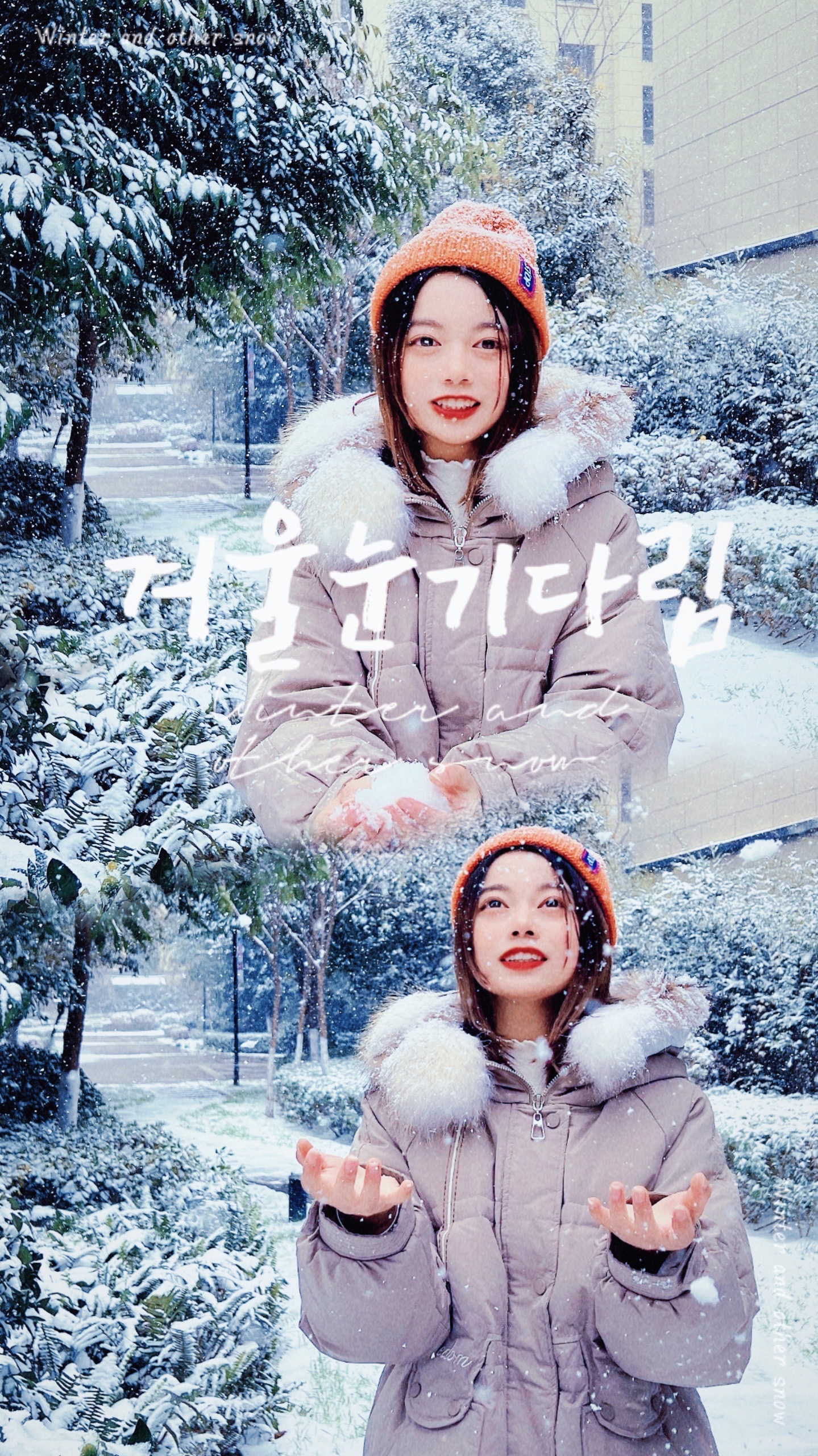 1.将前面拍的雪地照用模版拼接,在加上文字,韩剧女主角的感觉妥妥的来啦☁️
