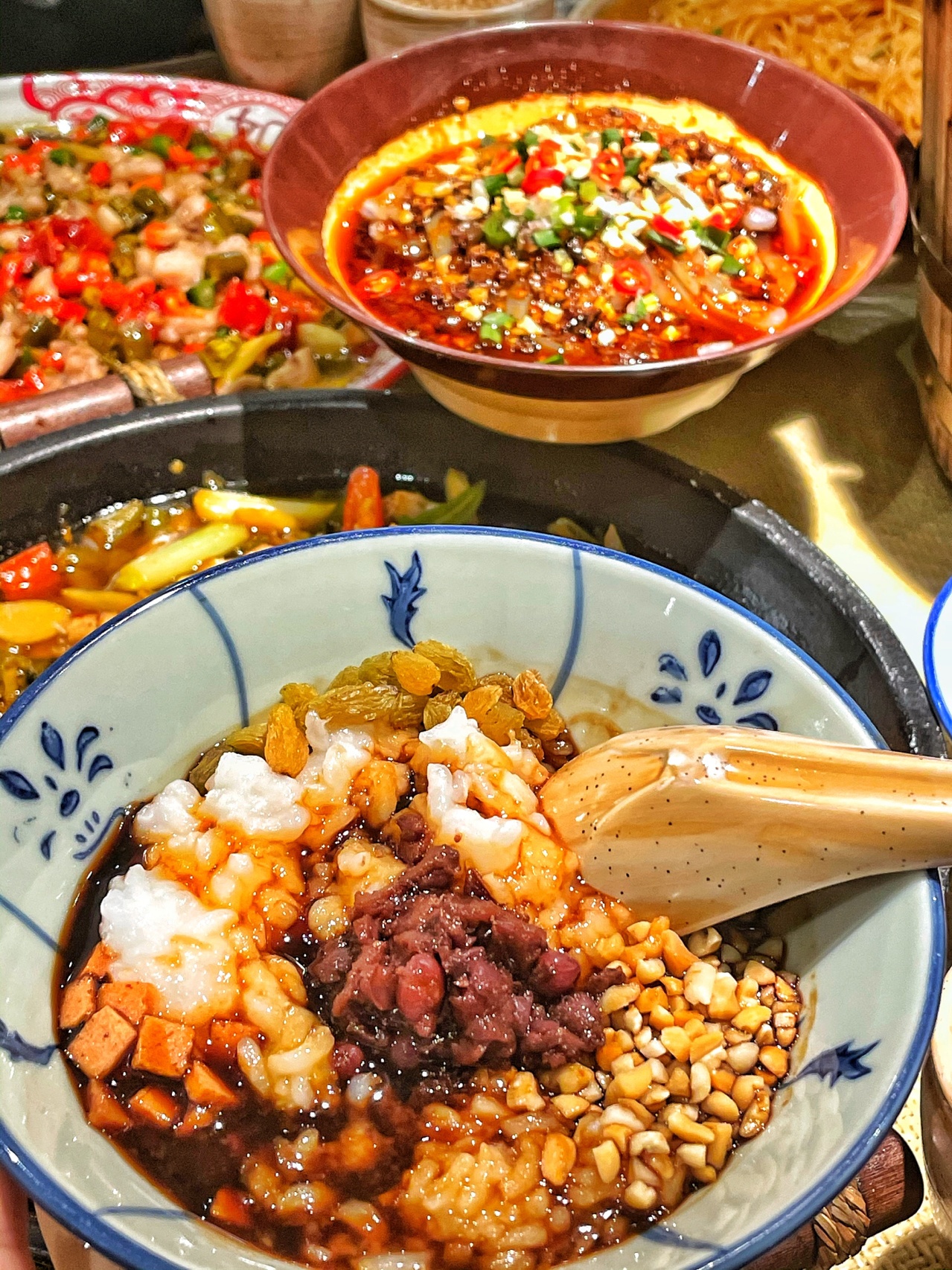 被惊艳到了,第一次吃饭正宗冰稀饭,以前吃的都是有冰沙的,满满小料裹着红糖水,很解辣